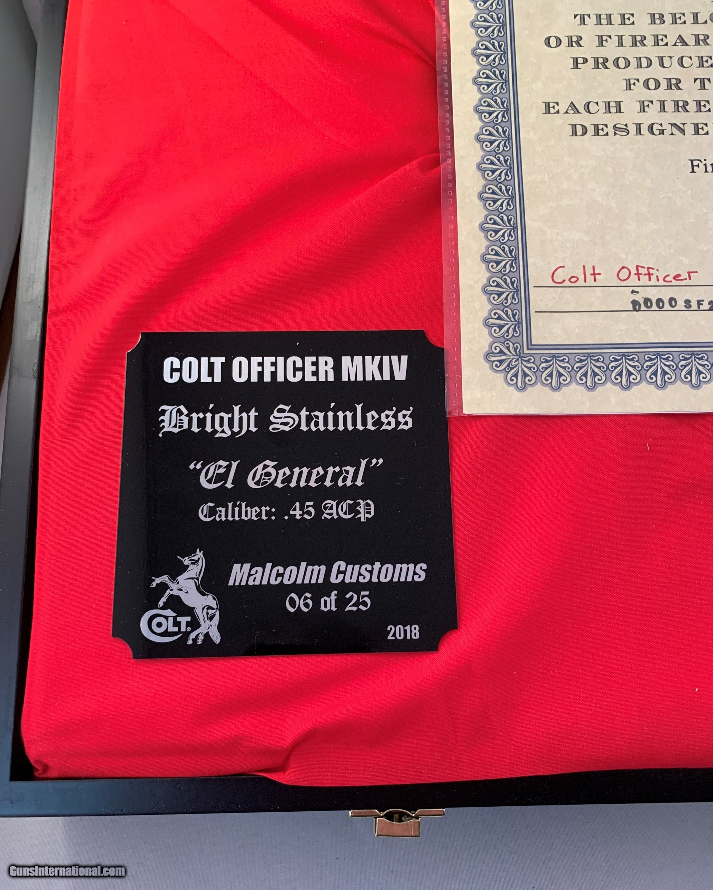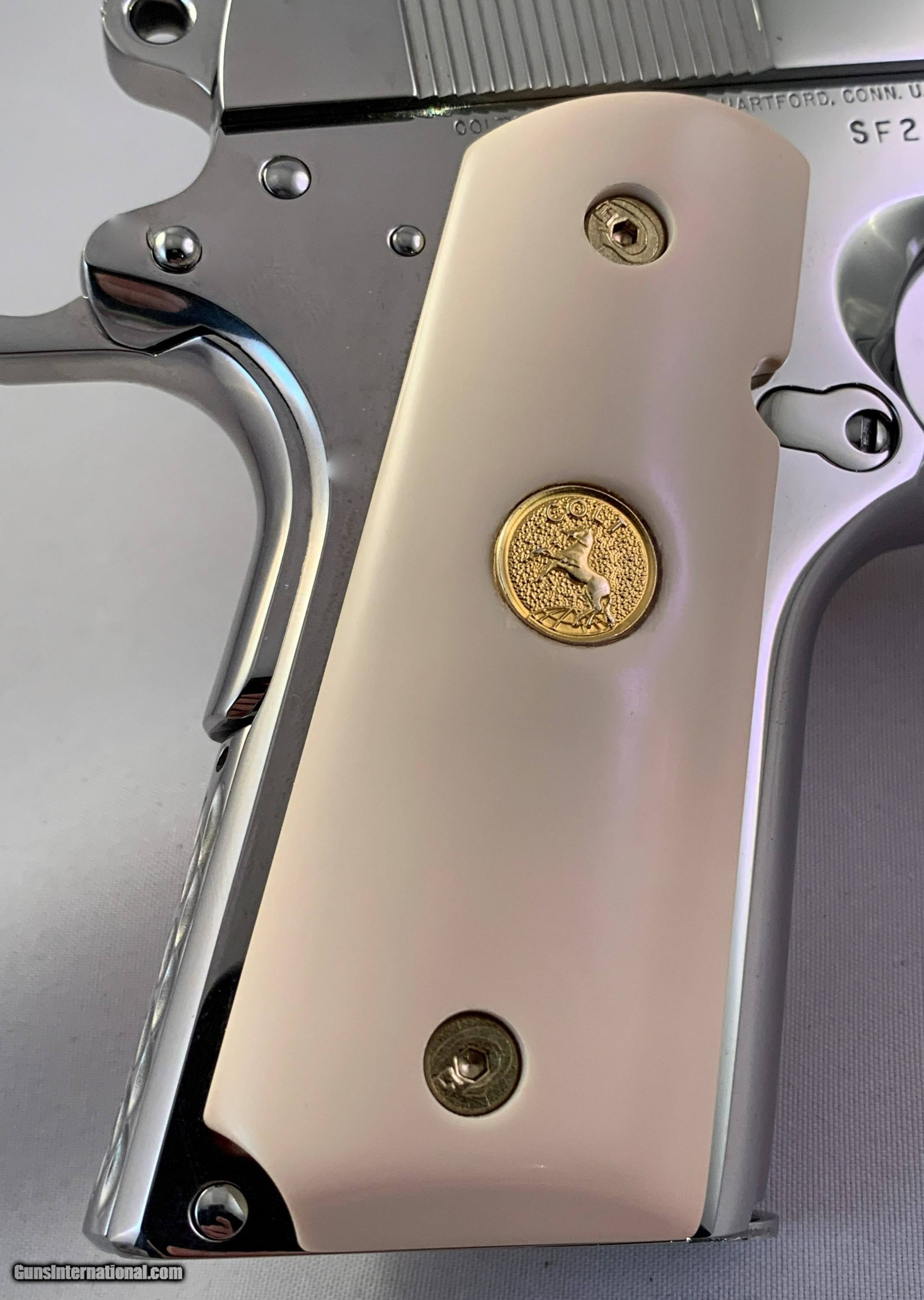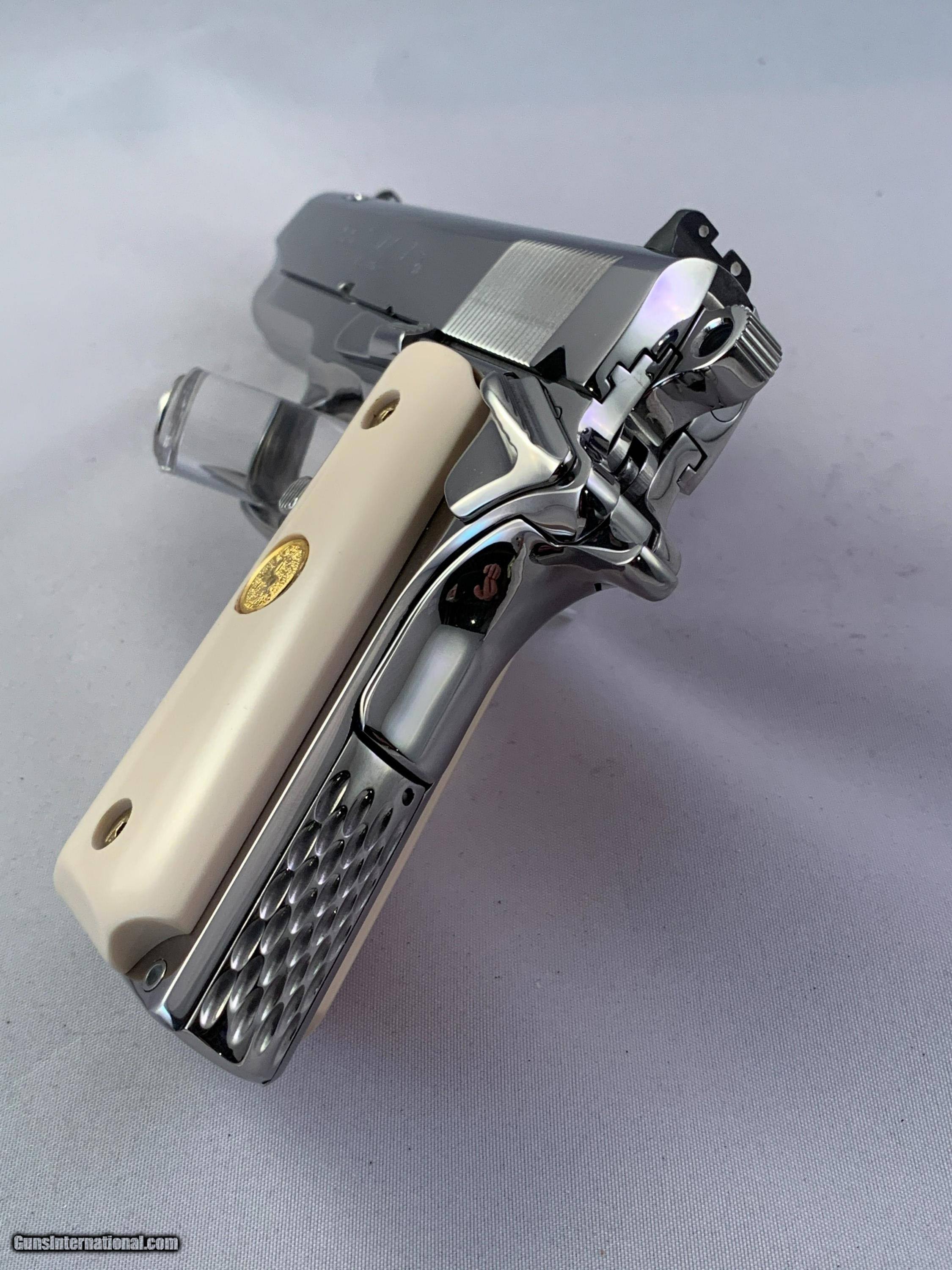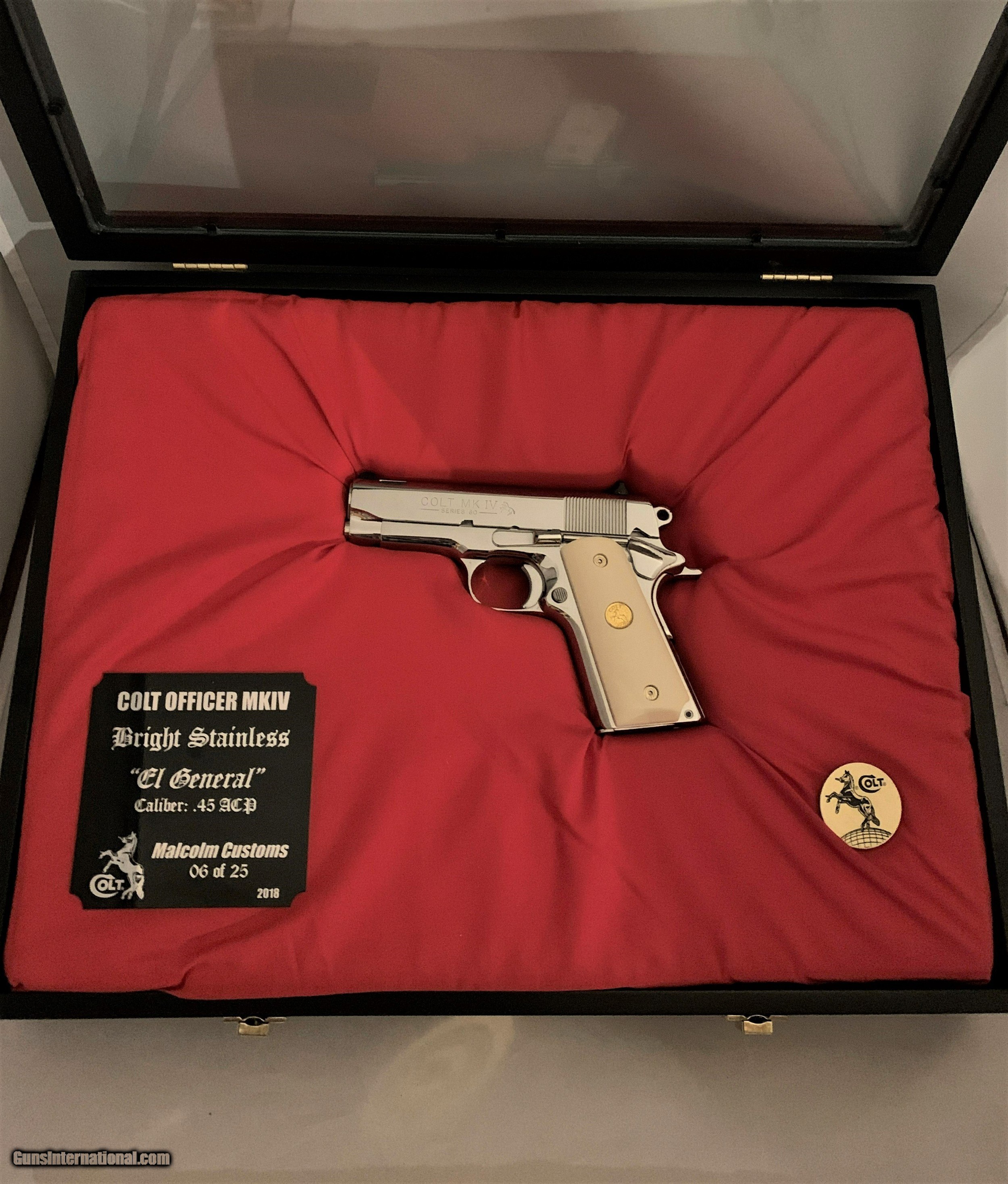 Colt MKIV Series 80 Officers Model CUSTOM Bright Polished Stainless with box, docs, presentation case