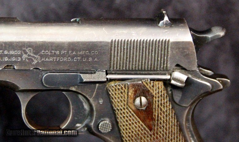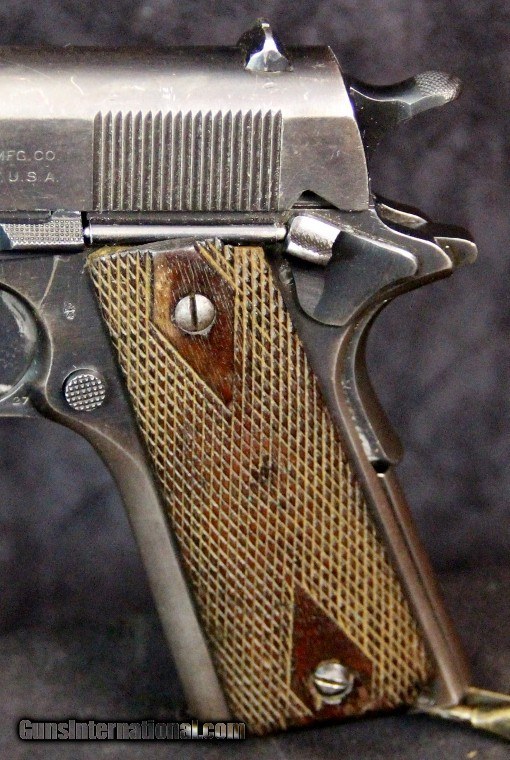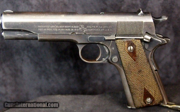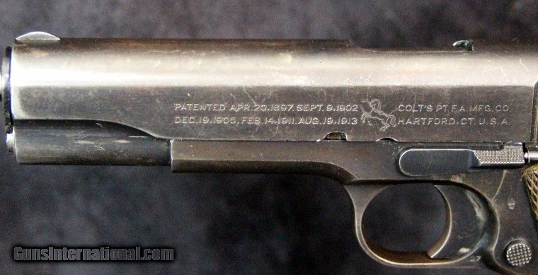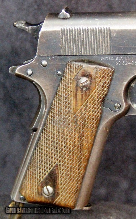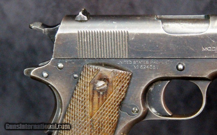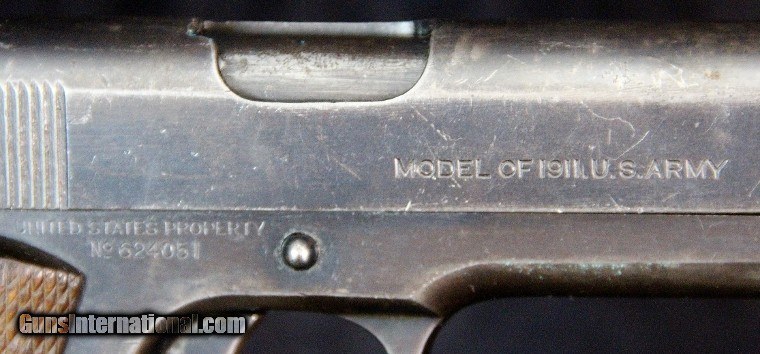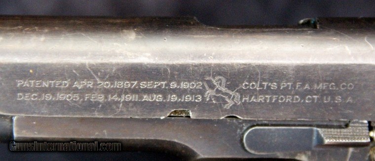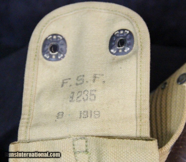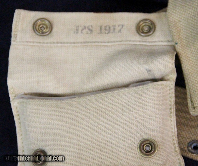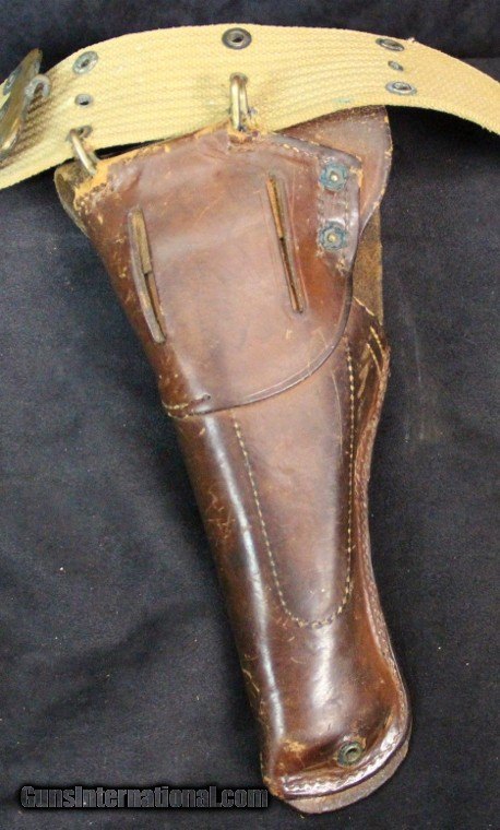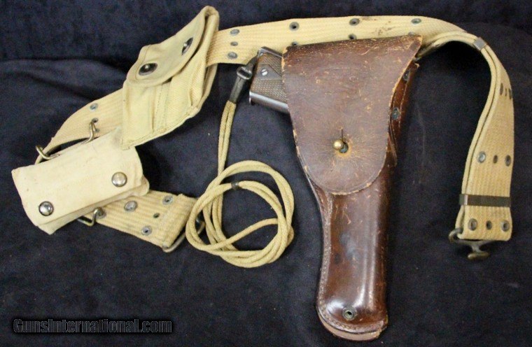Description: .45acp, #624015, 5 inch barrel, blue finish, 2 piece walnut diamond grips, original sights, 2 tone magazine, 1919, 1918 Hoyt holster, 1917 first aid pack, 1818 magazine pouch, belt and lanyard unmarked. Condition: excellent bore, 70% slide blue, 40% frame blue, excellent grips, excellent mechanically, excellent marks, all accessories in very good to excellent condition. Curio/Relic: Yes Price: $3,200.00 Contact Seller |