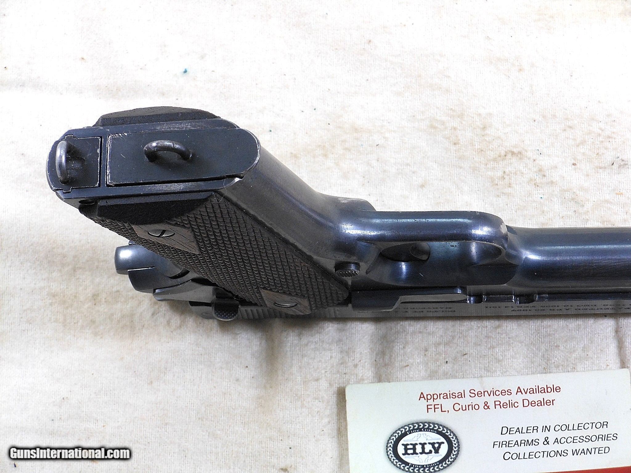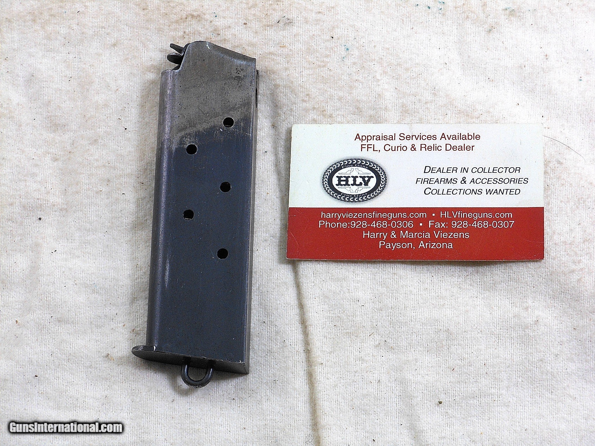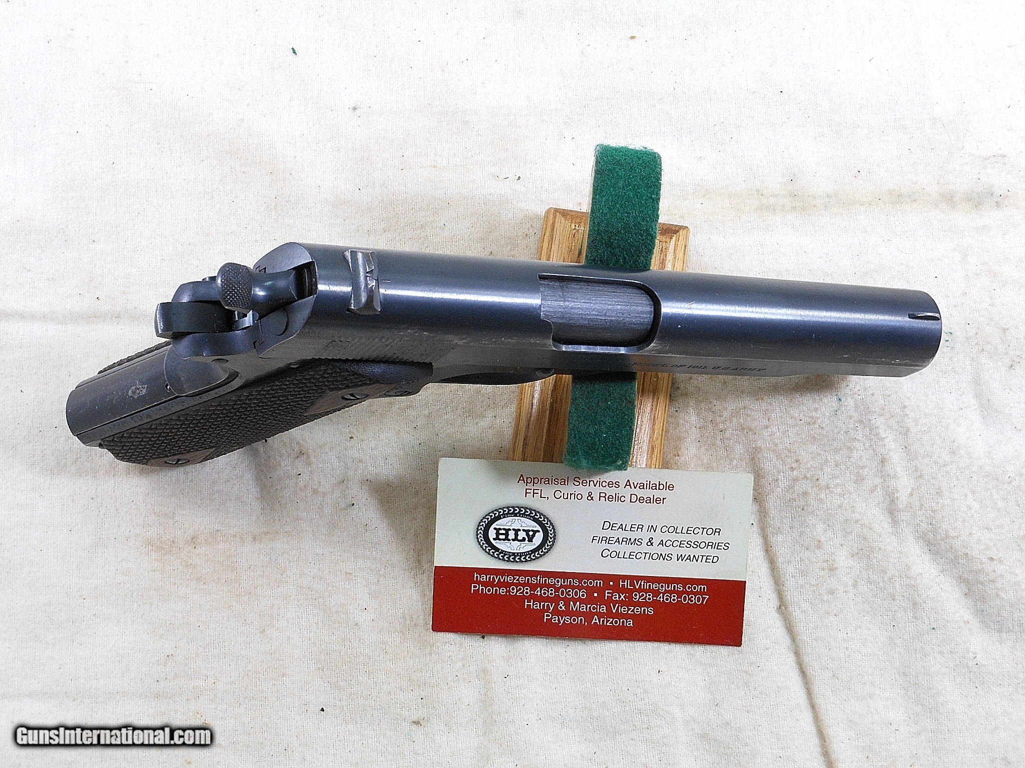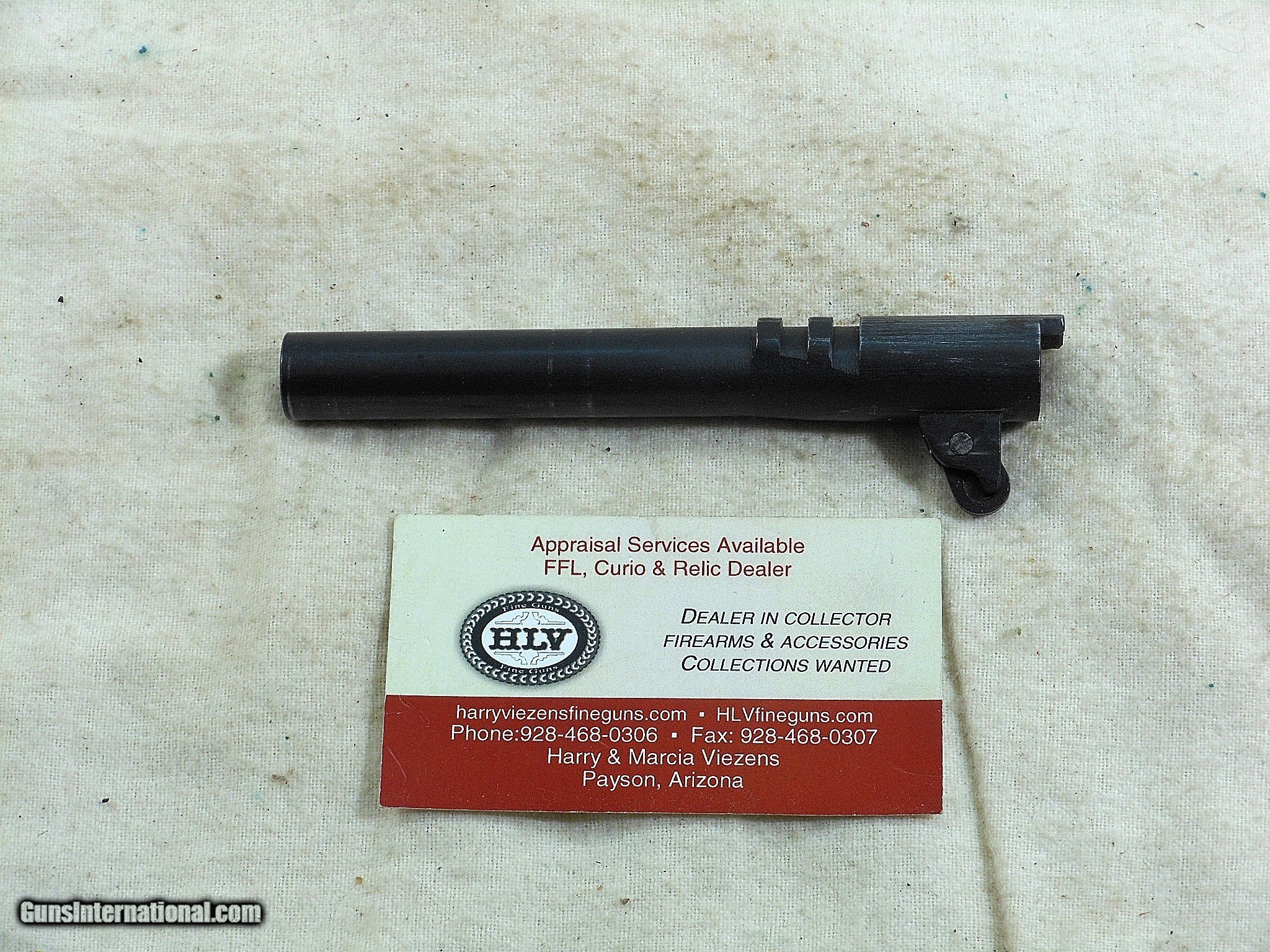 Description: SOLD This Colt was produced in the last run of 1912. The pistol's serial number is 15300. This first year production Colt has the correct barrel with the [ H ] stamped on the barrel upper lip. This 45 A.C.P. barrel is in very good bright condition with sharp lands. There is some sign of light pitting in spots due to the corrosive ammunition used during that time period. This Colt is all correct for the serial number range and time frame. It has the correct early style front and rear sights. The slide has the Colt in a circle above the safety. The original grips are in wonderful condition with only a few areas of checkering point flattening. The original key hole magazine is in very fine condition. The action works correctly with strong springs. The original bluing would rate a 91% or better condition. Most of the loss is on the high points from holster wear. The Original Rock Island Model 1912 Holster is in very fine serviceable condition. This holster is also dated 1912. The leg strap is missing which is common for these holsters. The leather is supple and the original finish is fully intact. This pistol rig is quite stunning and rare. It is not often that a first year Military Colt 1911 comes on the market in this fine of condition with it's matching dated holster! Here is such a pistol rig for the discerning collector! Curio&Relic OSEE - KEE (4) F. No. 667 -23 SOLD Curio/Relic: Yes Handgun Caliber: .45 ACP (.45 Auto) Manufacturer: Colt Model: 1911 Serial Number: 15300 Barrel Length: 5 Inch Chambers: Very Good Condition: 91% Metal Condition: Very Good Wood Condition: Very Fine Bore Condition: Very Good Barrels: Original Colt Barrel Barrel Type: Military Action: Self Loading Finish: Blued Sights: Standard Manufacture Date: 1912 Extras: Holster |