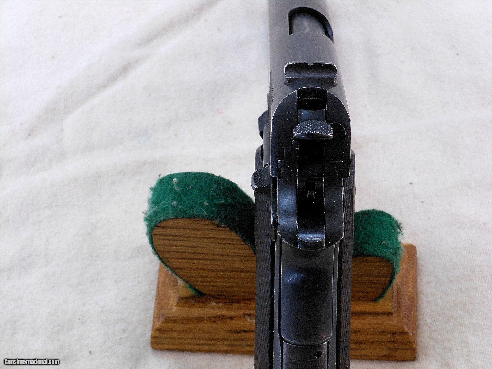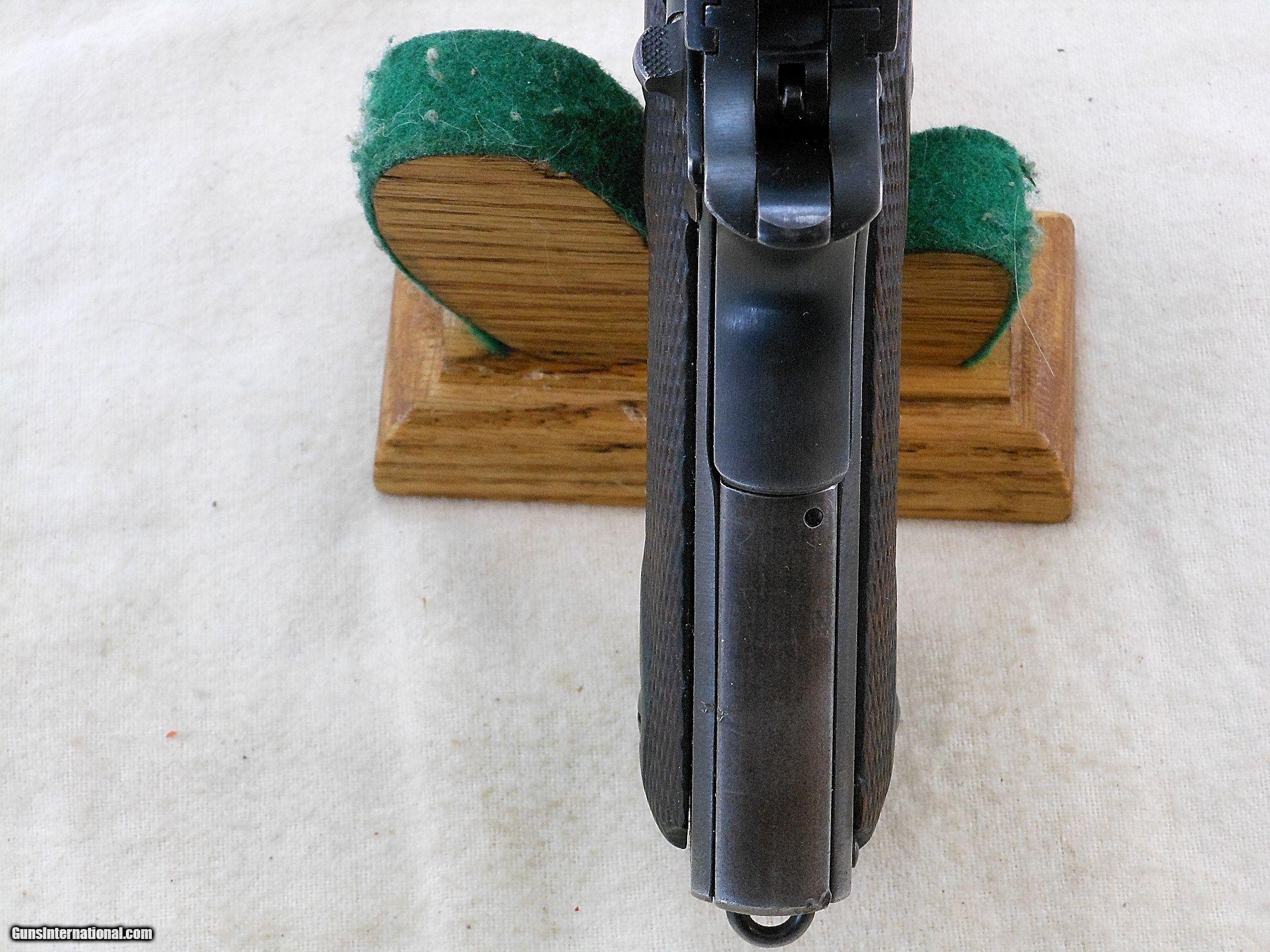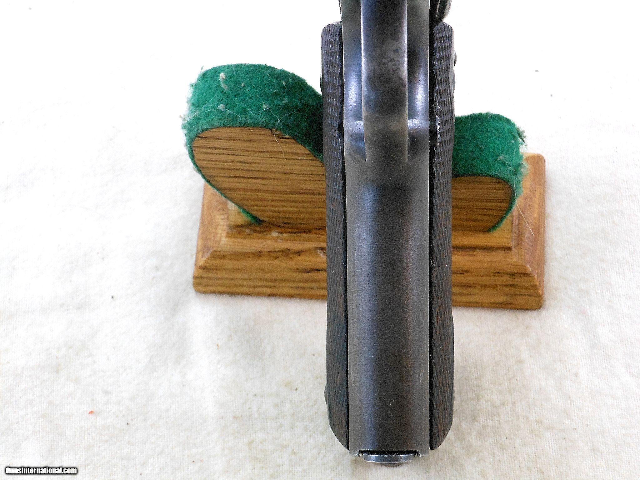 Description: For Best Results Always Call First! This Colt was produced in 1917. The Pistol's serial number is 157323. This pistol is all original as issued condition. The war time bluing is the correct weak blue finish. The barrel is in very fine condition with a sharp bore. There has not been any alterations done to this Colt. The original grips show service wear. There is no cracks or chips missing on these grips. The slide would rate a 88% original finish. The frame would rate a 80% original finish. Most of the wear on the frame is in the grip area. The magazine is a correct two tone magazine. This pistol has all the correct military markings and inspection stamps.. This Colt shows some holster wear around the muzzle area. This pistol shows very little sign of being fired. The World War One magazine pouch is dated October 1918. The magazines are original two tone magazines of World War One vintage. This is a very nice condition World War One Colt that would appeal to the military and Colt collector. Search for hlvfineguns on google. Curio&Relic (4) BREE F. No. 316 -17 SOLD Curio/Relic: Yes Manufacturer: Colt Model: 1911 Serial Number: 157323 Caliber Info: 45 A.C.P. Condition: 88% Overall Bore Condition: Fine Barrels: 5 Inch Action: Self Loading Finish: War Finish Manufacture Date: 1917 Extras: Pouch & Magazines Item Location: CR 696 |
