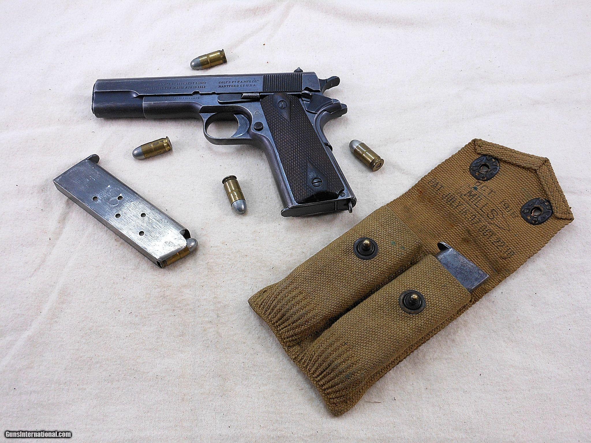 Colt Model 1911 Military Issued In 1917 With Magazine Pouch And Magazines