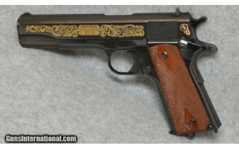 Description: A very collectable in like new condition. Make this one your rare find to pass down for generations to come. SOLD Caliber Info: .45 Auto. Metal Condition: Like New. Wood Condition: Like New. Bore Condition: Like New. Barrels: 5 Inches. Stock: Straight Grain Walnut. Weight: 2 lbs 8 oz. Sights: Blade Front, Fixed Rear. Extras: Display Casre Item Location: Thornton, CO |
