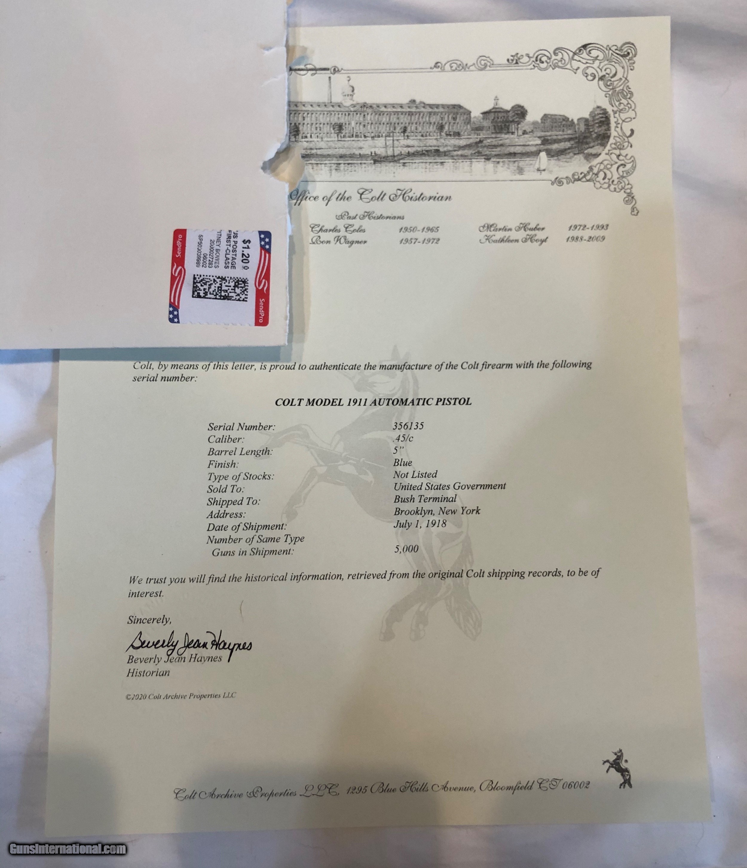 Colt Model 1911 Year 1918 All Original Accessories Museum Quality Package .45 ACP