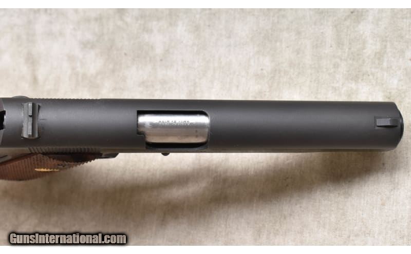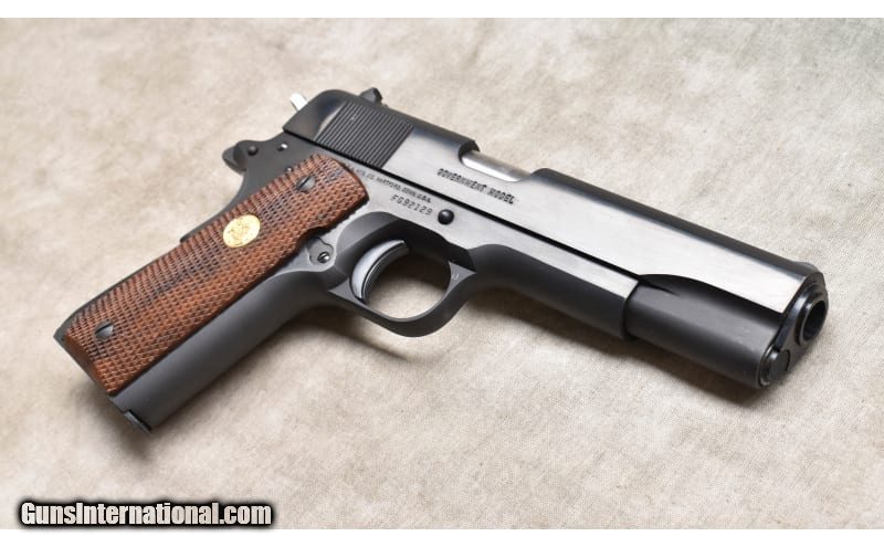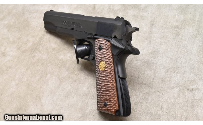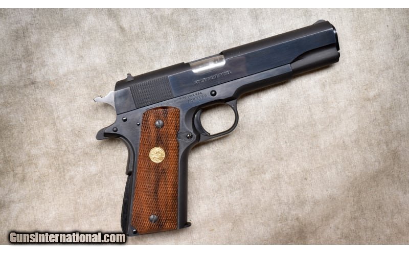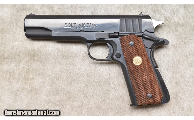 Description: This Colt MK IV Government 1911 is in overall excellent condition. .45 Auto SOLD Chambers: 7 Round detachable magazine. Metal Condition: Excellent with minor handle marks. Wood Condition: Excellent with minor handle marks. Bore Condition: Shiny with good rifling. Barrels: 5 Inches. Triggers: Factory single action. Butt Pad: Checkered Walnut. Weight: 37oz Sights: Front post and rear notch. Item Location: Rogers |