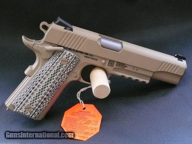 Description: More than 100 years ago, the Colt 1911 was chosen as the official sidearm for America’s Armed Forces. Today, a Colt 1911 is once again proudly serving at the side of our country’s military. After a rigorous selection process, the United States Marine Corps selected the Colt Rail Gun as their Close Quarters Battle Pistol (CQBP). This marks the first time since the end of World War II that a Colt 1911 is being shipped to the United States Government. To honor the brave men and women of this important staple of America’s military might, the Colt M45A1 will be made available through Colt. What makes the CQBP stand out is its Desert Tan Cerakoted Stainless Steel Receiver and Slide, Novak® 3 Night Sights and Flat, Serrated Mainspring Housing with Lanyard Loop. The pistol also features an Enhanced Hammer, Colt Tactical Ambidextrous Safety Lock, and a 5” National Match® Barrel. Features