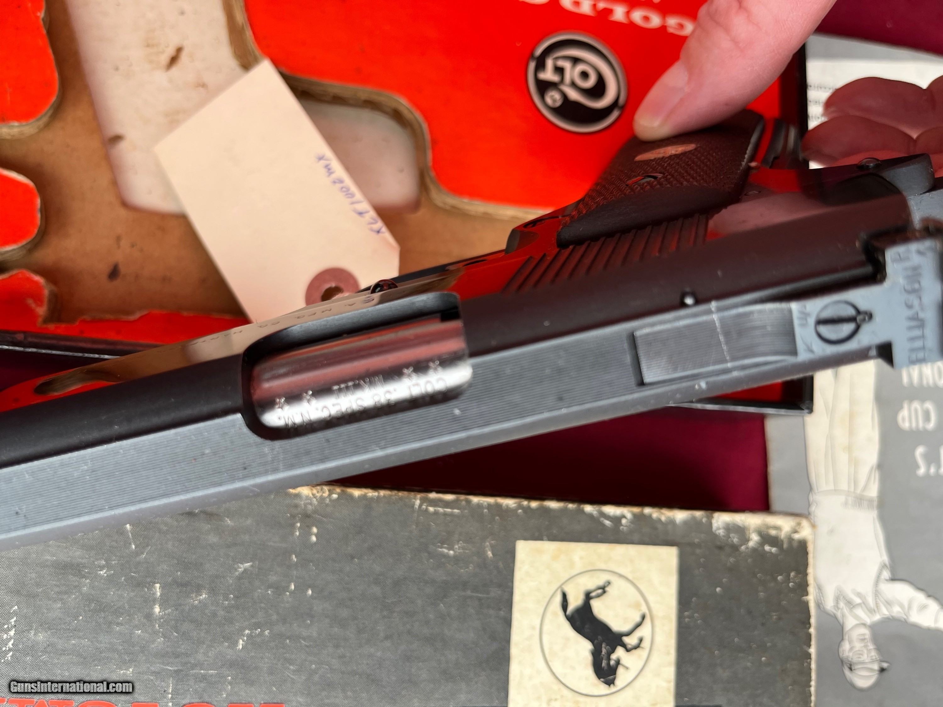 Description: COLT NATIONAL MATCH .38 SPECIAL MID RANGE SEMI AUTO TARGET PISTOL. SER# 8350-MR,MADE IN 1971. CORRECT N.M. BARREL . ADUSTABLE TRIGGER AND ADJUSTABLE REAR SIGHT. GUNS IN EXCELLENT CONDITION . EASTERN BRANCH FIREARMS ADD 35.00 SHIPPING – HANDGUN USPS PRIORTY MAIL ADD 45.00 SHIPPING – LONG GUNS USPS PRIORTY MAIL SORRY NO MORE UPS SHIPPING – THERE POLICY NOT MINE . THEY WILL NO LONGER SHIP GUN AS OF 8/29/2022 Questions e-mail or call Glen at Eastern Branch Firearms 207-215-5021 TERMS – PLEASE READ BEFORE I DO NOT HAVE A LAYAWAY OPTION ( WE ACCEPT CREDIT CARDS ) -- I GET ALOT OF REQUEST FOR TRADES, I WOULD PERFER NOT TO DO TRADES ON MY INTERNET LISTINGS PAYMENT OPTIONS- We accept money orders, cashier’s checks , bank checks. sorry no personal checks. We accept all major credit cards please add 3% to the ’s cash discount price.(Maine Residents to pay 5% sales tax) .Handguns and long guns do need to be shipped separate. PLEASE do not send payment via FED EX . USPS & UPS are fine. Thank you. We include a signed copy of our FFL with each firearm shipped. SAFTY NOTICE- Buyer is solely responsible for determining that a used gun is safe to shoot. The firearms offered have not been test fired but have been given a visual inspection only for purposes. It is a requirement that every used firearm is inspected by a qualified gunsmith before firing. By , the buyer agrees to hold seller harmless against damages, injury, or death caused by defective merchandise. RETURN POLICY- All firearms come with a 3-day non firing , non messing with ( turning srews ,taking apart,removing parts, scoping. firing, cleaning or messing with in anyway) inspection/return privilege.Inspection is based on a visual review of the gun to confirm the gun is in the condition stated. In the case of a return, buyer pays all shipping charges & if paid for with a credit card buyer absorbs the 3% credit card charges . So please ask questions BEFORE you bid. Thanks for Looking and Good Luck!! U.S. sales only, no exports…this includes antiques. I will ship to third party for exporting SOLD |