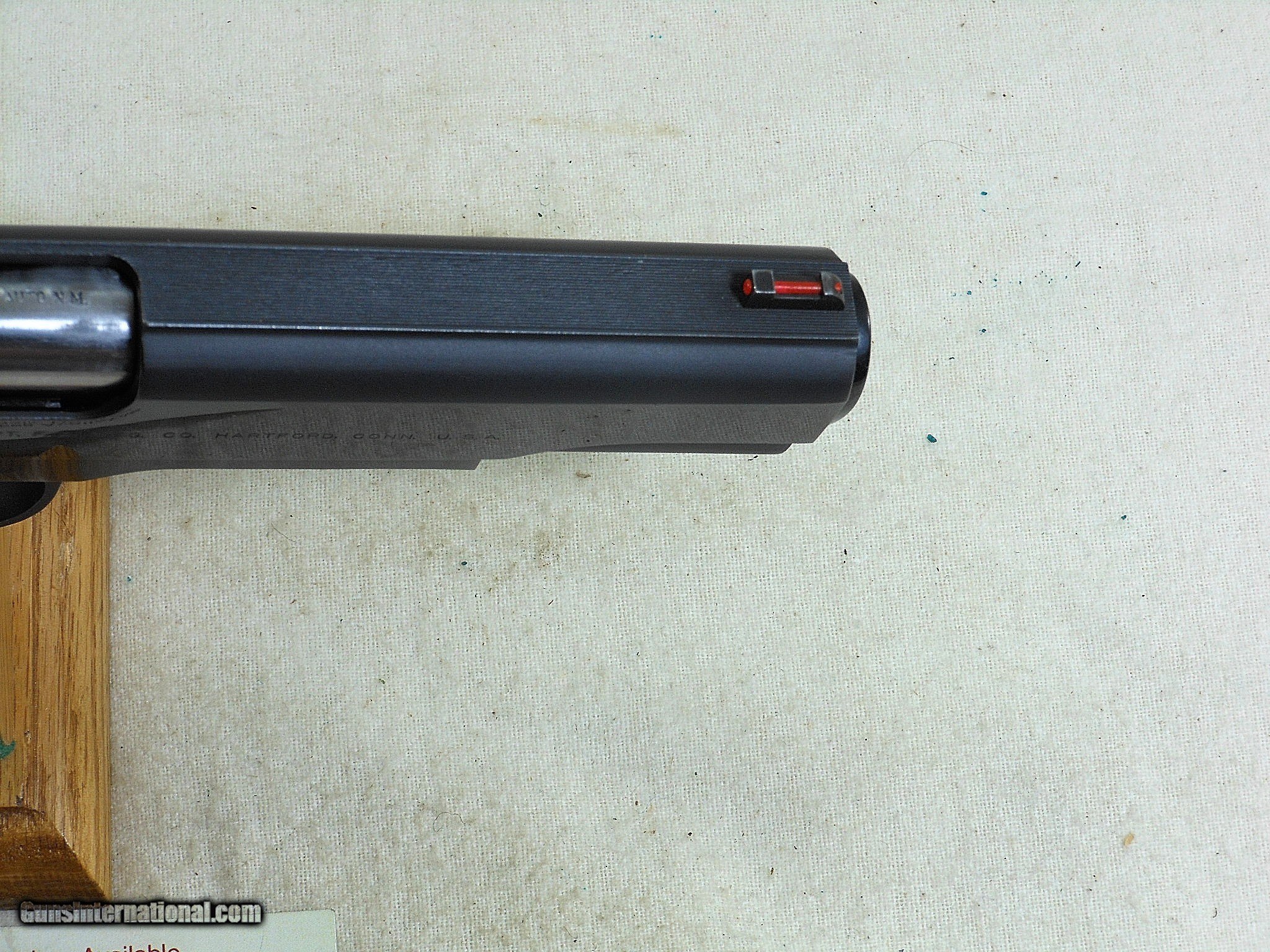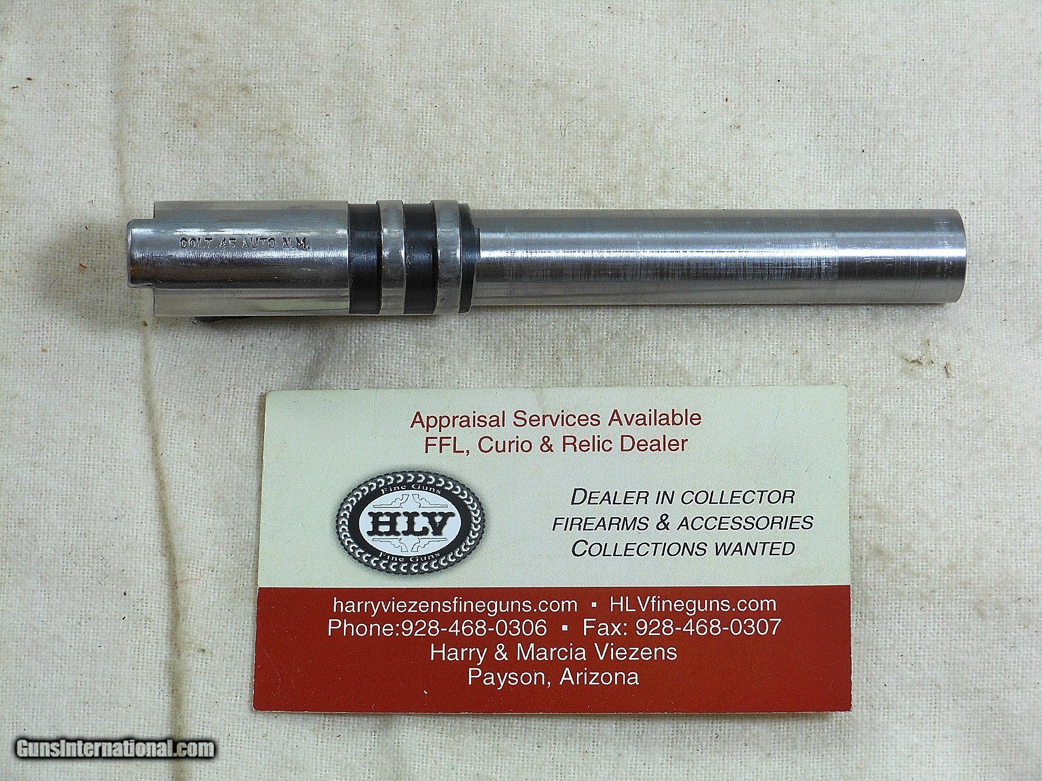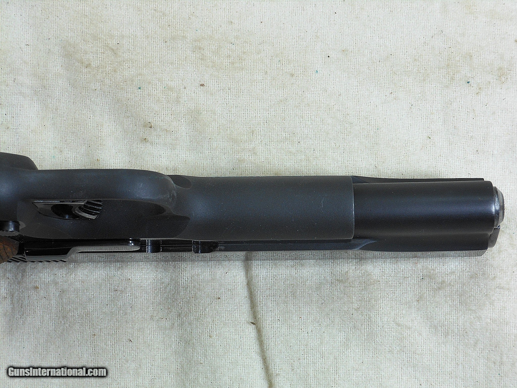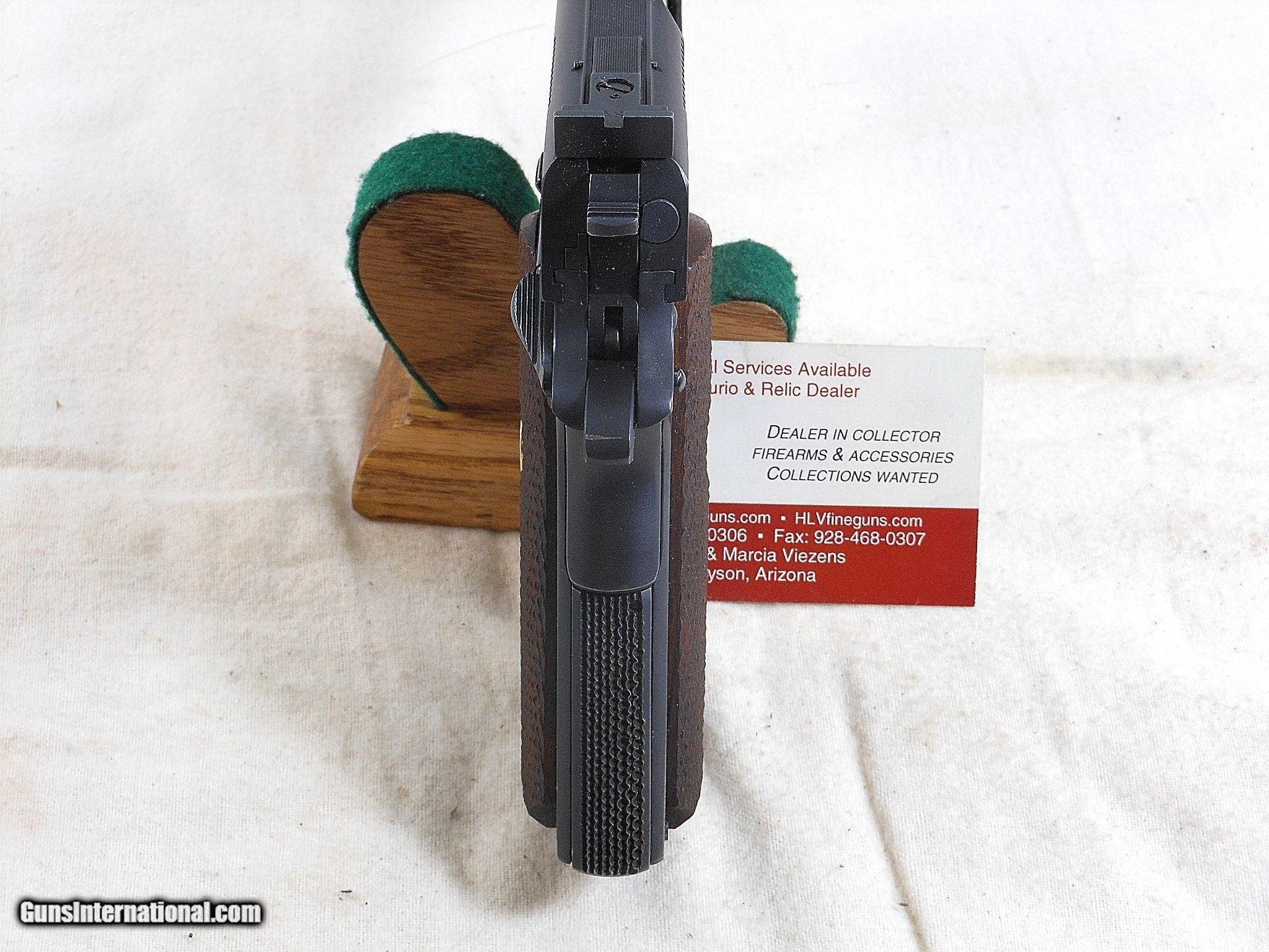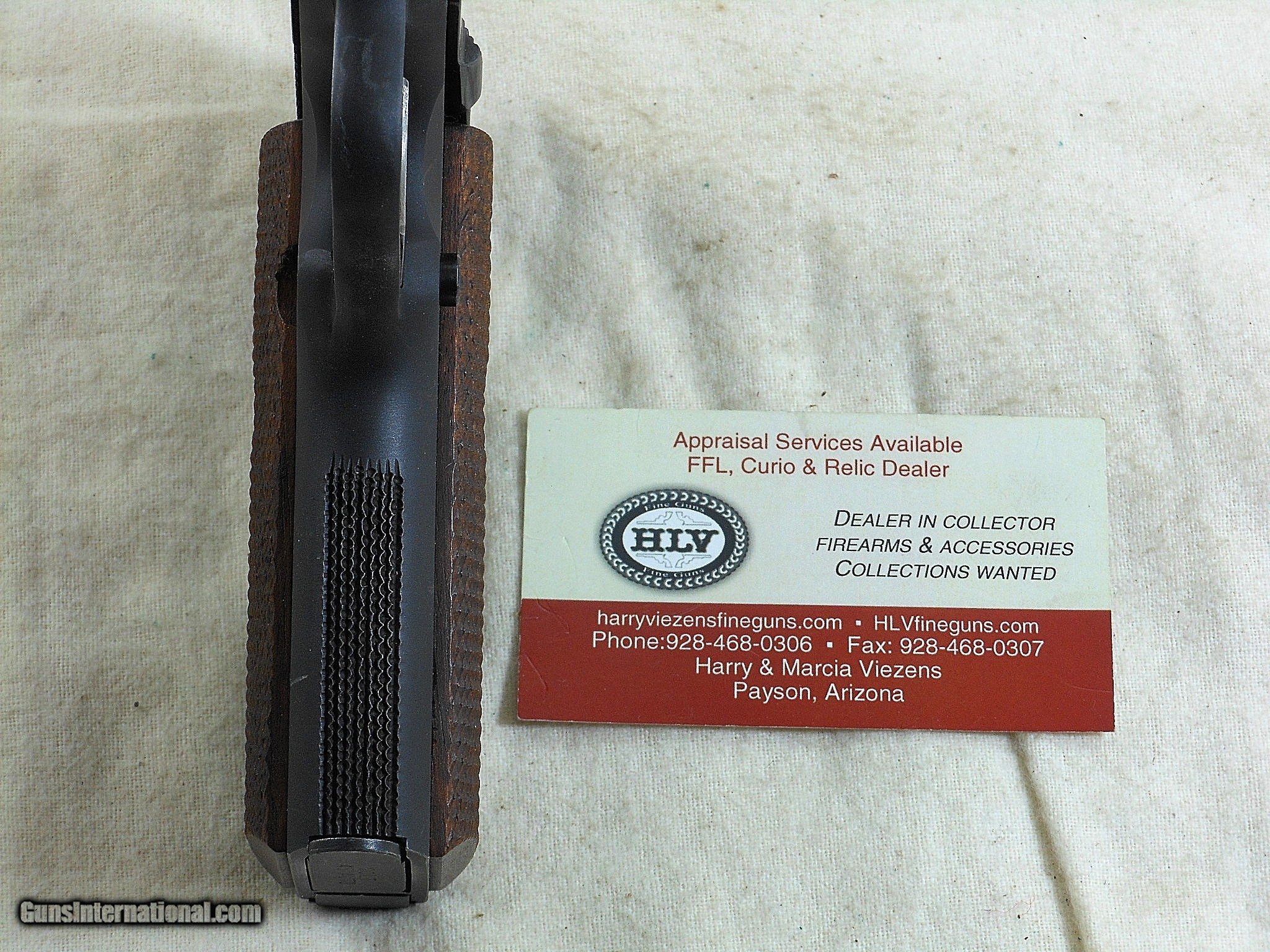 Description: This National Match pistol was produced in 1969. The pistol's serial number is 32925 NM. The original 45 A.C.P. National match barrel is in fine condition. The bore is bright with sharp lands. This Colt shows very little use or being fired. The original bluing would rate 99% overall condition. The original grips are in new condition. The magazine is the correct magazine for this model. The rear sight is the Colt Elliason adjustable target sight. The front sight is the neon dot sight using the original Colt front sight. This sight is great for poor lighting conditions! There is no other alterations done on this pistol other than the front sight. The slide is tight on the rails. The trigger pull is nice and crisp with no play. This is a fine Colt target pistol that is ready to use. The original box is in fair condition. The lid has been crushed lightly. The box bottom is in good serviceable condition. The test target is present as well as the instruction booklet. This is a good looking Colt that is ready to shoot! Curio&Relic J.M.C. Consn. (11) F. No. 633 -22 SOLD Curio/Relic: Yes Handgun Caliber: .45 ACP (.45 Auto) Manufacturer: Colt Model: National Match 45 Serial Number: 32925 NM Barrel Length: 5 Inch Chambers: Minty Condition: 99% Overall Metal Condition: As New Wood Condition: As New Bore Condition: Minty Barrels: Pistol Barrel Type: Target Action: Self Loading Finish: Blued Sights: Target Manufacture Date: 1969 Extras: Original Box And Accessories |