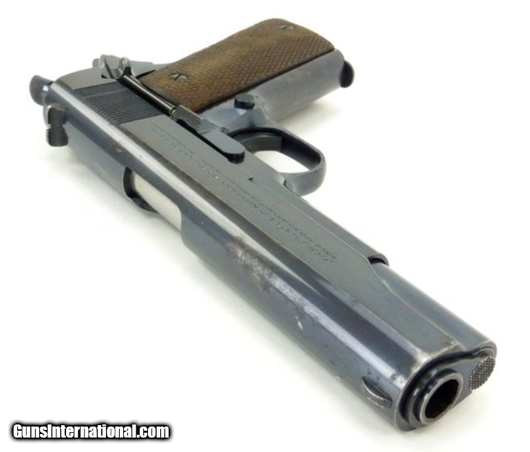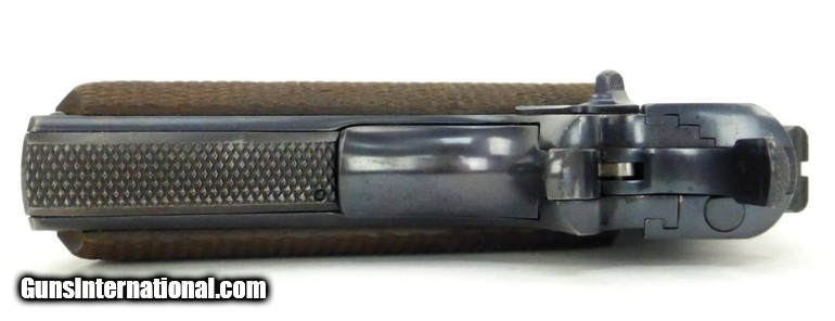 Description: Colt National Match .45 ACP caliber pistol. Manufactured 1938 with matching serial numbers, slide and frame. The bore is excellent. Metal retains 90% original bluing with some surface marking on the top of the slide. 100% correct pre WWII national match pistol with Schwartz safety. SOLD |