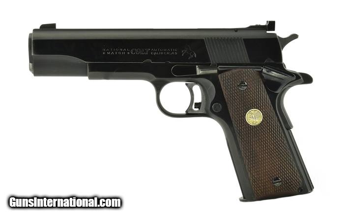 Colt National Match .45 ACP caliber pistol. Pre-series 70 target model, made in 1964. Has about 97% original blue with very light wear. Bore is excellent.