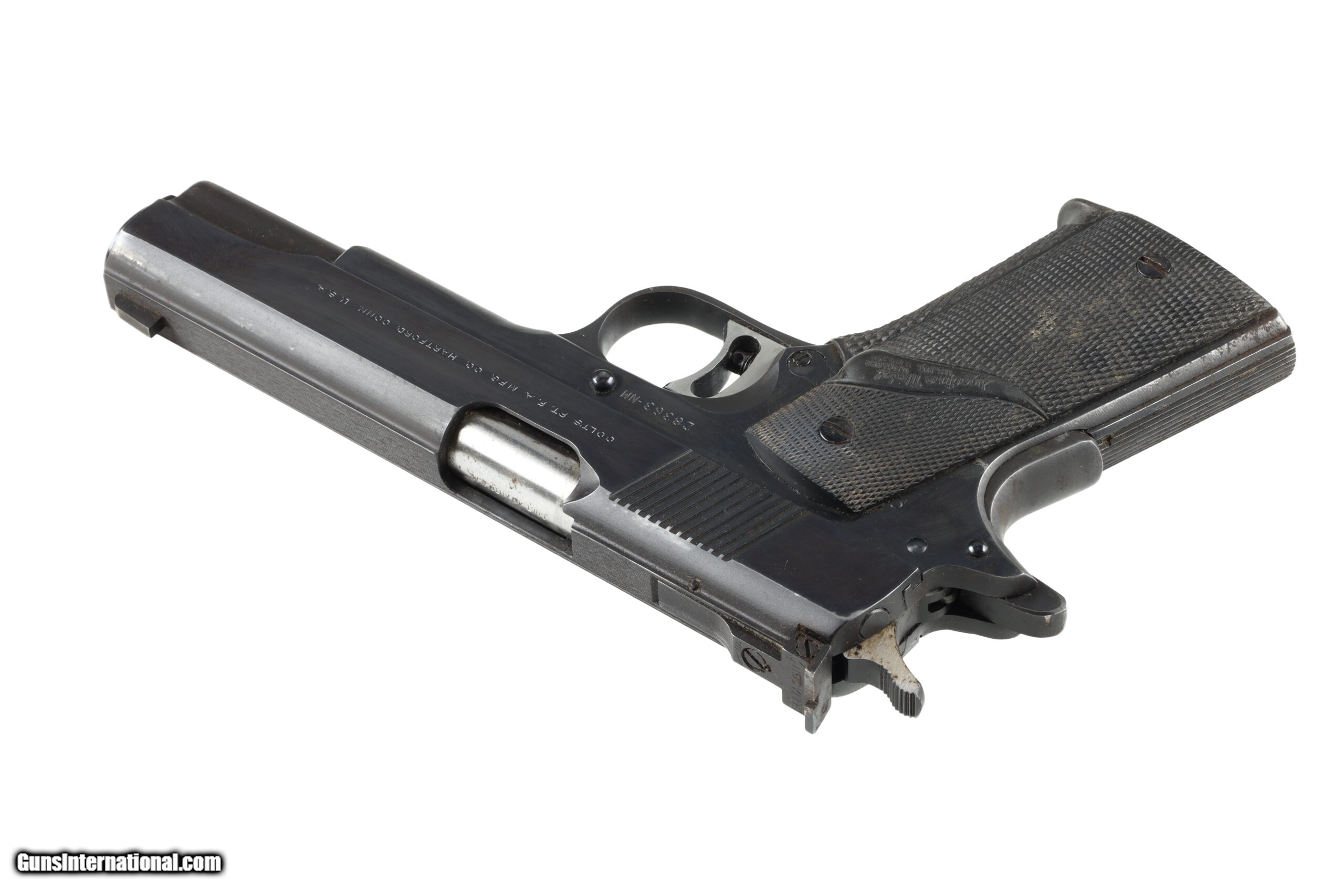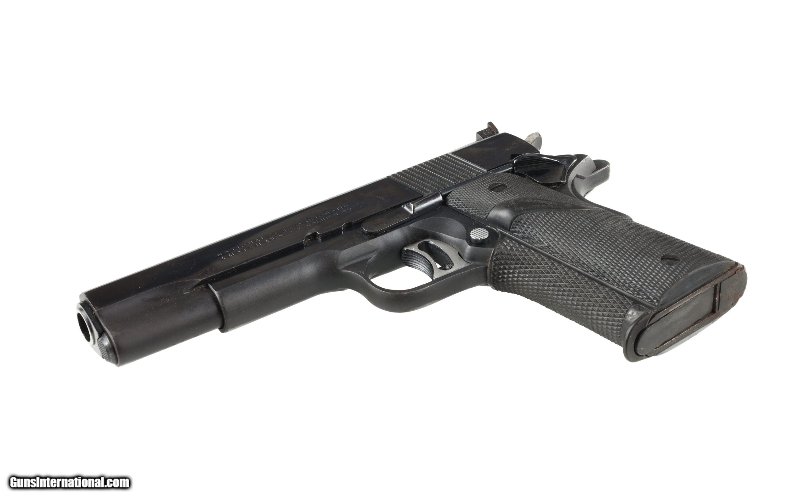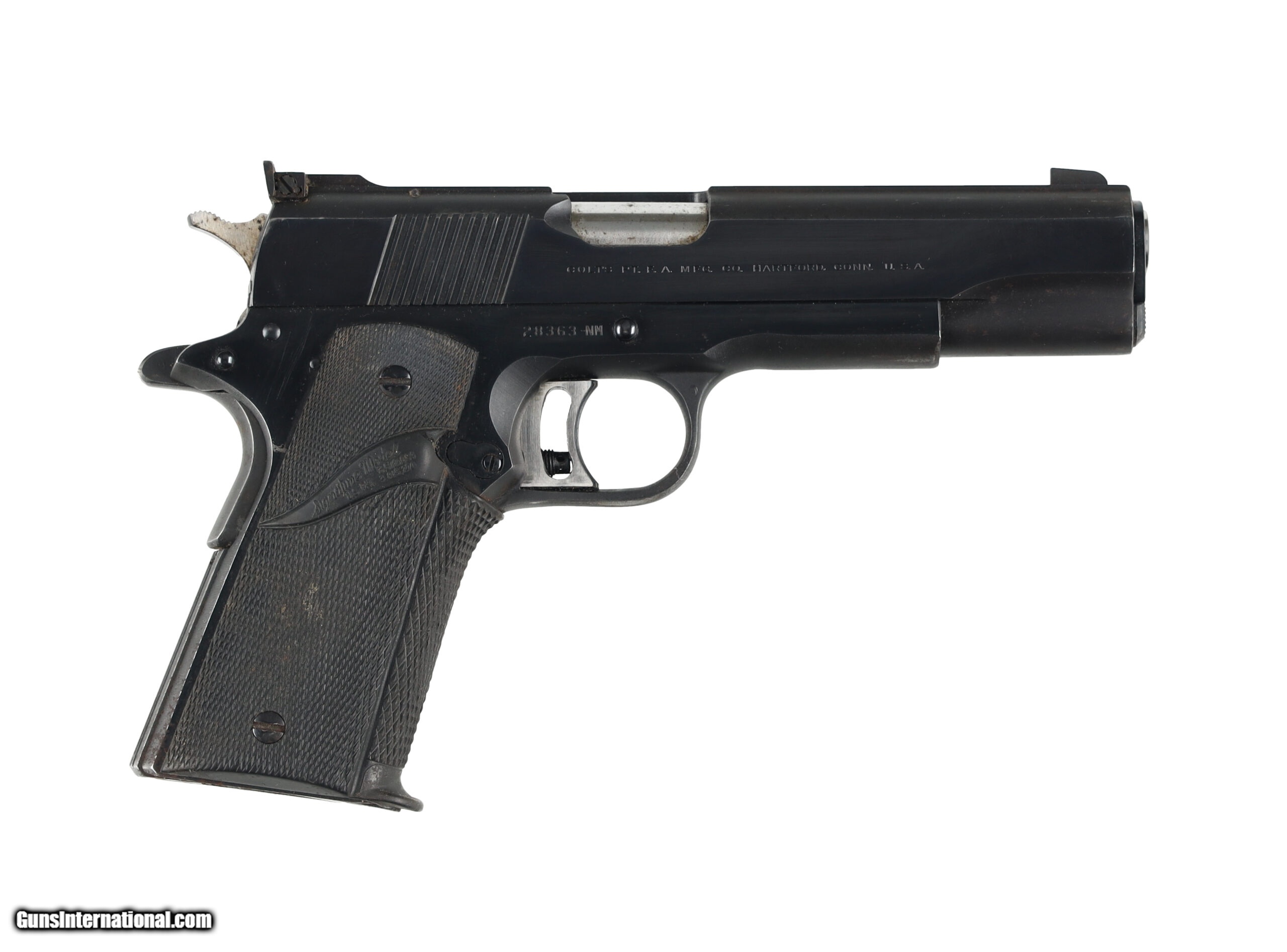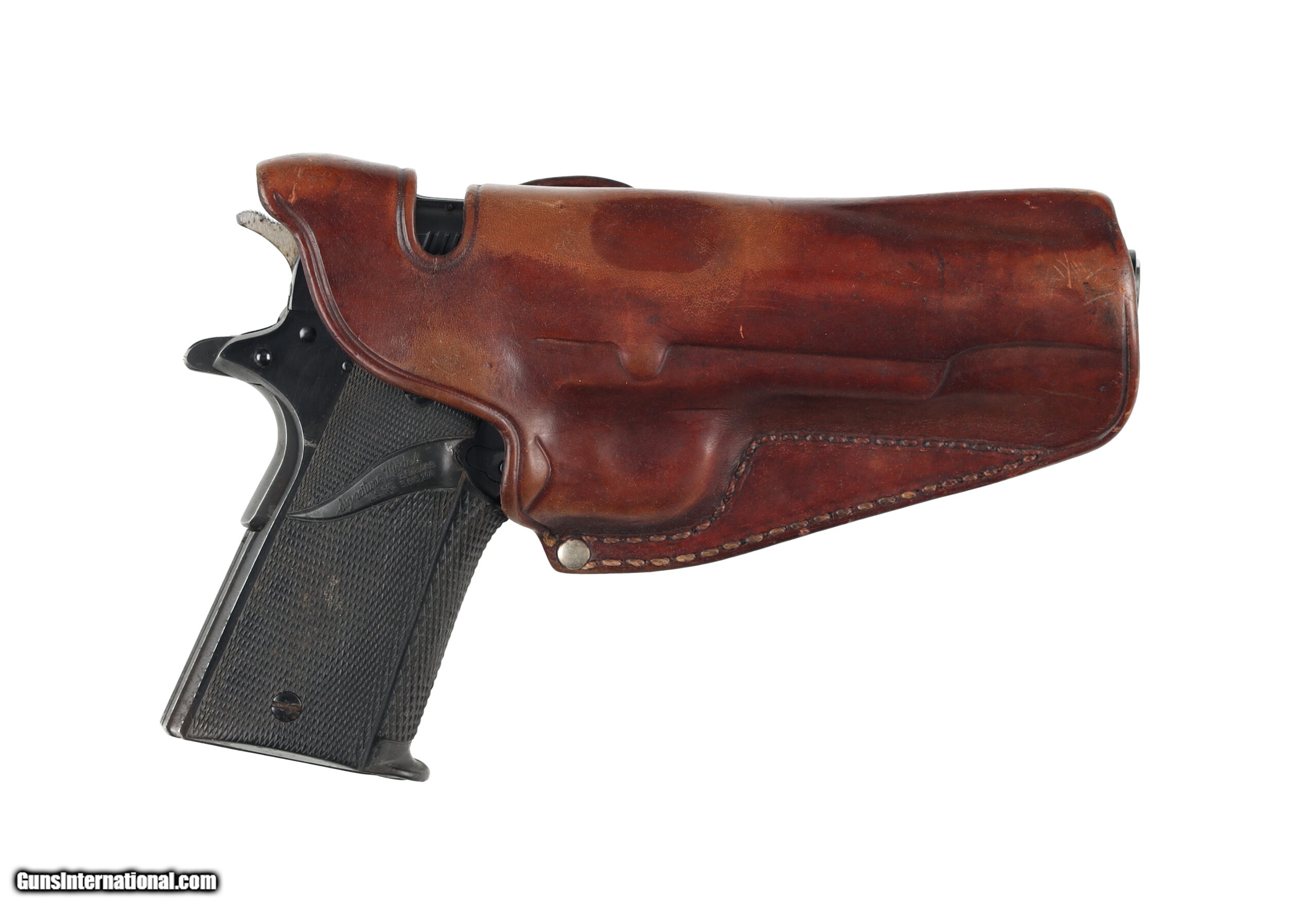 Description: Solid pistol showing some light wear and light rust, one mag and leather holster. Manufactured in: USA Hand: Right Hand Action Finish: Blue Metal Finish: Original Barrel Length: 5 Inches Barrel Condition: Good Extra Barrels: No. SOLD Manufacturer: Colt Model: National Match Caliber Info: .45 ACP Metal Condition: Good Action: Semi Automatic Triggers: Single Finish: Original Weight: 1.5 Extras: No. Case: No |