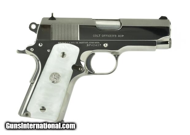 Description: Colt Officers ACP .45 ACP caliber pistol. 3 ½” Compact model with bright stainless finish. Excellent condition.