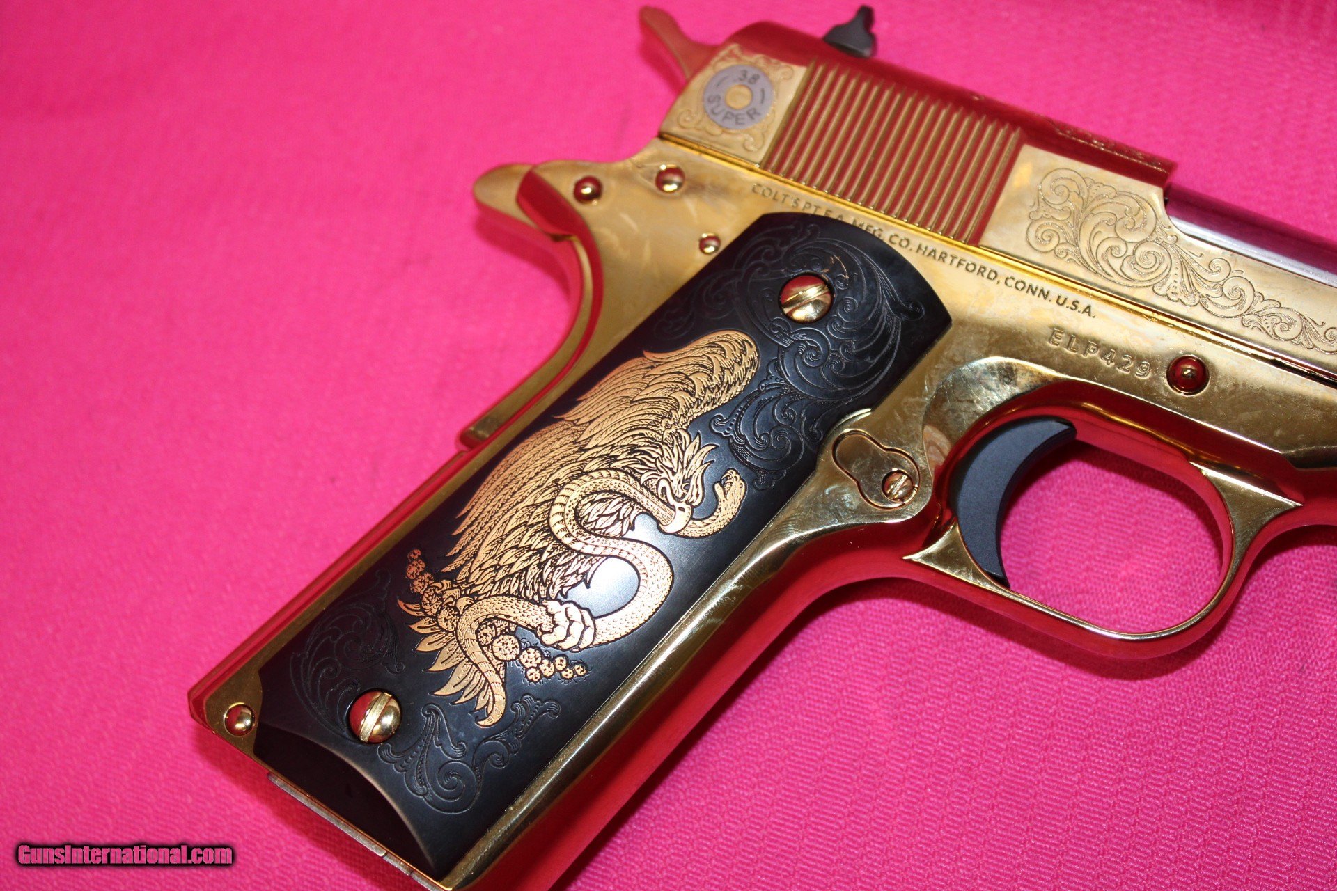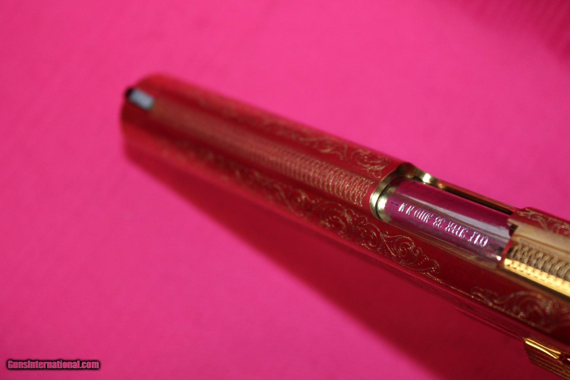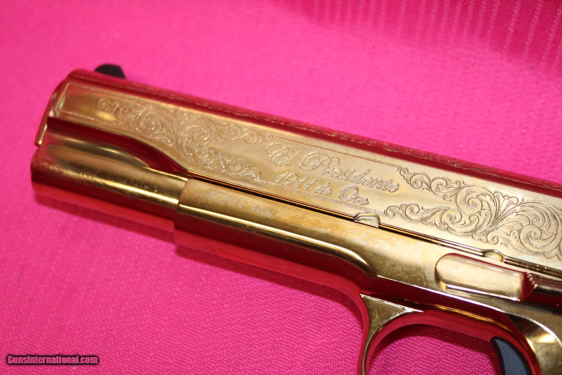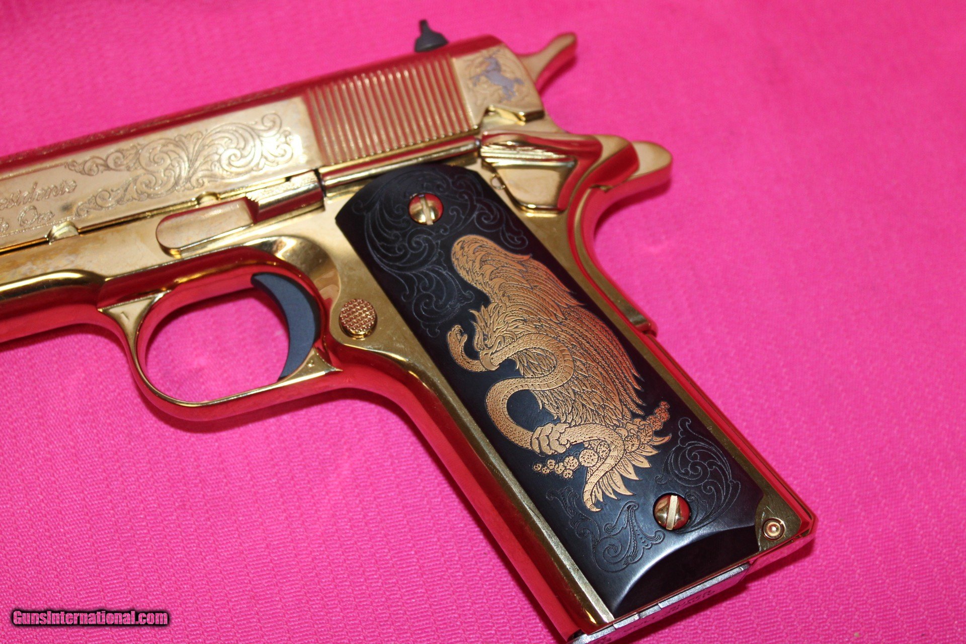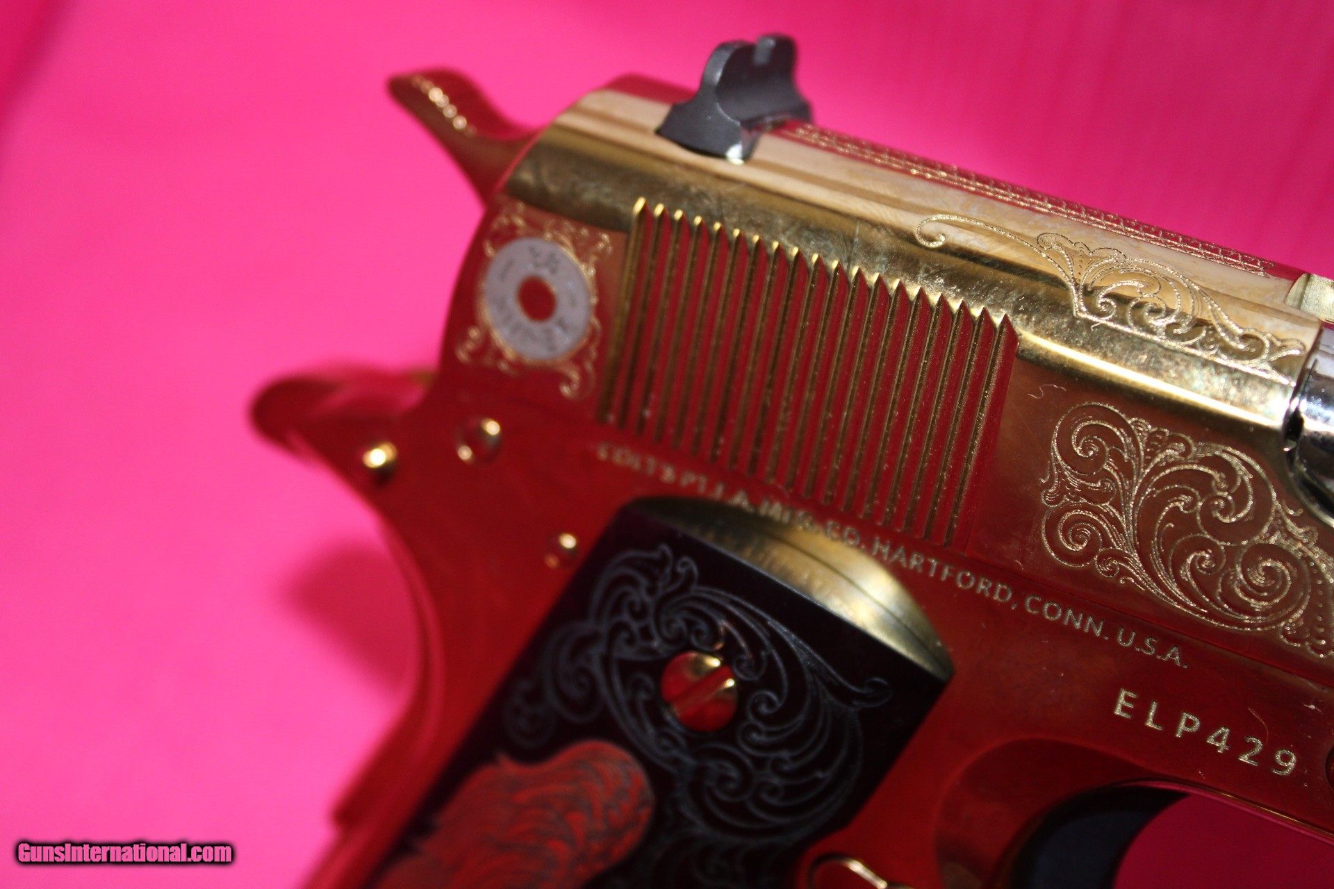 Description: Colt 1911 Presidente De Oro in 38Super with a 5" barrel. 1 of 500 Made this is a Davidsons Exclusive and features a high polished gold titanium nitride finish on the slide and frame, emboldened scroll and lace accents of "El Presidente" over "1911 de Oro; the Colt logo, presidential crest, Rampant Colt, and silver embossed 38 Super casing. 24-carat gold plated Mexican Coat of Arms adorns the custom blued grips. Pistol is brand new with box. *Legendary Guns in Phoenix AZ 602-242-1195 Hours of operation Tuesday-Friday 10-6 Sat 10-5 Closed Sundays & Mondays *We accept all Major credit cards. We DO NOT charge an additional fee for Credit Cards. We also accept Postal Money orders or Certified Bank Checks{Check & Money order payments must arrive within 7 days of initial agreement and will be held for 3 days before items are shipped} *Shipping is $50 for rifles/shotguns {AK & HI Extra} and $35 for handguns. Arizona Residents Must Pay Sales Tax. We DO NOT ship Internationally. *We offer a 60 day layaway on purchases of $500 or more. Items require 1/3 of the total price as down payment which is NON-REFUNDABLE and you have 60 days to pay off the balance. *Please call or email with any questions and to confirm availability before buying. We are happy to answer all questions. All items listed are also for sale at our Phoenix, AZ location *We offer a 3 day inspection period on USED FIREARMS ONLY, We accept returns within the 3 day inspection period with NO REFUNDS ON SHIPPING CHARGES and a 10% restocking fee. *Trades are welcome for customers who can visit our Phoenix, AZ location, We DO NOT engage in online or mail in trades. SOLD Handgun Caliber: .38 Super Auto Manufacturer: Colt Model: 1911 Condition: New |