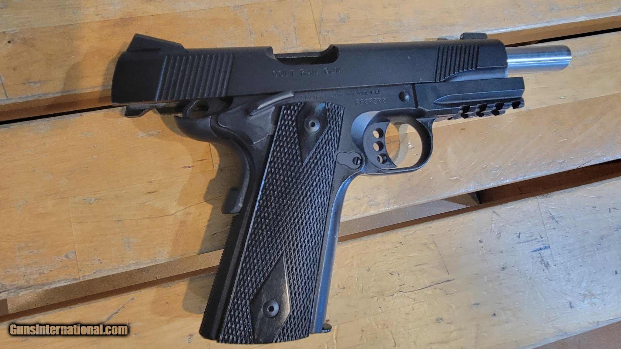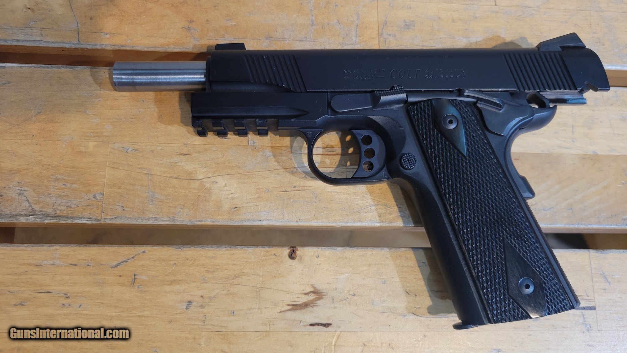 Description: Guns Listing ID: 493494 This offering is a .45 ACP 1911 Government Colt Combat Unit Rail Gun, 5\" MINTY PARKERIZED MODEL O1980RG. Only a few rounds fired, not new in Box. Complete with original Colt Hard Case and Manual! 2 Colt 8rd magazine. SOLD Manufacturer: COLT Model: RAIL GUN Caliber Info: .45 ACP Condition: Used - Non-Certified Barrels: 5 BARREL Action: SINGLE SHOT Weight: 2.3 |