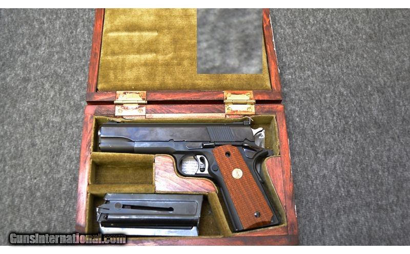 Description: Colt National Match with a 5" barrel. Some handling marks and light scratches. Grips are in great shape other than missing one screw. Bore looks good. Comes with three mags and custom-made wooden case. .38 Special SOLD Barrels: 5 Weight: 2.5 lbs Item Location: Charleston, WV |