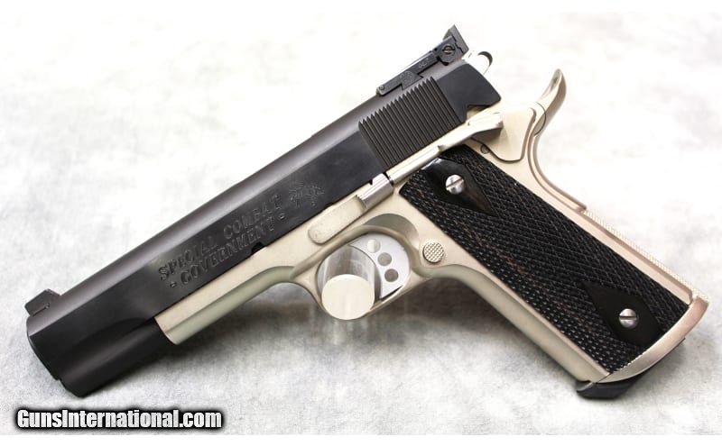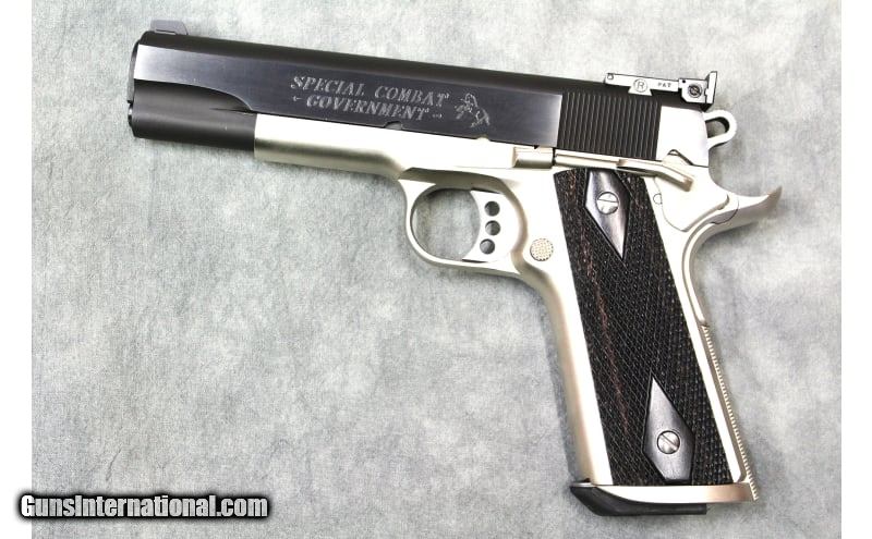 Description: This is a Gorgeous, USED Colt Special Combat Government Model 1911 chambered in .38 Super. Colt has continued to make the best 1911's even better. Carrying on its legacy of flawless craftsmanship, the industry-leading Colt Custom Shop proudly offers the Special Combat Government Series. This model offer enthusiasts an opportunity to own a handcrafted 1911 type pistol which incorporates some of the most desired features normally associated with the best 1911 custom gunsmiths. The Special Combat Government offers superior feel and performance for any type of user. Whether carrying it on duty, as a personal defense firearm or straight into competition, these Colts will offer reliability, accuracy and the quality for which Colt has been known for over 175 years. This Custom Shop Special Combat is fitted with a 5-inch National Match barrel, ambidextrous safety, adjustable skeleton trigger, Lowered and Flared Ejection Port, Bo-Mar adjustable rear sight, double diamond checkered wood grips, one piece checkered main spring housing/speed magazine shoot, beavertail grip safety, and is two-tone finished with a blue slide/satin nickel frame and accent parts. Call the Las Vegas, NV Bass Pro Shops store today! 702-730-5200 .38 Super SOLD Metal Condition: Excellent Wood Condition: Excellent Bore Condition: Excellent Barrels: 5 Weight: 2.5 lbs Sights: "Fixed front target sight, Bomar adjustable rear target sight. Item Location: Las Vegas, NV |