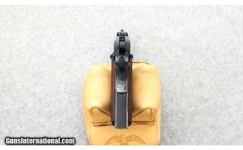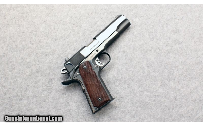 Description: SOLD Caliber Info: .45 auto Metal Condition: Great, handleing ware on backstrap Wood Condition: No cracks shows ware Bore Condition: Excellent Barrels: 5 ins Triggers: Three hole groved Trigger Stock: Checkered Wood Weight: 38 ozs. Sights: Three dot Trijicon night sights Extras: Original Box Item Location: Hoffman Estates, IL |