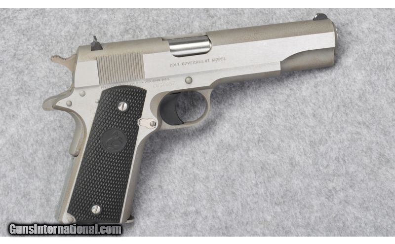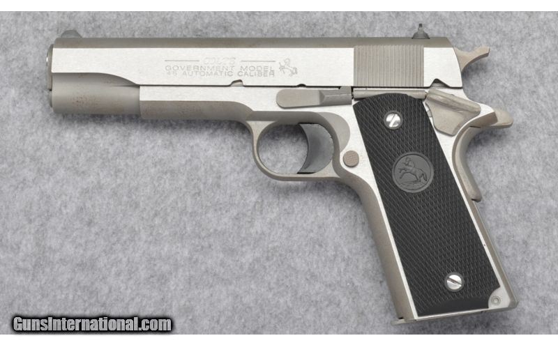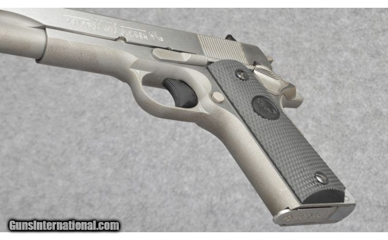 Description: SOLD Caliber Info: 45 ACP Metal Condition: Stainless Construction. Scattered freckling Barrels: 5 Inch, Stainless Bushing Barrel Triggers: Single Action Stock: Colt Checkered Polymer Weight: 37 Ozs Sights: 3-Dot Fixed Sights Extras: Factory Box, Extra Mag. Item Location: Buda, TX |
