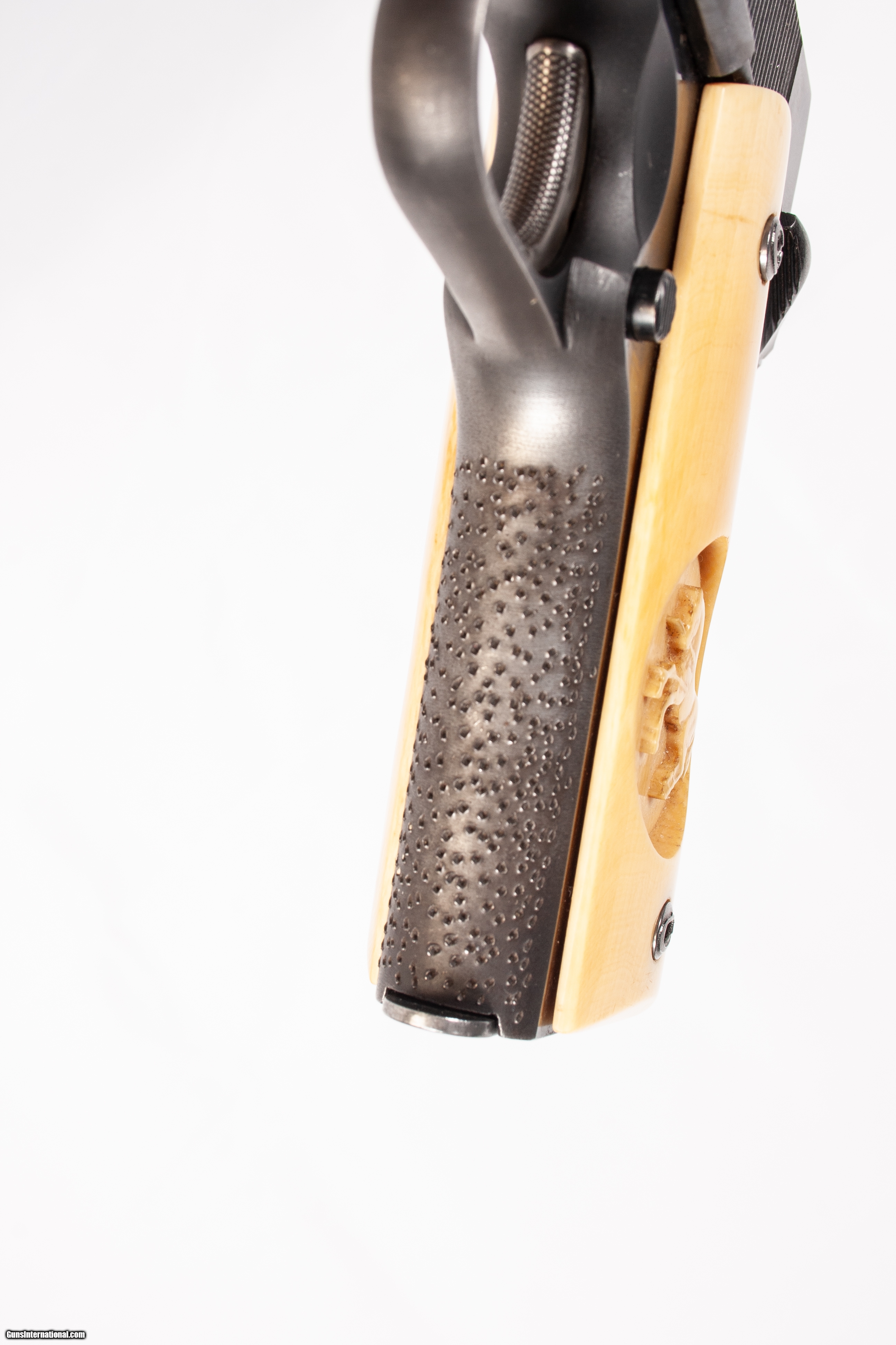 Colt Super 381911 chambered in .38 Super with a 5 inch barrel bright & shiny bore. there is some bluing fading from the slide and barrel the front strap has some custum (non-factory) stippling a set of custom made Colt grips with Colt grip screws. The serial number dates this frame being manufactured in 1953. This gun is in very good condition and is covered by Dury's Lifetime Warranty.