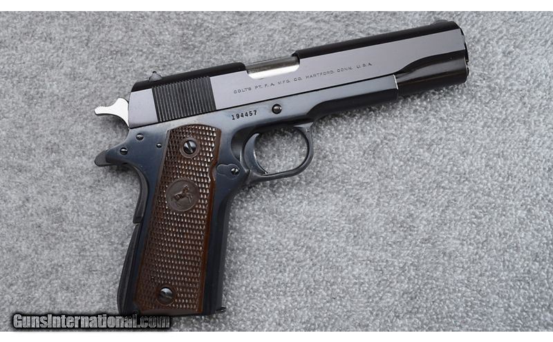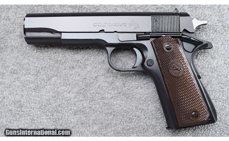 Description: This 1968 vintage Colt Super 38 1911 is in excellent condition throughout. These Super 38 Colts are extremely hard to find, especially in this condition. Comes with soft case. .38 Super SOLD Metal Condition: Excellent Wood Condition: Excellent Bore Condition: Excellent Barrels: 5 Triggers: Factory 4.5 lb Trigger Fore End: Checkered Plastic with Colt Medallion Grips Weight: 40 Oz. Sights: Fixed Blade Front - Dove Tail Rear Item Location: Wheeling |