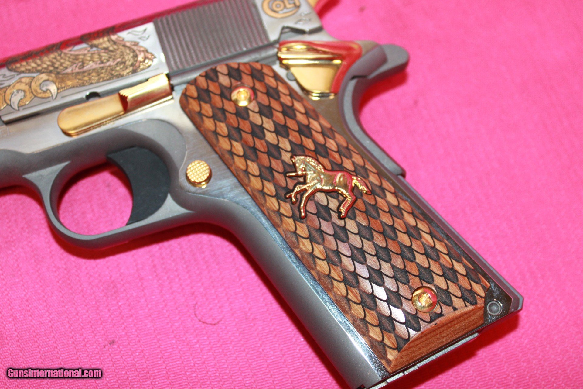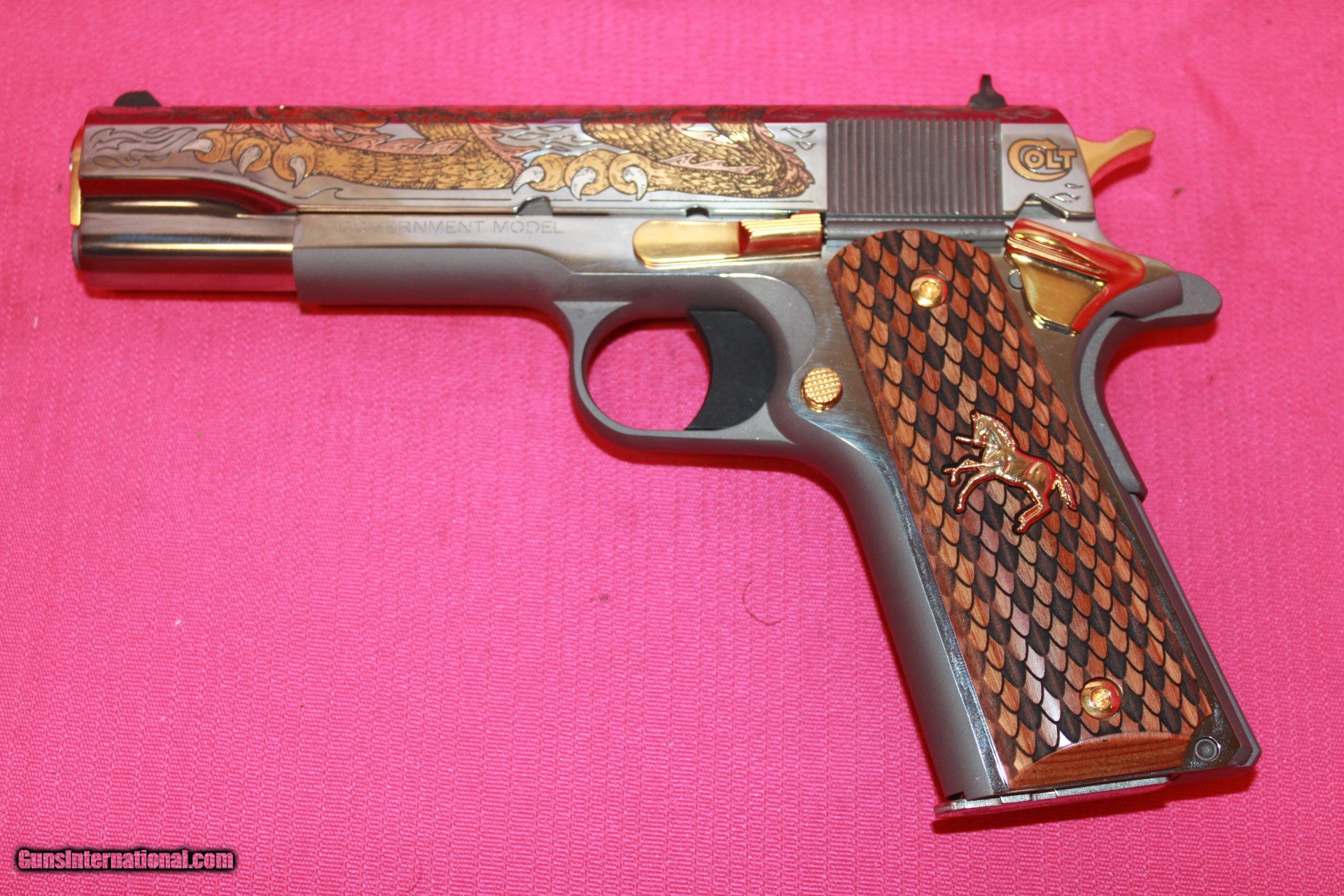 Description: Colt The Dragon in 38 Super, with a 5" barrel, Talo edition. #25 of 500. Pistol is unfired and comes with 1 mag and box. *Legendary Guns in Phoenix AZ 602-242-1195 Hours of operation Tuesday-Friday 10-6 Sat 10-5 Closed Sundays & Mondays *We accept all Major credit cards. We DO NOT charge an additional fee for Credit Cards. We also accept Postal Money orders or Certified Bank Checks{Check & Money order payments must arrive within 7 days of initial agreement and will be held for 3 days before items are shipped} *Shipping is $50 for rifles/shotguns {AK & HI Extra} and $35 for handguns. Arizona Residents Must Pay Sales Tax. We DO NOT ship Internationally. *We offer a 60 day layaway on purchases of $500 or more. Items require 1/3 of the total price as down payment which is NON-REFUNDABLE and you have 60 days to pay off the balance. *Please call or email with any questions and to confirm availability before buying. We are happy to answer all questions. All items listed are also for sale at our Phoenix, AZ location *We offer a 3 day inspection period on USED FIREARMS ONLY, We accept returns within the 3 day inspection period with NO REFUNDS ON SHIPPING CHARGES and a 10% restocking fee. *Trades are welcome for customers who can visit our Phoenix, AZ location, We DO NOT engage in online or mail in trades. SOLD Handgun Caliber: .38 Super Auto Manufacturer: Colt Model: 1911 |