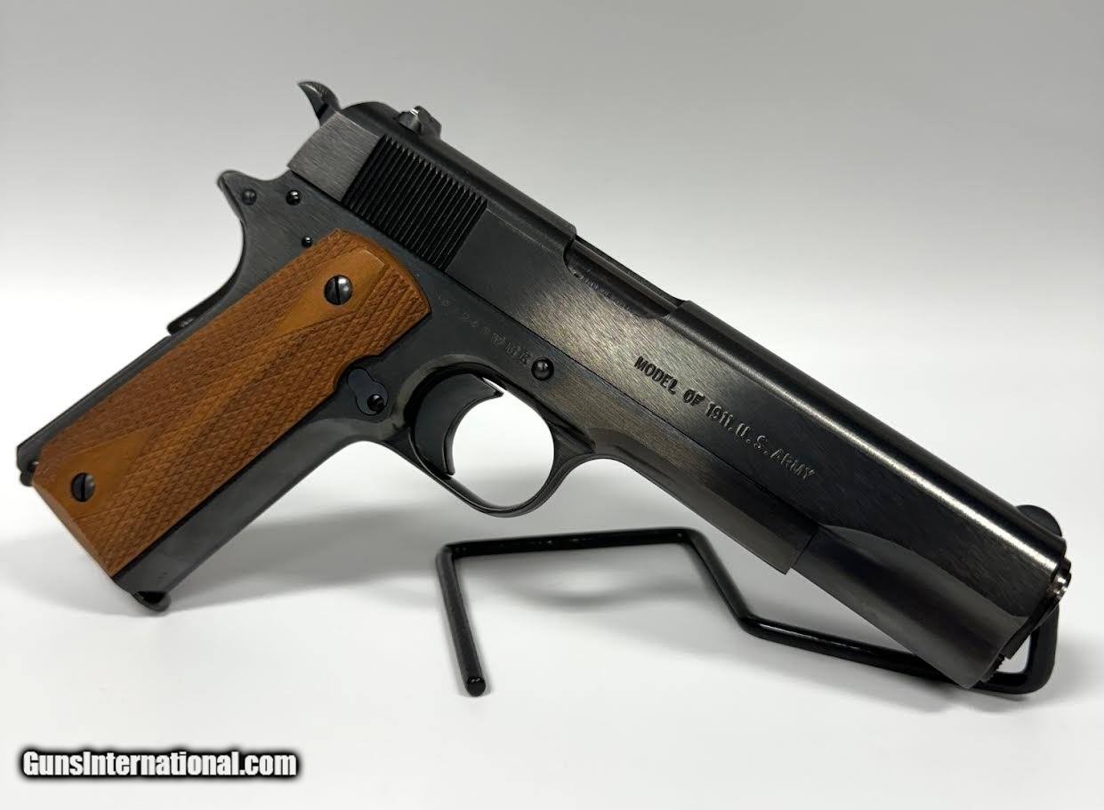 Description: Guns Listing ID: 484109 Colt 1911 WWI Reissue U.S. Army Semi Auto Pistol in Carbonia Blue, Chambered in .45 ACP, This is an exact replica of the WWI service sidearm based on the original blueprints, down to roll marks, packaging, flared hammer, and carbonia blue finish. 45 ACP., 5 in. barrel, Series 70 firing system. Colt‚‚s custom shop only made about 4,000 of these. Includes everything that it came from the factory with. Colt 1911 WWI Reissue of 1918 US Army Carbonia Blue 45acp NIB Custom 1 of 1,00 SOLD Manufacturer: COLT Model: US ARMY 1911 Condition: Used - Non-Certified Barrels: 5 Gauge Info: .45 ACP Finish: blued |