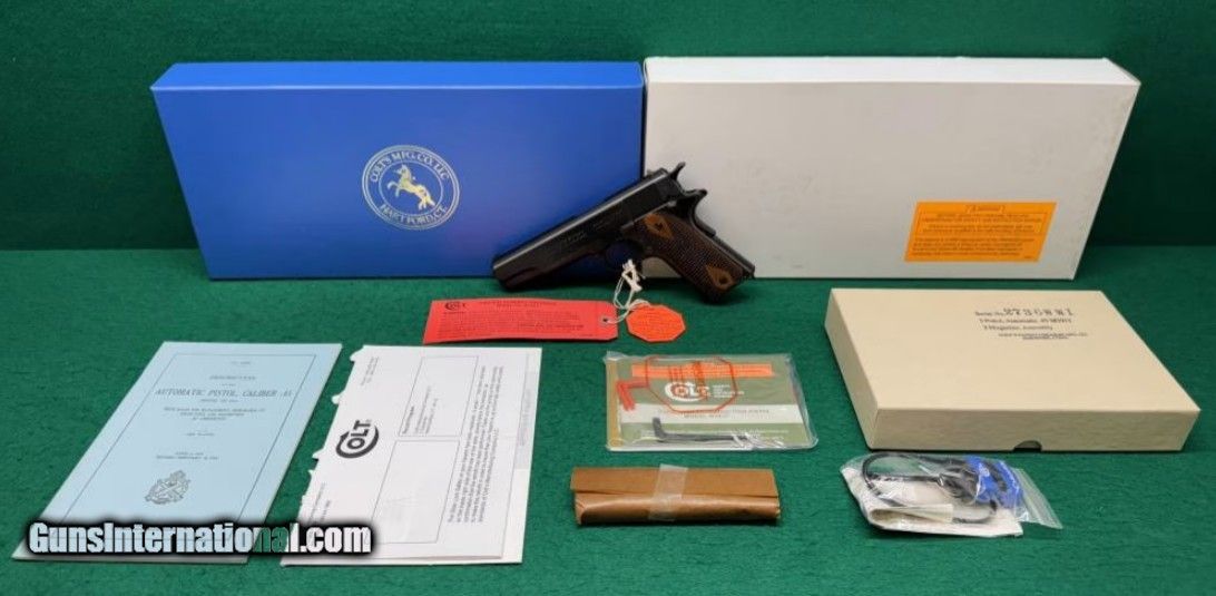 Description: Guns Listing ID: 584976 This listing is for a Colt 1911 WWI Government 45 ACP Model 0 Blued 5\" BBL 7+1 . This Colt 1911 is a WWI reproduction Model 0 pistol. This Colt 1911 is chambered in 45 ACP, and it will hold 7 rounds in the magazine. This pistol comes with a 5 inch barrel. It comes equipped with the original style fixed front & rear sights. Although this pistol appears to be in great condition, there is a small scuff towards the end of the underside of the frame. The action appears to be in great condition, the finish appears to be in great condition, and the bore appears to be in great condition. This pistol comes with the outside cardboard box, the blue Colt box, a blue manual, an extra 7 round magazine inside of wax paper wrapping, a cable lock, a Colt instruction manual, a classic style maintenance tool, and a white internal cardboard pistol box. This pistol also comes with a recall letter stating the factory replaced the slide lock safety, and it states that there is a small “-“ mark on the inside right side of the rear of the slide. This would be a great addition to your collection! ** DISCLAIMER** THIS FIREARM HAS NOT BEEN TEST FIRED*** Manufacturer: COLT Model: WW1 Caliber Info: .45 ACP Condition: Used - Non-Certified Barrels: 5" BARREL Action: SEMI AUTOMATIC Finish: black-oxide Price: $1,784.99 Contact Seller |