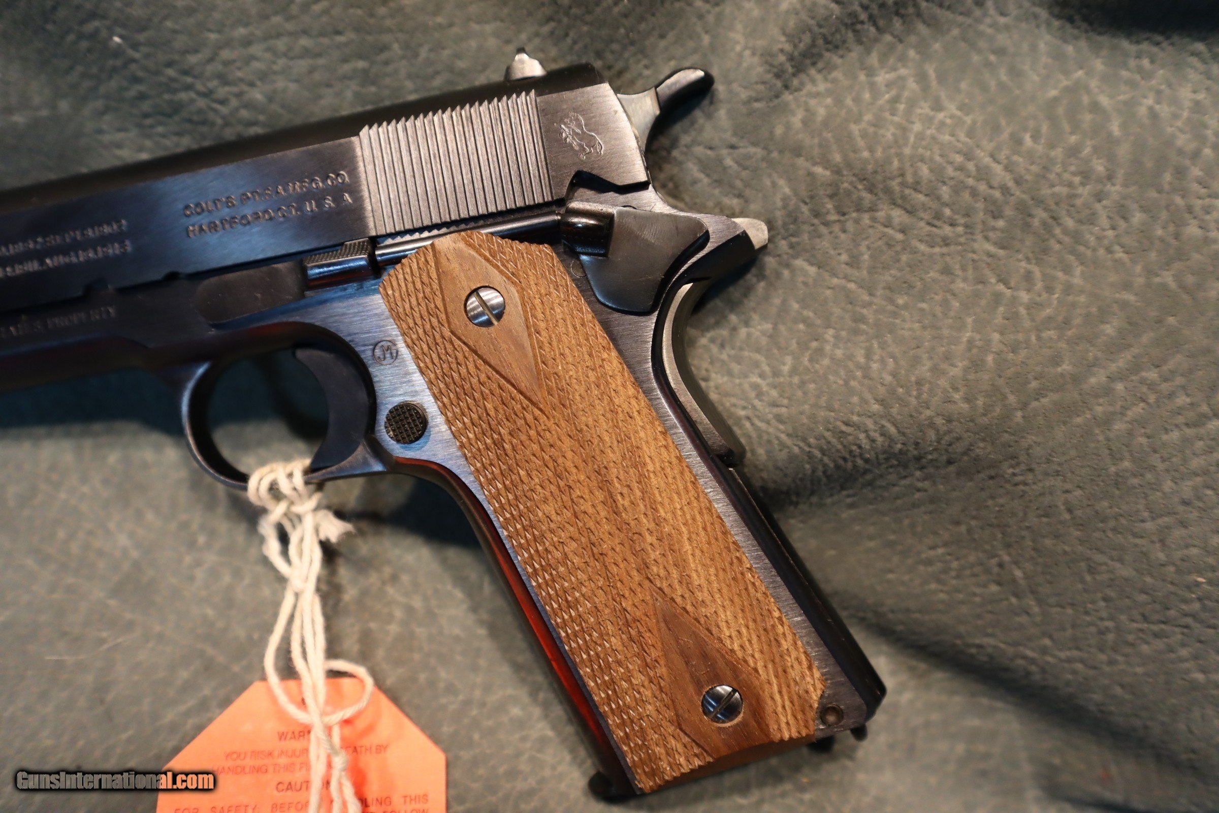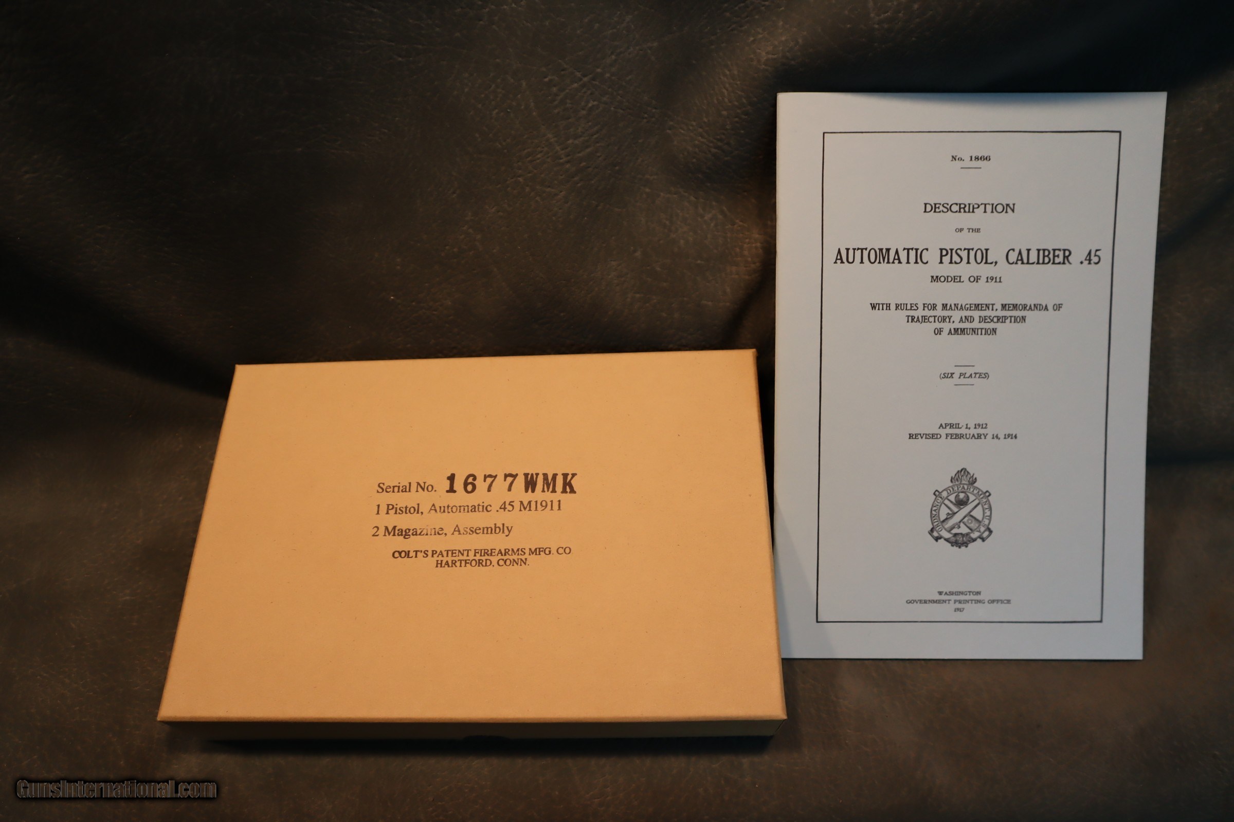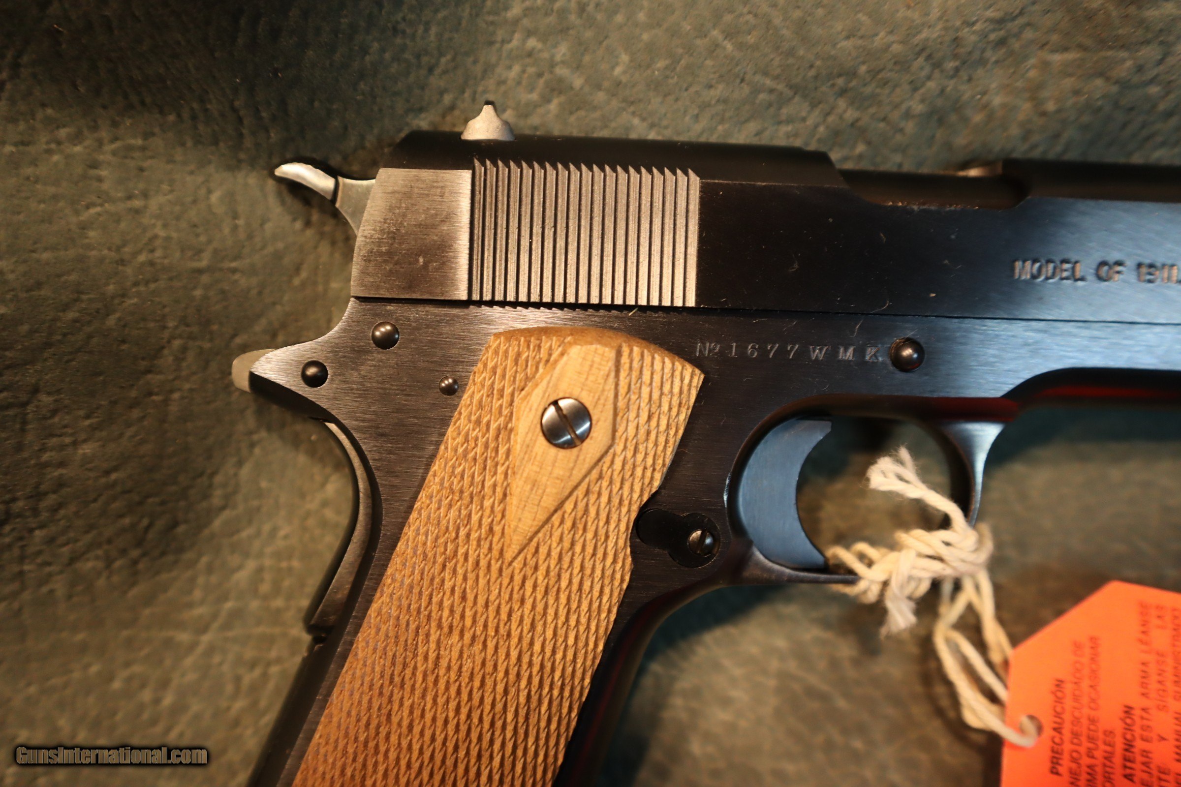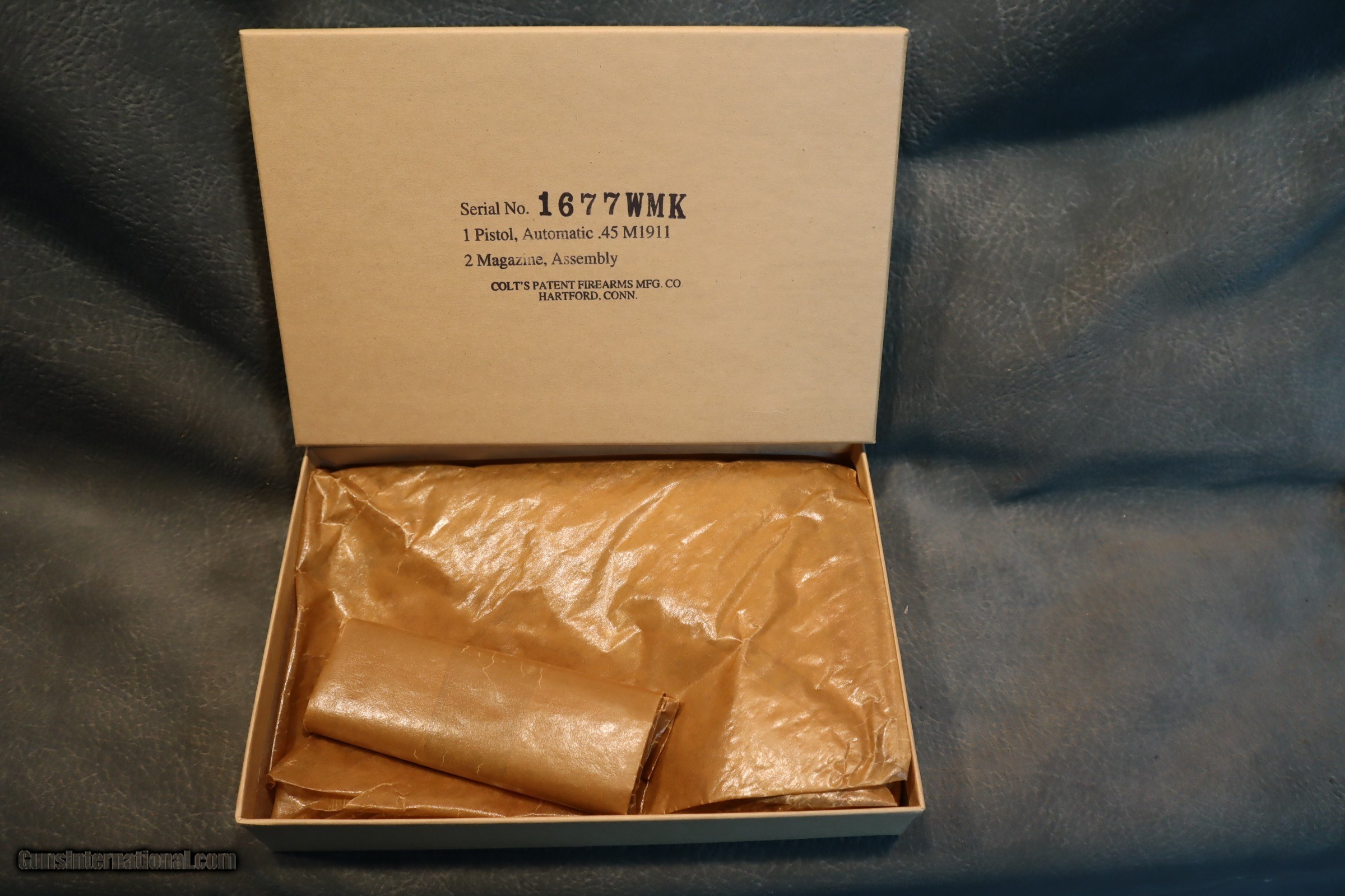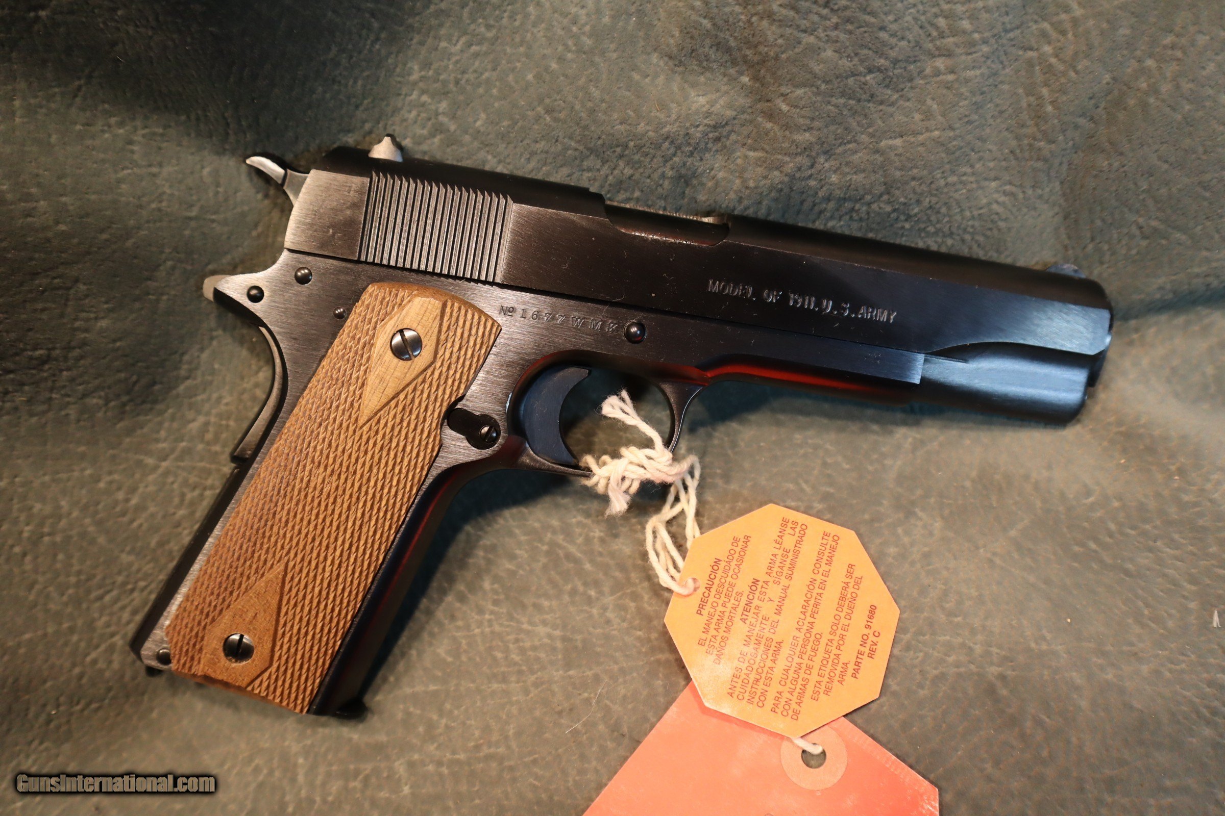Description: Colt WWI Model No M1911 45acp,original US Army style with Carbonia Blue Finish,original style checkered walnut grips,original WWI roll marks and packaging,limited production made in 2003,new in the Custom Shop box with outer sleeve and all paperwork. GUN COLLECTIONS WANTED FOR CASH! We buy, sell, consign and trade new and used firearms. This is our 48th year in business. We offer 90 day layaways with 20% down. No return on layaways. Firearms will need to be transferred through a FFL dealer. Prices reflect a cash discount. There will be 3% added to credit card sales. We trade for gold and silver. THANK YOU! SOLD |