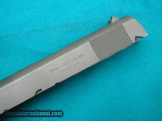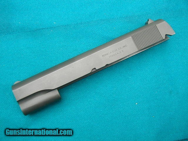Description: THIS IS AN ORIGINAL ITHICA SLIDE FOR A WW2 1911 A1. IT IS CLEAN, RUST, DING, AND PIT FREE WITH ALL MARKINGS SHARP AND INTACT. BOTTOM SPINE SHOW THE NUMBER 7 AND AN ORDNACE BOMB. POSSIBLY AN ARSENAL RE FINISH MARKS ? SUPER CLEAN AND CRISP WITH ALL EDGES SHARP, INCLUDES ORIGINAL FRONT AND REAR SIGHTS. GREAT PARKERIZED FINISH THROUGHOUT. SOLD |