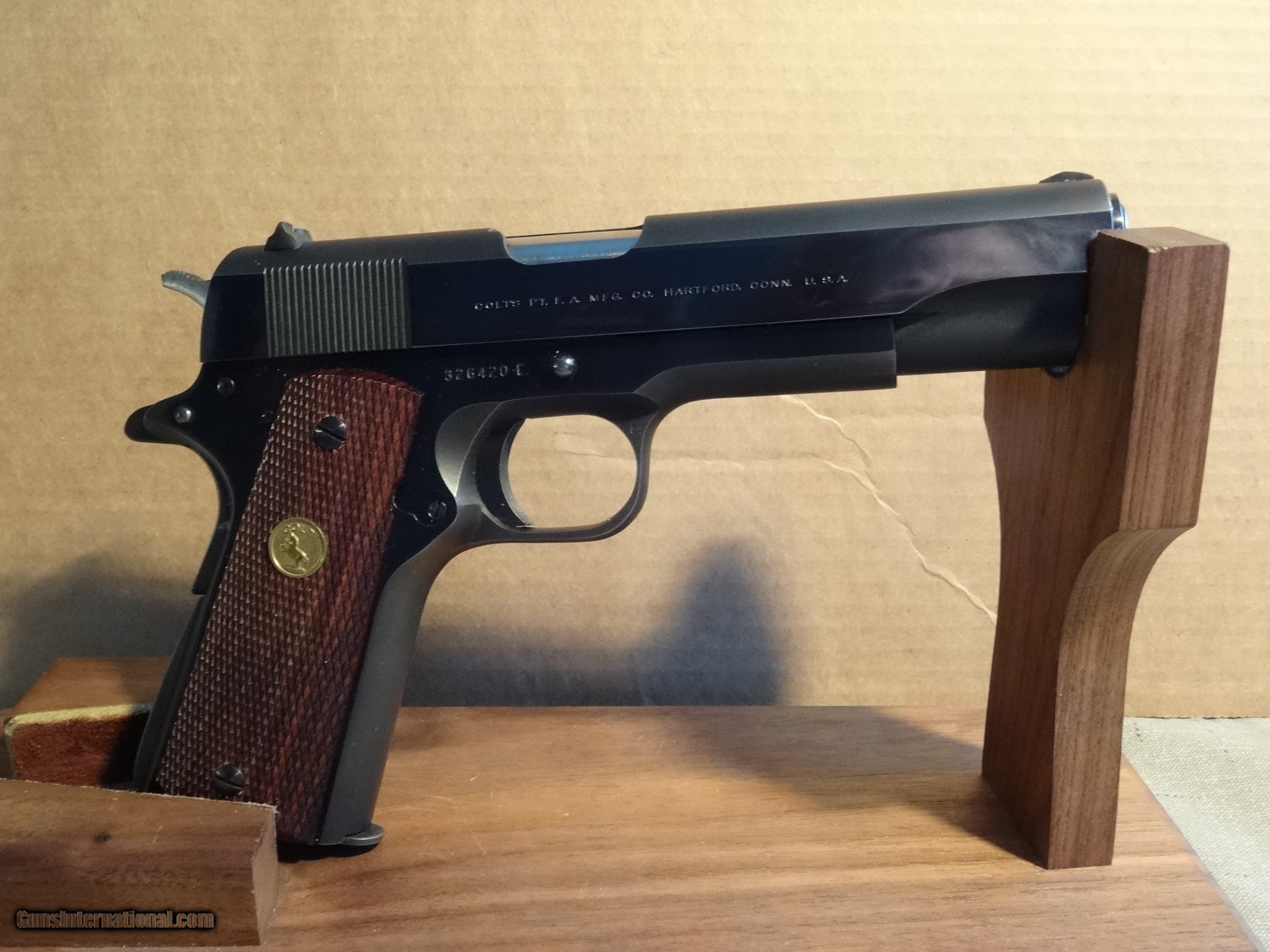 Description: GOVERMENT MODEL 45 AUTOMATIC PISTOL, LIKE NEW IN BOX SERIAL NUMBER 326420-C EARLY COLT WOOD GRIPS INCLUDED WOOD COLT GRIPS ARE ON PISTOL AND ARE A LATER VINTAGE. ALL PAPER WORK INCLUDED, SERIAL NUMBER OF PISTOL WRITTEN ON BOTTOM OF BOX. NEED MORE INFORMATION ALWAYS BEST TO CALLOUR OFFICE 716-941-3946 SOLD Curio/Relic: Yes |