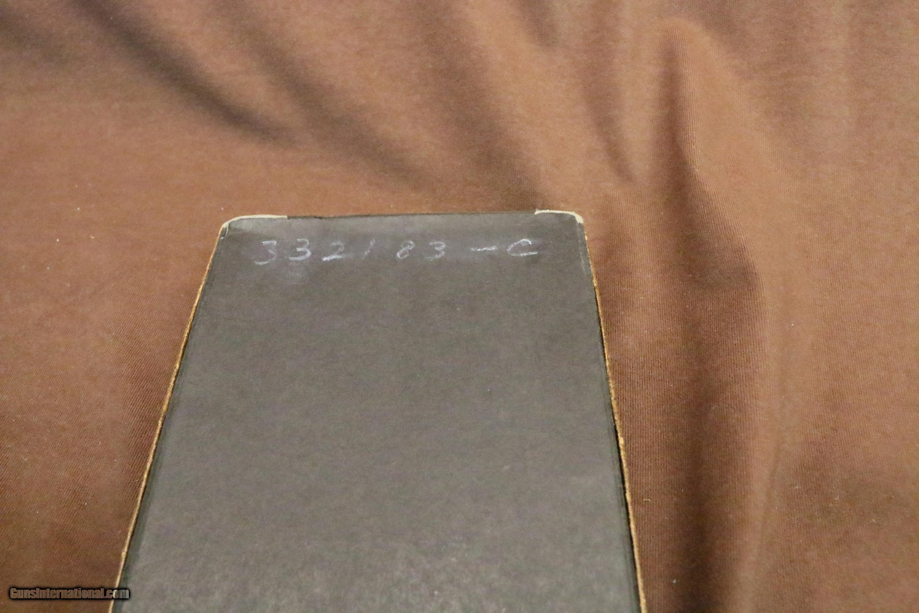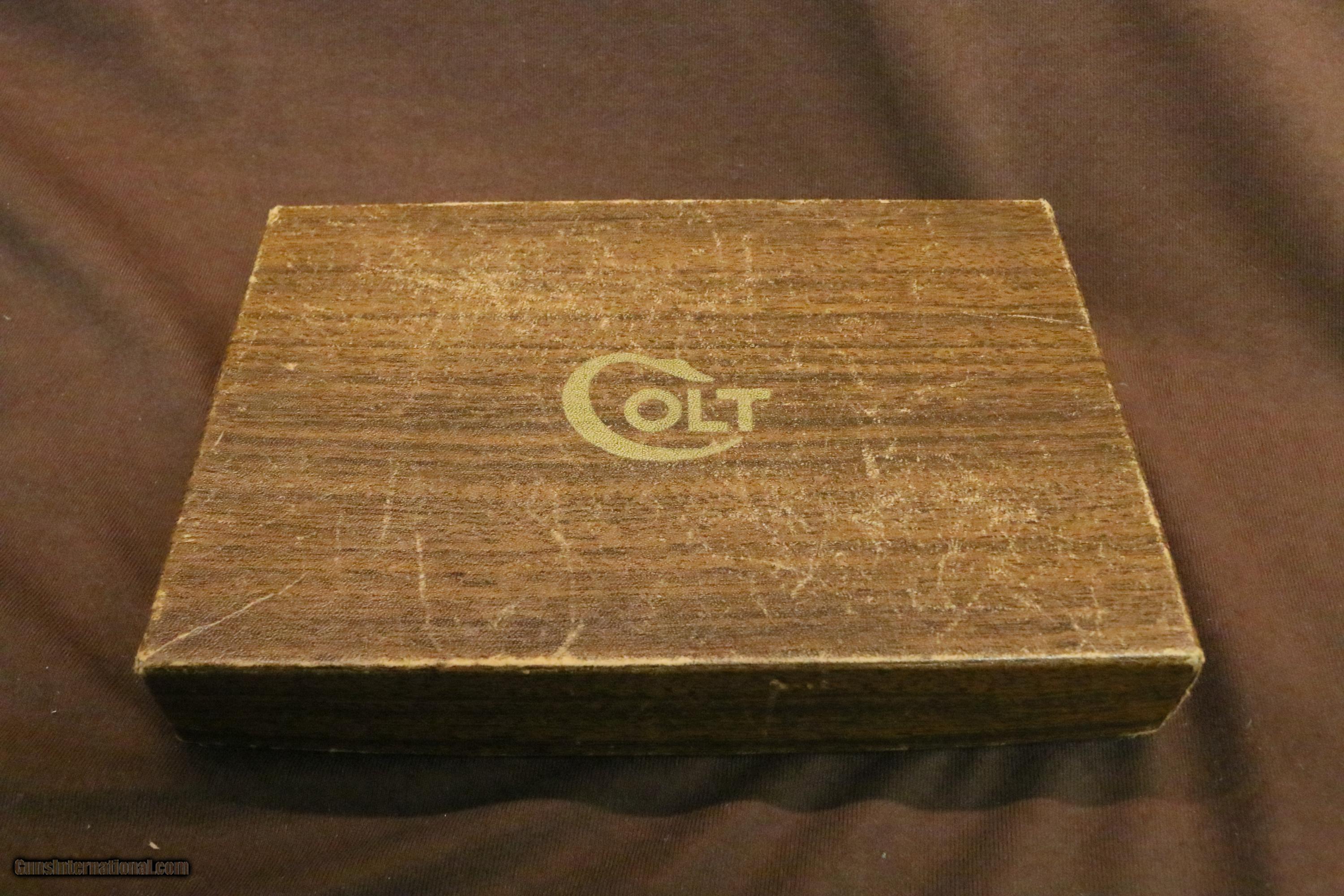 Description: If you like Colt 1911's you will love this one Minty 1969 production Colt Government model. 5" barrel 1 original magazine, correct matching original wood grain box with original label. oil paper. gun rate a strong 99% and shows little sign of being fired outside of the factory. The original grained plastic grips are very pretty but do show a bit of storage warp. The pictures tell the tale on this one. SOLD |