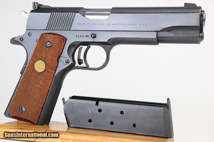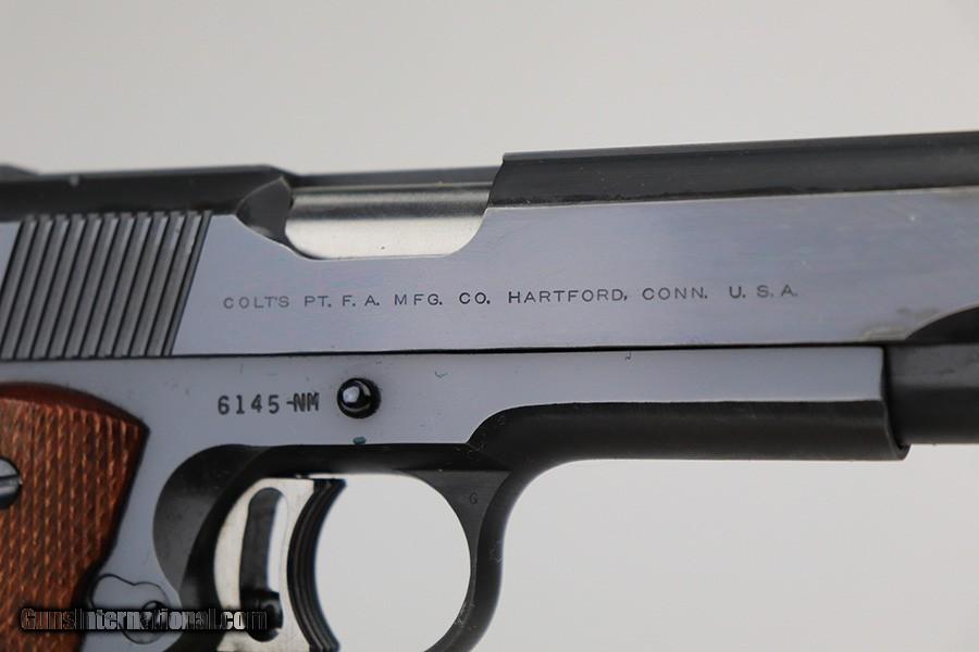 Description: This is a near-mint example of a Colt National Match Model 1911 manufactured in 1960 and chambered in .45 ACP. It has retained nearly all of its original finish with a couple of small spots of wear and two very light scratches on the right side of the slide. Comes with minty wood grips and one proper magazine. Mint bore. SOLD Curio/Relic: Yes Handgun Caliber: .45 ACP (.45 Auto) Bore: Mint Condition: ~99% |