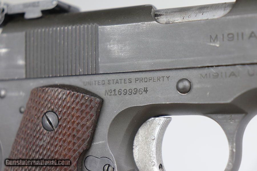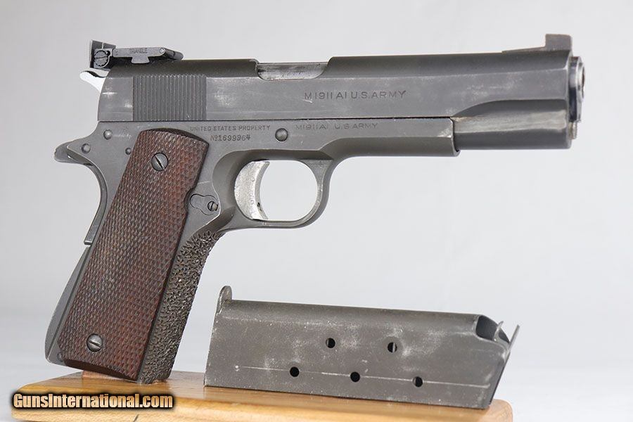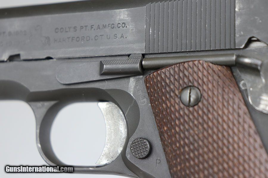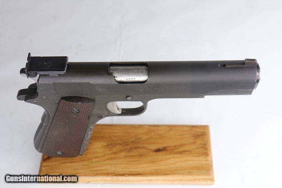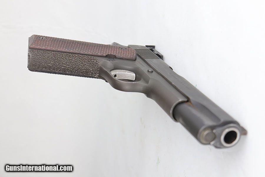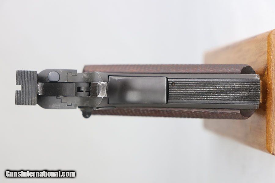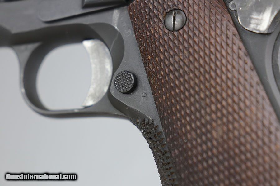 Description: This is a WW2 Colt that was re-worked post war (likely 1960's) for National Match shooting for civilians at Camp Perry. Commonly known as the "Camp Perry National Match" gun. It has the National Match barrel and sites. All correct for this model. Also, the unique front strap is stippled as only the Camp Perry guns were made like this. The original Colt was from 1944 and has the GHD inspector proofed, but then hand crafted into a very tight and accurate, competition pistol. The action is very tight as the parts are hand fitted. Minor finish loss on each side of the profile, most pronounced on the frame safety. Minty bore. SOLD Curio/Relic: Yes Handgun Caliber: .45 ACP (.45 Auto) Manufacturer: Colt Model: 1911A1 Serial Number: 1699964 Condition: ~95% Bore Condition: 9.5/10 Manufacture Date: 1944 |