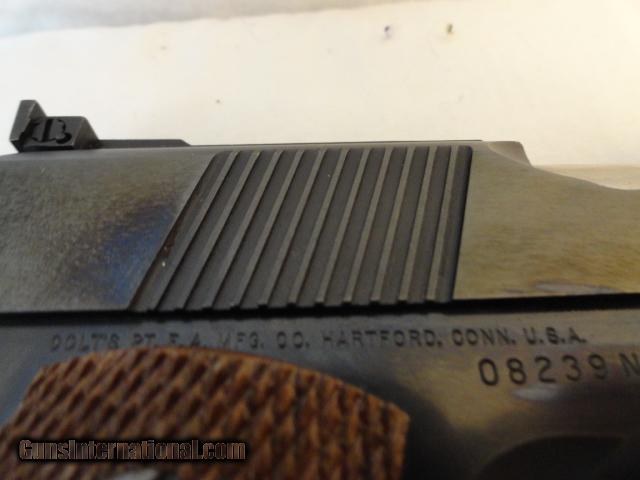Would have to rate this gun an easy 99%. All the blue , mint grips, mint bore, mint action. This is a fairly late example having been made in 1982, the second to last year of the 70's series National Matches. Crisp trigger. One of the best shooting 1911's ever made.