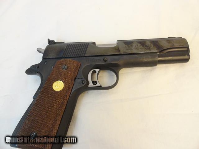 Description: Would have to rate this gun an easy 99%. All the blue , mint grips, mint bore, mint action. This is a fairly late example having been made in 1982, the second to last year of the 70's series National Matches. Crisp trigger. One of the best shooting 1911's ever made. SOLD Manufacturer: Colt Model: 1911 NM Serial Number: 08239N70 Caliber Info: 45 ACP Bore Condition: MINT Finish: BLUE Manufacture Date: 1982 |