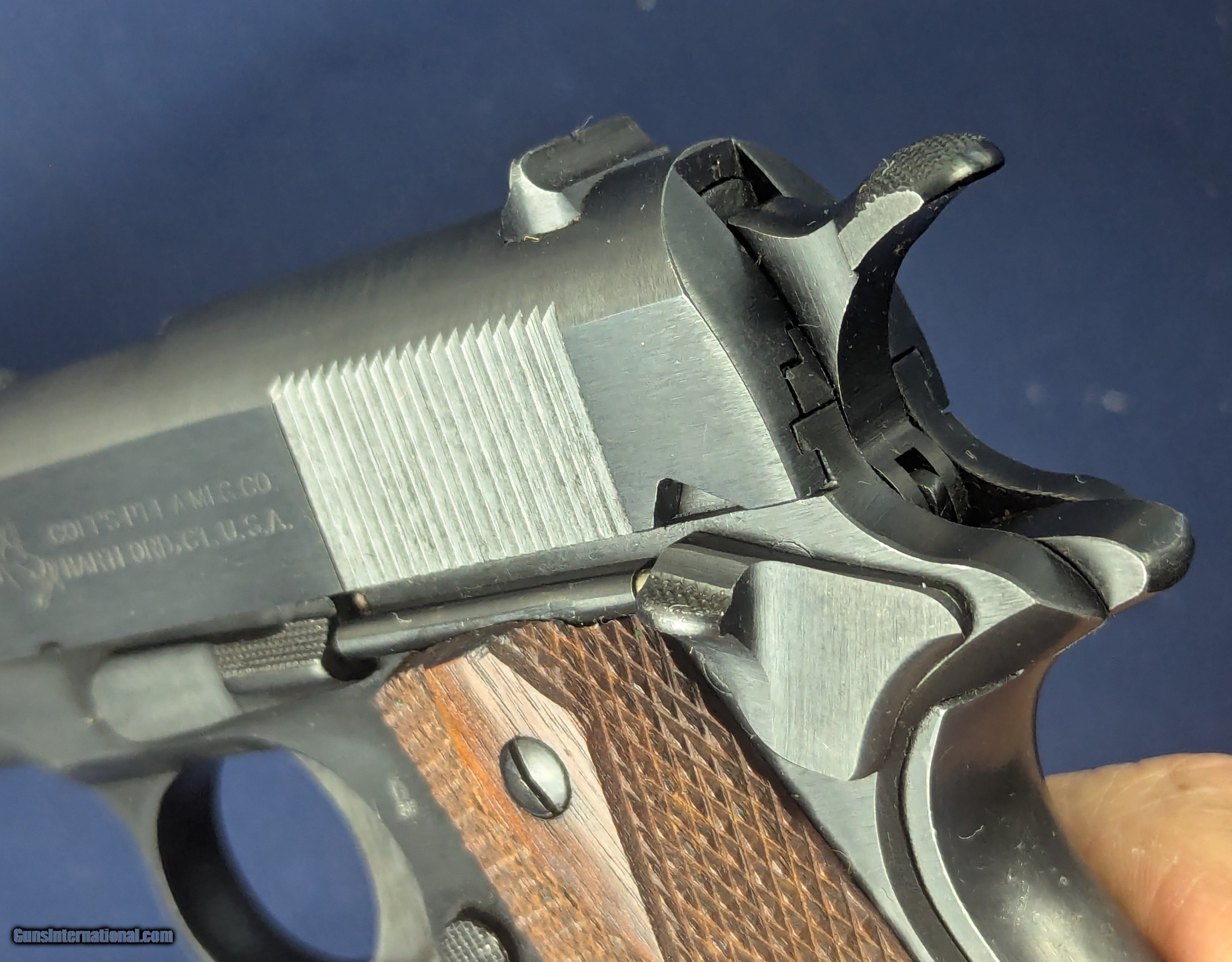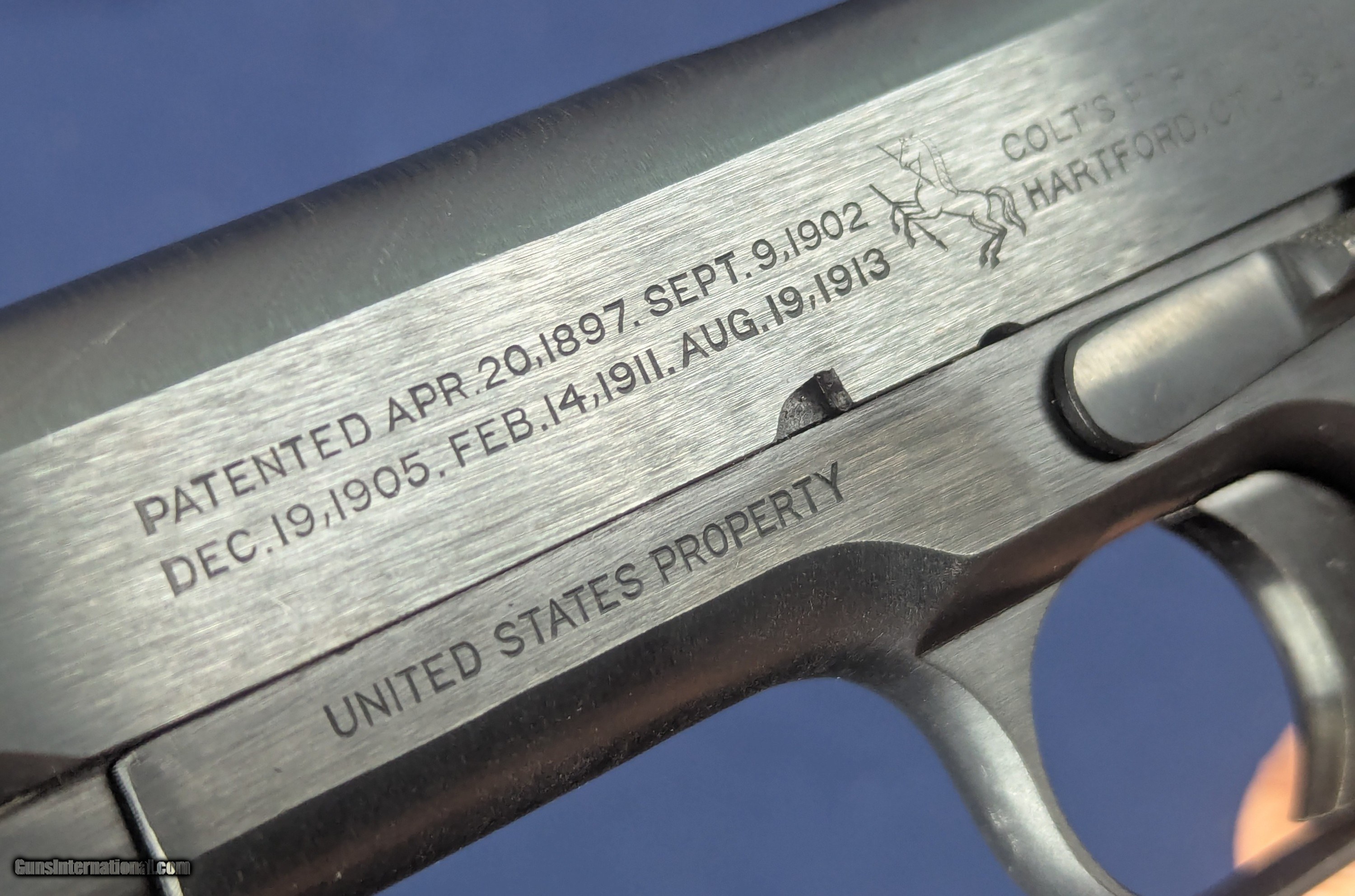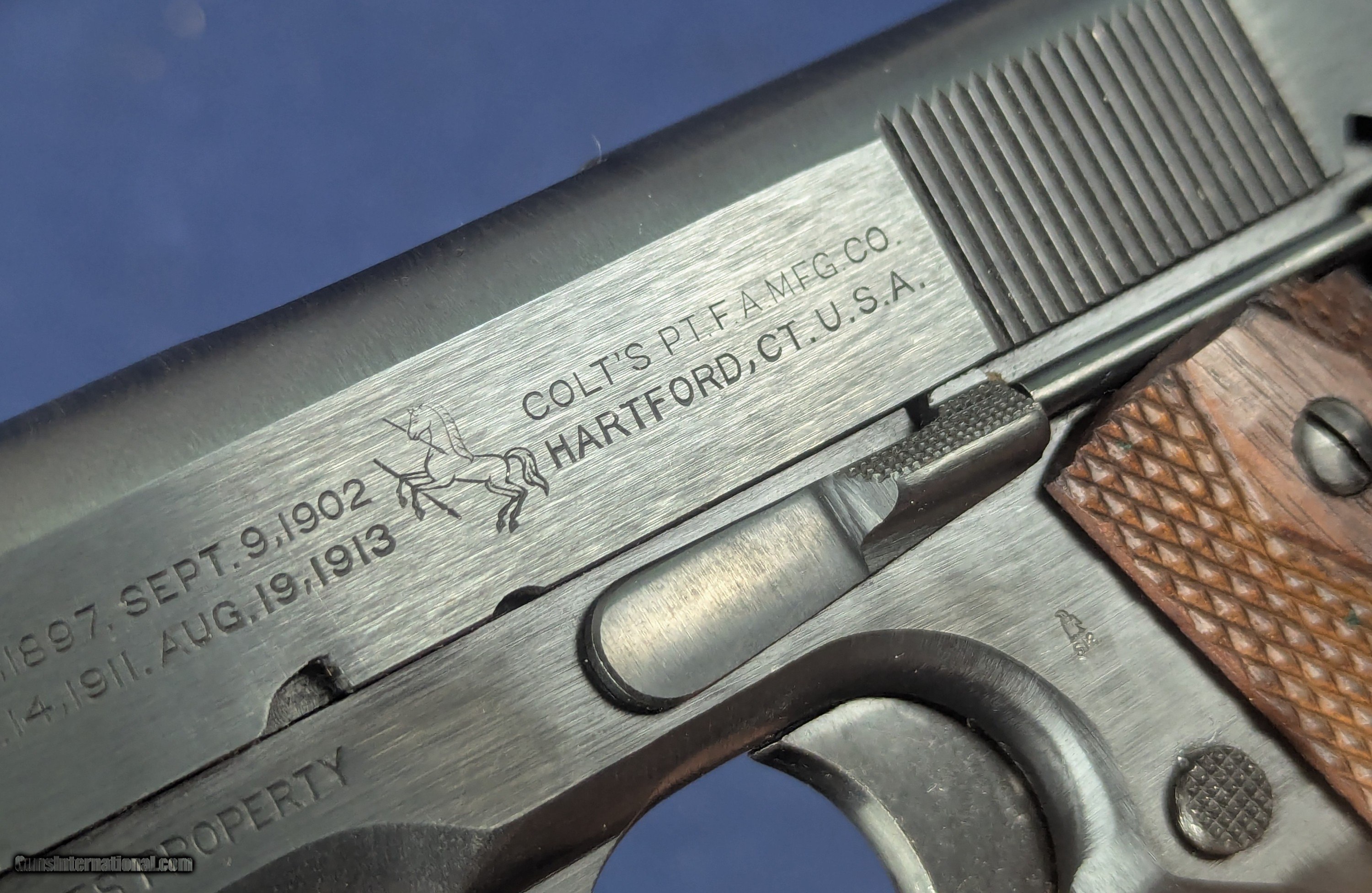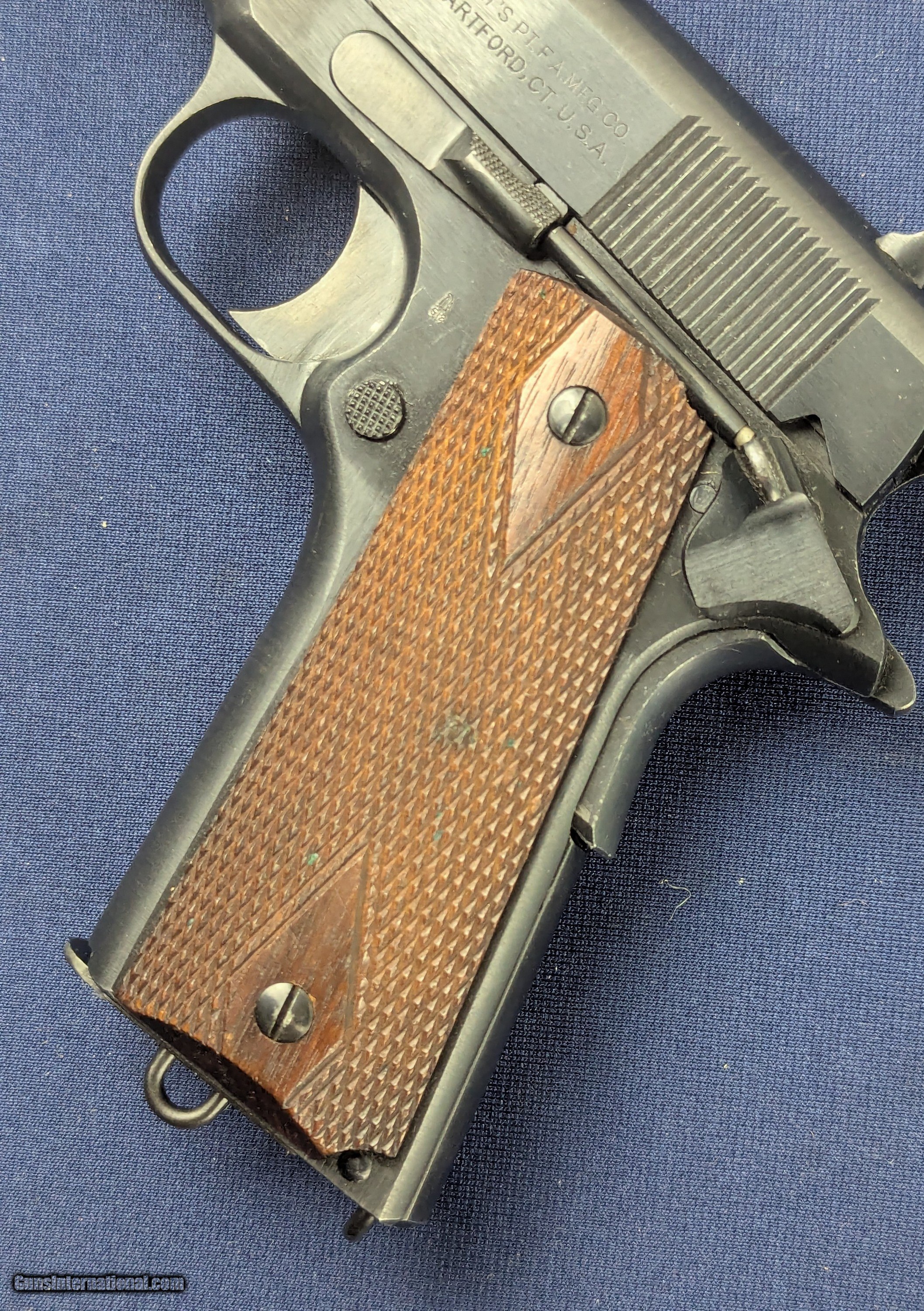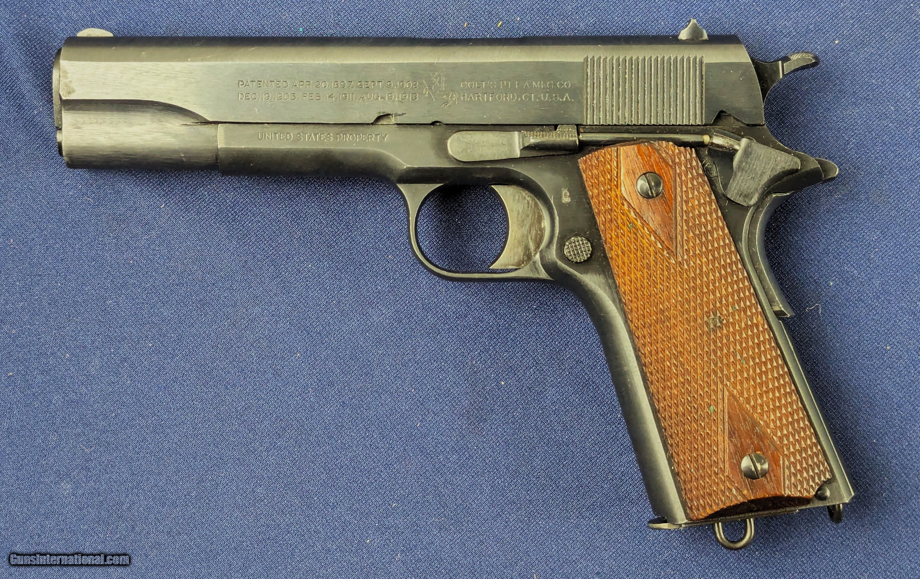 Description: Near Mint WWI Colt 1911 .45 Auto C. 1918 Offered here for sale is a newly acquired truly outstanding example of a WWI-era Colt Model 1911 .45 ACP military pistol a specimen that would be welcome in many advanced military or Colt-focused firearms collections. This WWI Military issue Colt with serial Number: 404812 was produced in mid to late 1918 production. It retains nearly 100% of its original military blued finish and has a mint bore. The markings on the slide and frame are sharp and crisp including inspector’s marks. It has original factory diamond-checkered walnut grips, near unused and a correct two-tone WWI magazine with the folded base and loop, also in excellent condition.Its only imperfection is one small area of patina on the left side of the slide near the muzzle, but extremely faint and minor and not detracting from its visual appeal. This pistol would have been manufactured during a peak wartime production period in 1918, intended for U.S. military service in WWI. The serial number confirms its authenticity as a U.S. Government-issued sidearm, likely delivered under the Ordnance Department’s massive contracts during WWI. Such pristine examples are exceedingly rare, as most saw extensive combat use and later rebuild programs through WWII and Korea. Unaltered examples—especially with their original finish, grips, and matching-era magazine—are highly sought after. This Colt 1911 represents a superb, investment-grade example of America’s most iconic military sidearm certainly may enhance any Colt or U.S. military arms collection given superb condition for a Colt of more than 100 years old. L276 Thanks for your bid. Shipping for this item is $48 however final shipping amount is based upon geographical area. Handling is $12.00 for longarms only. We gladly accept money orders, bank checks and personal checks. Credit card orders (VISA AND MASTER CARD ONLY) charged 3.95% additional for use. PLEASE CALL DALIA AT 203-257-5256 TO GIVE CREDIT CARD INFORMATION. Also, please view our at hansenguns. Click on "Online Catalog" and see All OF OUR ITEMS LISTED CONSECUTIVELY on or search online on that site with the ID “lope”...... OFFERED ONLINE AND AVAILABLE IN OUR RETAIL GALLERY IN SOUTHPORT, CT. Visit us also on Facebook at ://facebook/hansenguns/?fref=ts. We also own and/or operate Hansen Cartridge Co. and the Ruger Collectors Assc.(RCA). Hansen & Hansen wishes to expedite each order received, however we ship 80-100 items weekly, therefore orders paid by money orders or bank checks are cleared for shipping 5-7 days after deposited funds show in our account. Shipping date is scheduled ONLY AFTER VERIFICATION TAKES PLACE AND FFL/C&R IS RECEIVED (IF APPLIES). This is 5-7 days after WE receive order by mail - NOT customer date mailed and postmarked and after credit card funds are posted. Credit card orders exceeding $500 must be cleared through customer’s bank before shipping. Personal checks are accepted but orders are held UP TO 3 WEEKS after deposit of funds before items released for shipping. IF you have special instructions or require overnight or expedited shipping please advise at time of ordering and we will gladly prioritize shipping FOR AN ADDITIONAL CHARGE. THIS IS OUR POLICY and we encourage s to PLEASE READ AND UNDERSTAND OUR POLICY BEFORE . We would be pleased to answer ANY questions by phone (our toll free number is 1-800-571-7337 or e-mail cwlopiaol. SOLD Curio/Relic: Yes Handgun Caliber: .45 |