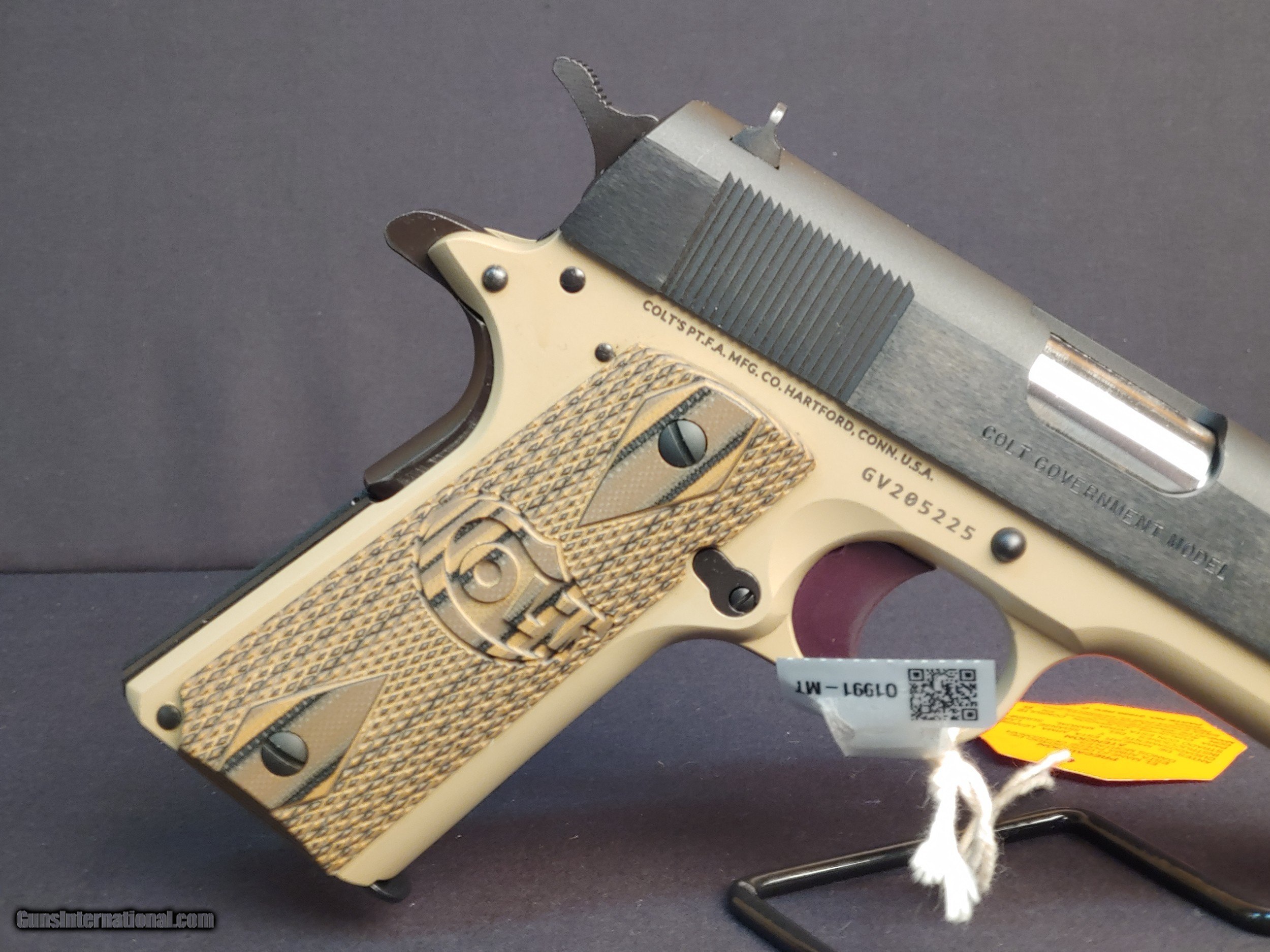 Description: The Colt O1991 Government Series 80 is a 4th generation descendent of the iconic 1911 pistol, and this TALO exclusive version features unique touches like the McMillan tan cerakote frame finish and Colt logo G10 grips that set it apart from its competitors. Built on the full size, all steel government size frame, the slim single-stack design points naturally and is built to last. The precision-fitted slide features a 5-inch barrel to get the most out of the .45 ACP cartridge and it's topped with high visibility 3-dot sights. This classic pistol is all business, and is fitted with a traditional spur hammer and standard grip safety, and is upgraded with G10 grips for superior purchase no matter the conditions. This exclusive 1 of 400 models is sure to make a fine addition to your collection. This package comes with two (2) 7 round magazines, a gun lock, and the original hard case. The overall condition is excellent with little to no handling marks. TEST FIRED ONLY - MINT CONDITION! Pre-Owned - Colt 1911 Government .45 ACP 5" Handgun (1 of 400)