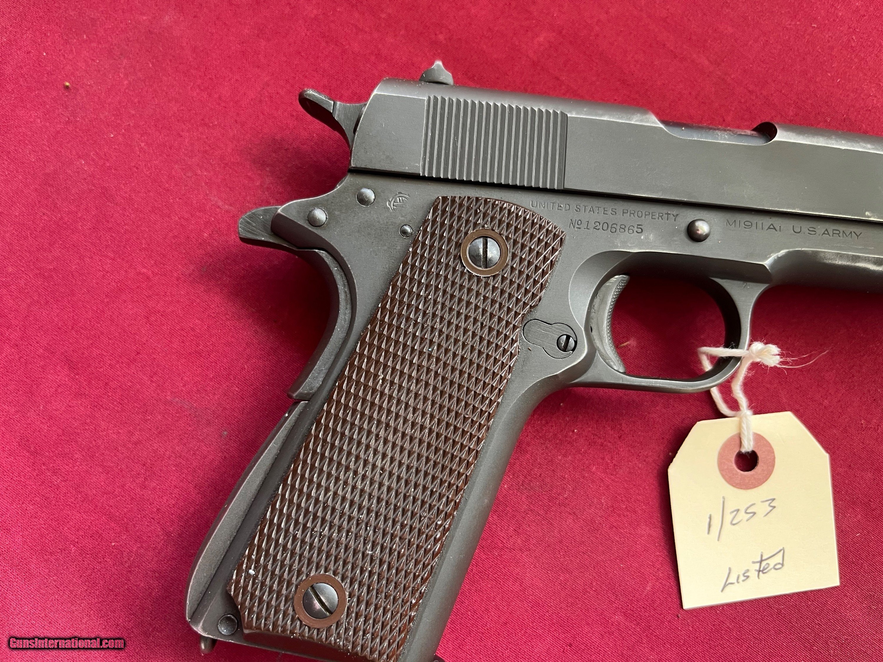 Description: COLT 1911A1 WORLD WAR II MILITARY U.S. ARMY 45ACP SEMI AUTO PISTOL . SER# 1206865 MADE IN 1943. GUN SHOWS ORIGINAL PARKERIZED FINISH . TIGHT CRISP ACTION THAT FUNCTIONS FINE. CORRECT ORIGINAL COLT BARREL WITH A GOOD BRIGHT BORE. VERY GOOD SOLID GRIPS. COMES WITH ONE CORRECT MAGAZINE WITH A "S" ON THE LIP. COLT 1911A1 WORLD WAR II MILITARY U.S. ARMY 45ACP SEMI AUTO PISTOL EASTERN BRANCH FIREARMS ADD 30.00 SHIPPING – HANDGUN USPS PRIORTY MAIL ADD 45.00 SHIPPING – LONG GUNS USPS PRIORTY MAIL SORRY NO MORE UPS SHIPPING – THERE POLICY NOT TO SHIP GUN AS OF 8/29/2022 Questions e-mail or call Glen at Eastern Branch Firearms 207-215-5021 TERMS – PLEASE READ BEFORE I DO NOT HAVE A LAYAWAY OPTION ( WE ACCEPT CREDIT CARDS ) -- I GET ALOT OF REQUEST FOR TRADES, I WOULD PERFER NOT TO DO TRADES ON MY INTERNET LISTINGS PAYMENT OPTIONS- We accept money orders, cashier’s checks , bank checks. sorry no personal checks. We accept all major credit cards please add 3% to the ’s cash discount price.(Maine Residents to pay 5% sales tax) .Handguns and long guns do need to be shipped separate. PLEASE do not send payment via FED EX . USPS & UPS are fine. Thank you. We include a signed copy of our FFL with each firearm shipped. SAFTY NOTICE- Buyer is solely responsible for determining that a used gun is safe to shoot. The firearms offered have not been test fired but have been given a visual inspection only for purposes. It is a requirement that every used firearm is inspected by a qualified gunsmith before firing. By , the buyer agrees to hold seller harmless against damages, injury, or death caused by defective merchandise. RETURN POLICY- All firearms come with a 3-day non firing , non messing with ( turning srews ,taking apart,removing parts, scoping. firing, cleaning or messing with in anyway) inspection/return privilege.Inspection is based on a visual review of the gun to confirm the gun is in the condition stated. In the case of a return, buyer pays all shipping charges & if paid for with a credit card buyer absorbs the 3% credit card charges . So please ask questions BEFORE you bid. Thanks for Looking and Good Luck!! U.S. sales only, no exports…this includes antiques. I will ship to third party for exporting SOLD Curio/Relic: Yes |