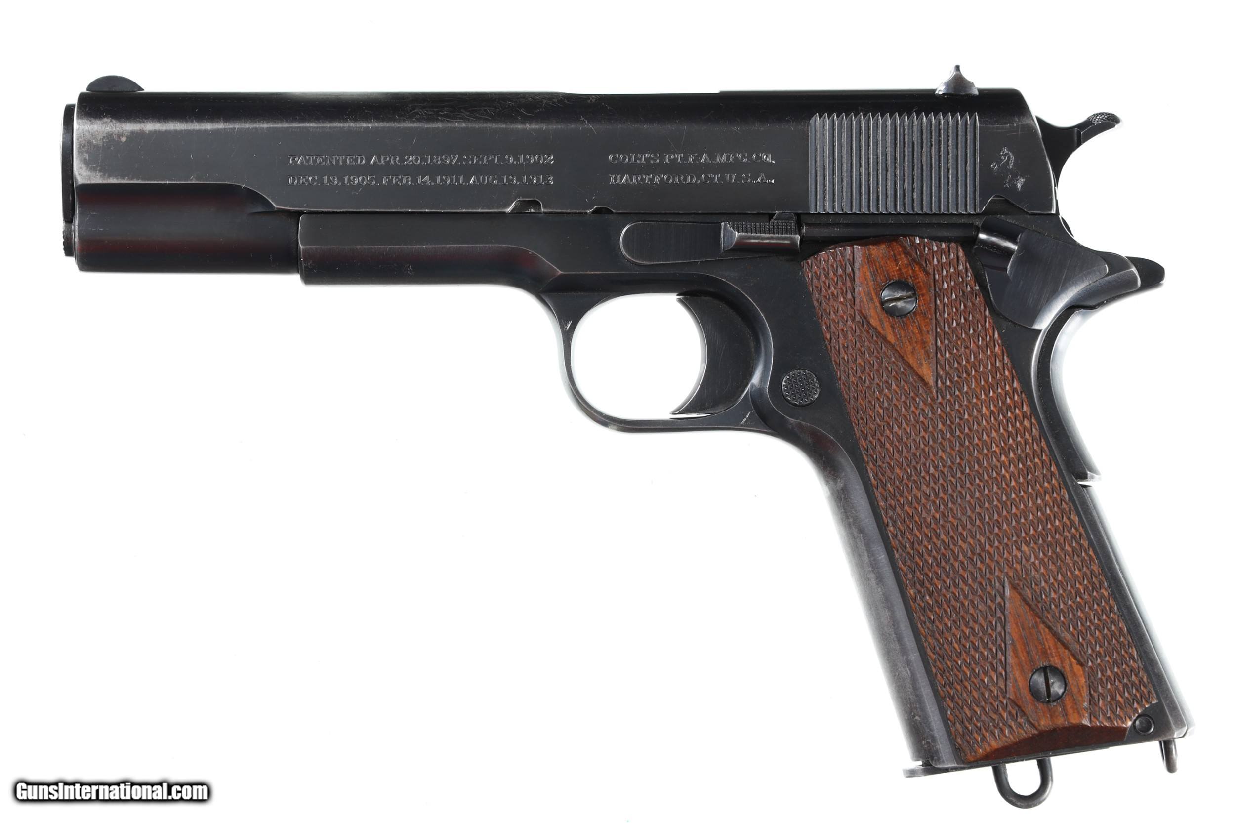 Description: Very good plus overall condition. Manufactured in 1917. The included factory letter confirms the current configuration (grips not listed) as well as shipment to Hingston, Smith Arms Co. in Winnipeg, Canada on 3 April 1917. • Free Shipping, No Credit Card Fees. • Lay-a-way available for this firearm. • 1/3 Down, a 1/3 in 30 Days 1/3 in 60 Days. SOLD Curio/Relic: Yes Manufacturer: Colt Model: Government Serial Number: C88753 Barrel Length: 5 |