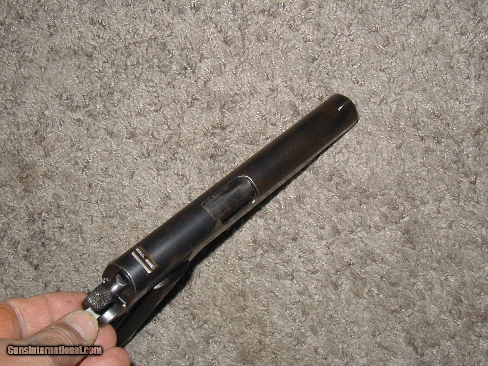 Description: ** PENDINGSALE ***THIS IS A VERY NICE ALL ORIGINAL SPRINGFIELD ARMORY 1911 .45 AUTO, MADE IN 1914....IT IS MATCHING THROUGHOUT, WITH ALL PARTS MARKED "S"...CLEAN METAL WITH EXCELLENT MARKINGS RETIANING APPROX 75-80% ORIGINAL BLUE...VERY GOOD 11 ROW GRIPS, CORRECT LIPPED MAGAZINE, GOOD BORE WITH STRONG RIFLING AND FROST IN BETWEEN...ORIGINAL BARREL IS CORRECTLY MARKED; "S" ON LEFT LUG AND "MD" ON REAR HOOD...C&R OK SOLD Curio/Relic: Yes |