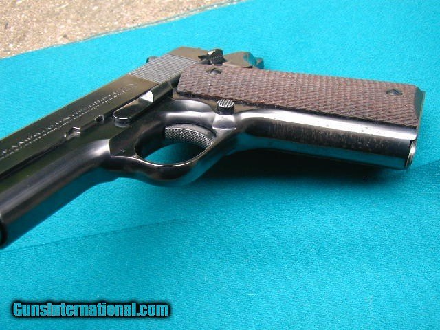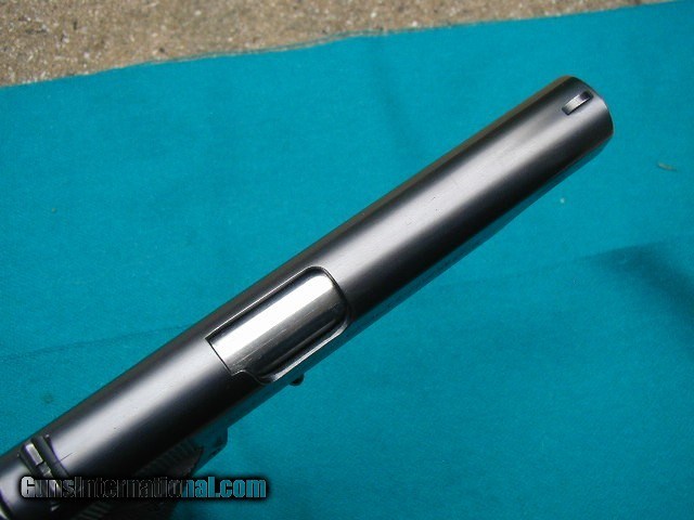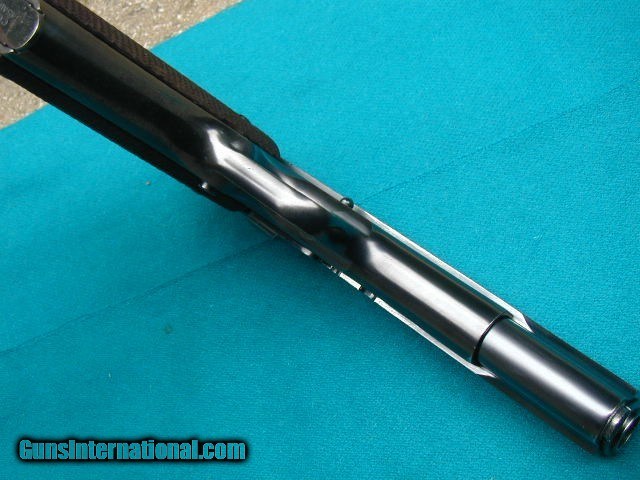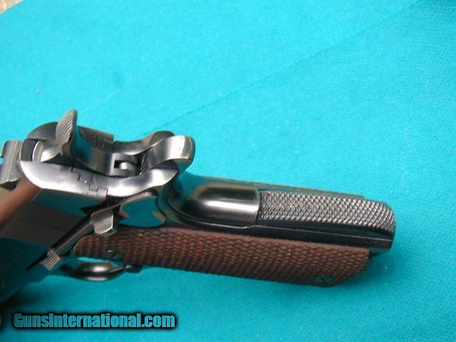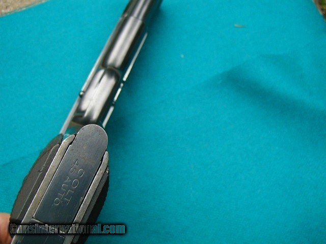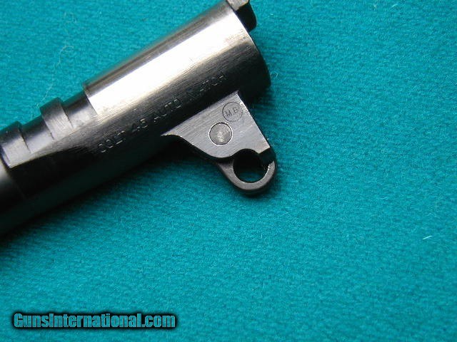 Description: THIS IS A BEAUTIFUL COLT 1911 PRE WAR NATIONAL MATCH PISTOL MADE IN 1936. IT RETIANS 98% OF ITS ORIGINAL FINE FACTORY BLUE. THE BORE IS MINT AND MARKED " COLT .45 AUTO NATIONAL MATCH " , WITH A CIRLCED MB ON THE LUG AS WELL , WITH A MATCHING SLIDE. THE GRIPS ARE EXCELLENT. CORRECT 2 TONE MAG MARKED ; COLT .45 AUTO. SOME LIGHT SUPERFICIAL FROST ON THE FRONT GRIP STRAP. GURANTEED ORIGINAL AND AUTHENTIC. SOLD Curio/Relic: Yes |