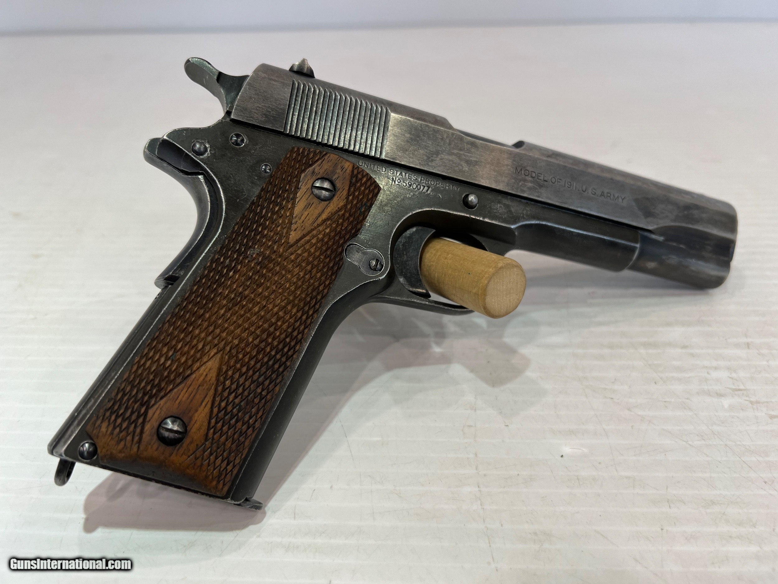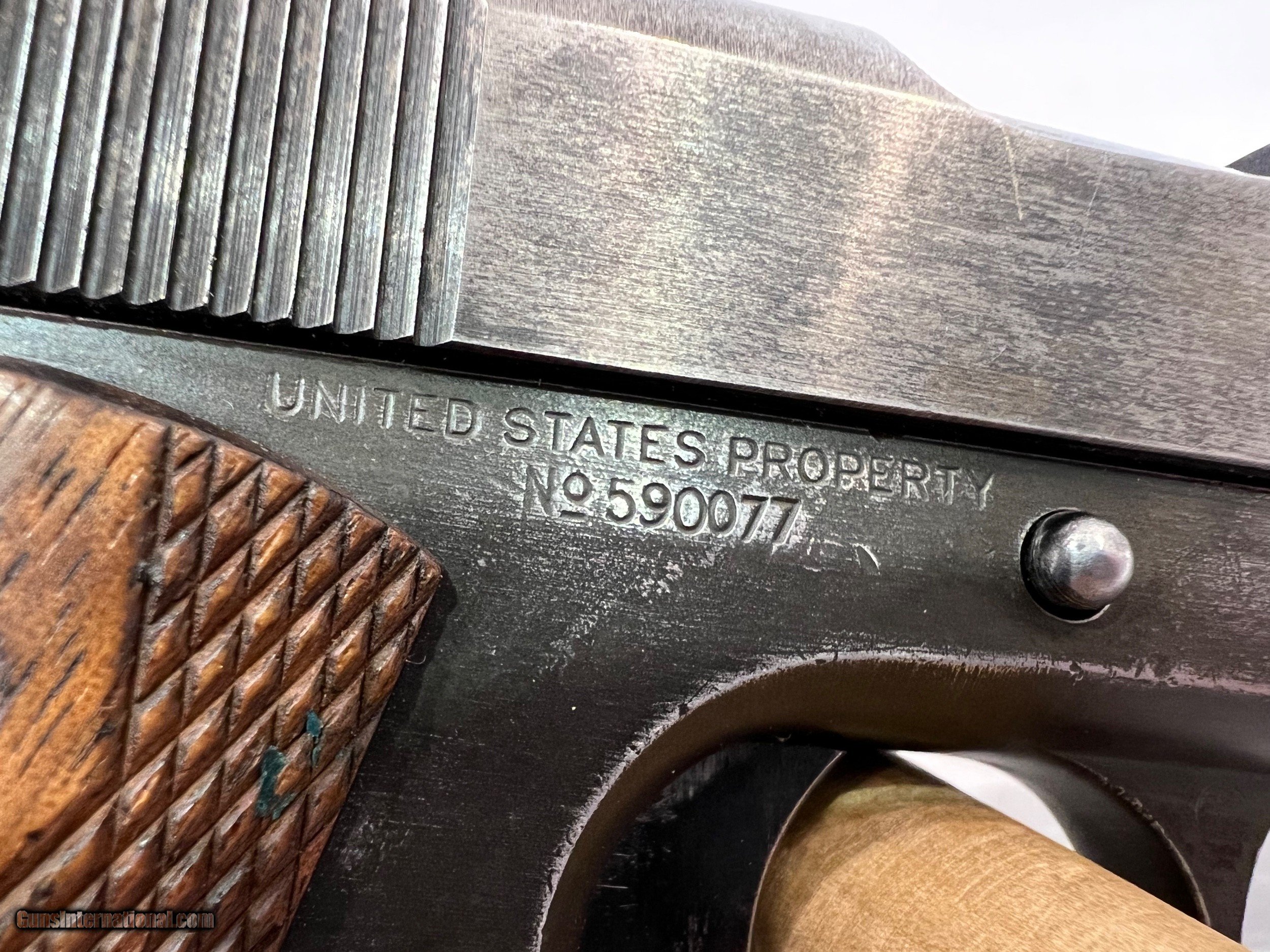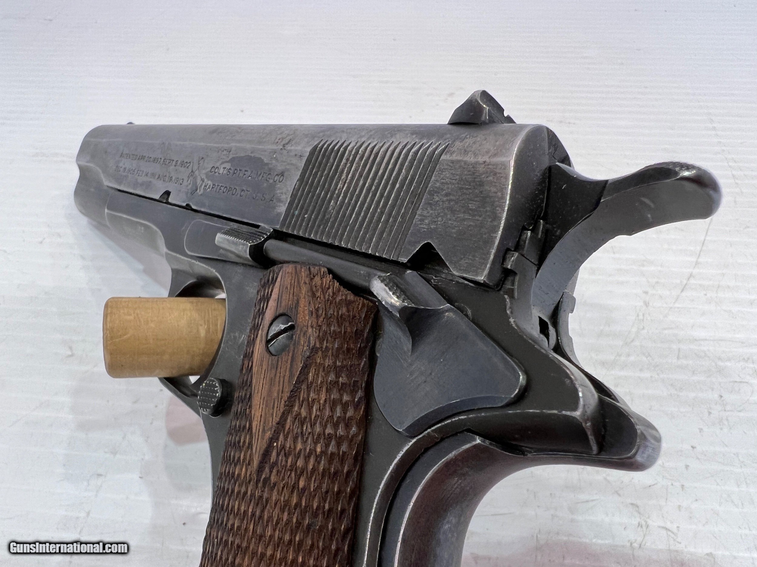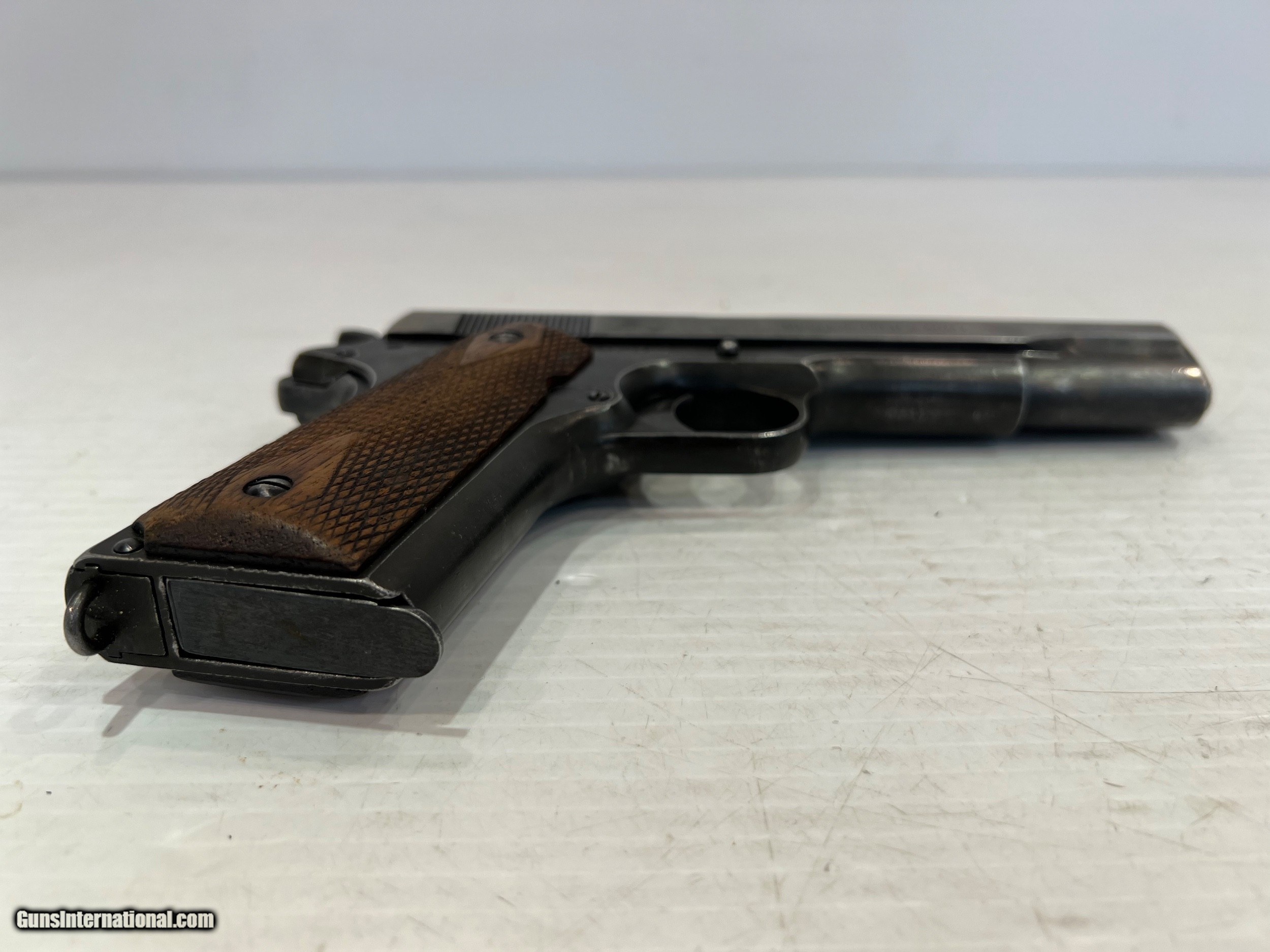Description: Used Colt 1911 .45acp, Semi-Auto Pistol, 5" Barrel Original Blued Finish and Wood Grips, US Property, With Webbing with Holster and Mag Pouch Attached, No Box. WE DO NOT SHIP INTERNATIONALLY $40 Shipping. Pictures are of the item listed. Must be shipped to an FFL holder. The item is on display at our shop but will be taken off the shelf once the starting is met. Please feel free to contact us directly. Three-day inspection from date items arrives at your FFL. Payment may be personal or cashier's check, money order, or credit card "3% surcharge for credit card". QUESTIONS? CALL/TEXT STEVE AT 580.327.7372 SOLD Handgun Caliber: .45 ACP (.45 Auto) Serial Number: 590077 zz18890 |