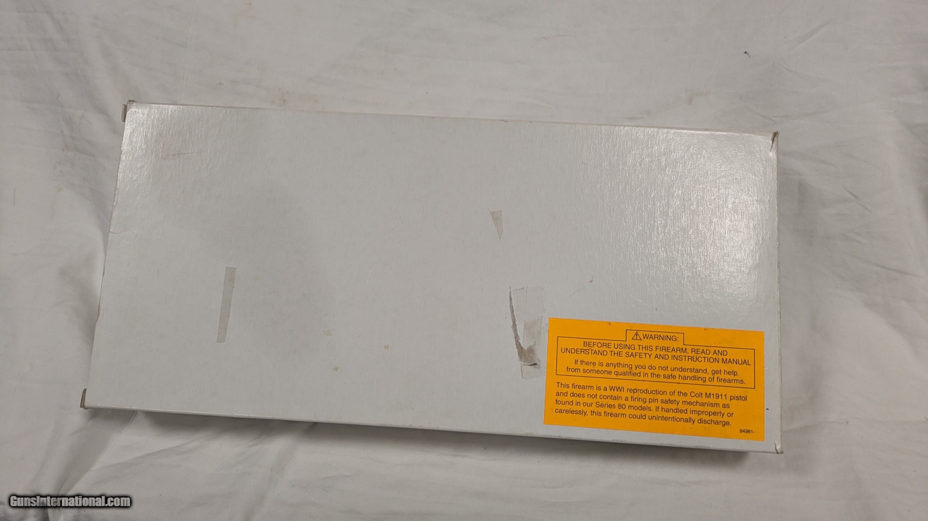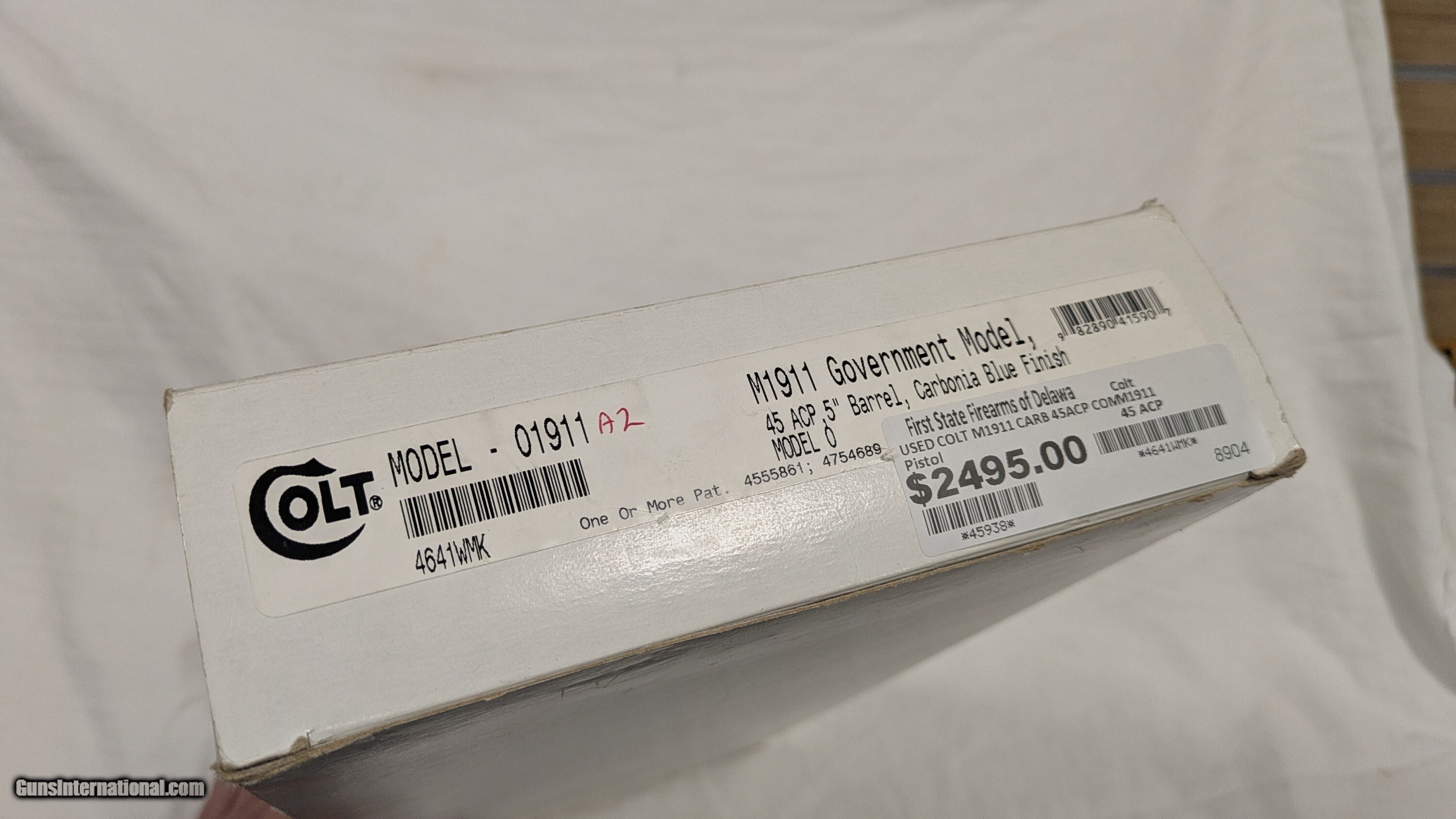 Description: This is a used item. While we do not test fire our used firearms, we perform an inspection and function check to determine the firearm is fully functional to the best of our ability. Please call with any questions. If you are interested in purchasing this item, please give us a call. Please have the "Seller #" and/or "Guns International #" ready along with the contact information for the FFL you'd like the item shipped to. For Sale from First State Firearms of Delaware AKA "The Gun Shop" in New Castle, DE. Shipping includes $100.00 in shipping insurance. Additional insurance available at buyer's expense and request. Handgun Caliber: .45 ACP (.45 Auto) Manufacturer: COLT Model: M1911 Serial Number: 4641WMK Barrel Length: 5 INCH Condition: USED, 99% Action: SEMI-AUTO Extras: X1 SPARE MAGAZINE, MANUAL Case: BLUE CARDBOARD BOX & WHITE CARDBOARD SLEEVE Price: $2,495.00 Shipping: $40.00 Contact Seller |