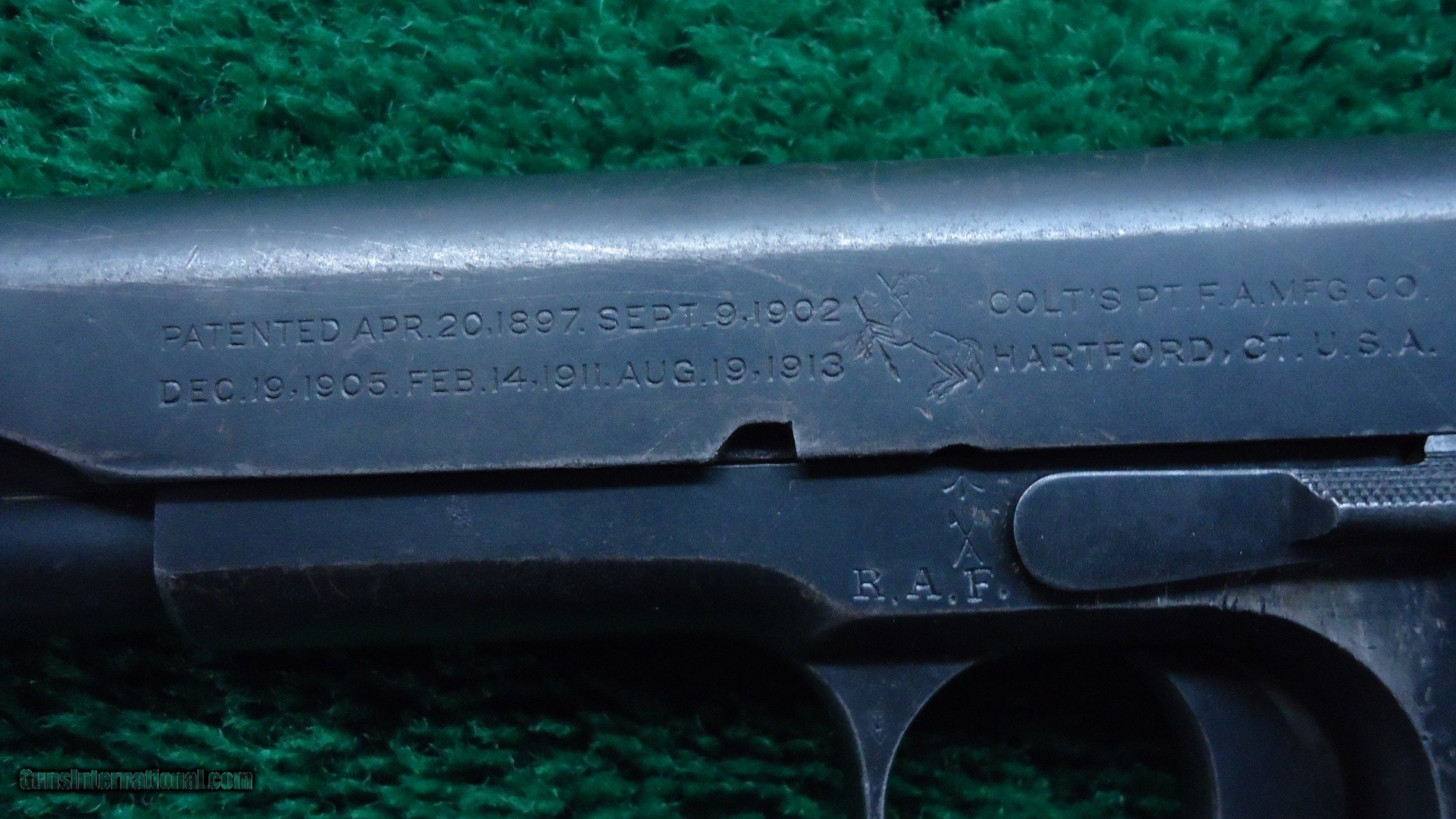 WW1 ROYAL AIR FORCE CONTRACT COLT 1911 IN 455 ELEY