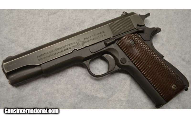 Description: SOLD Manufacturer: S/N 808329 Caliber Info: .45 Auto Metal Condition: Good - Ware and Loss of Bluing Wood Condition: Good Bore Condition: Good Barrels: 5 Inches Triggers: Single Action Stock: Checkered Sights: Factory Item Location: Grandville, MI |