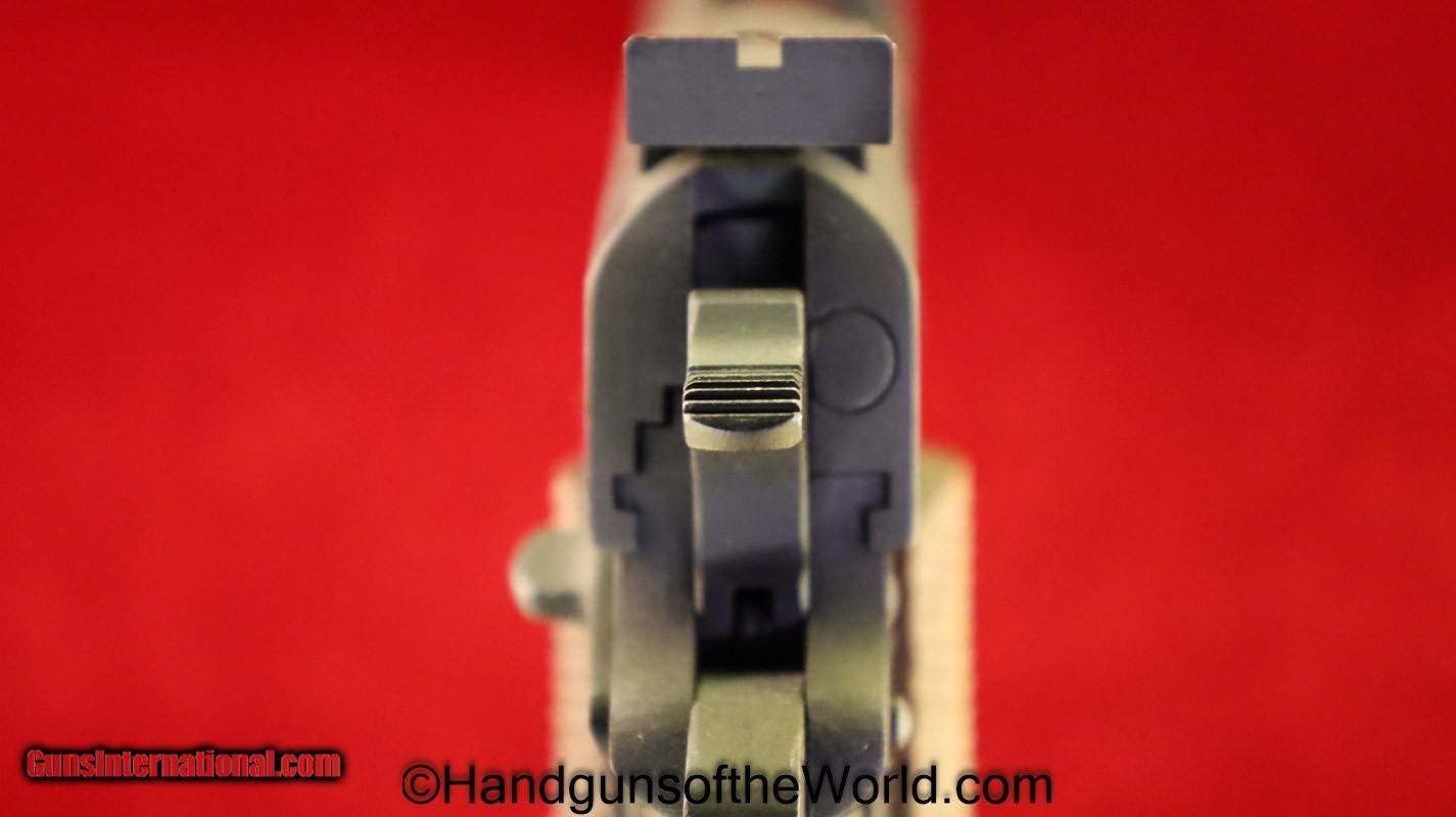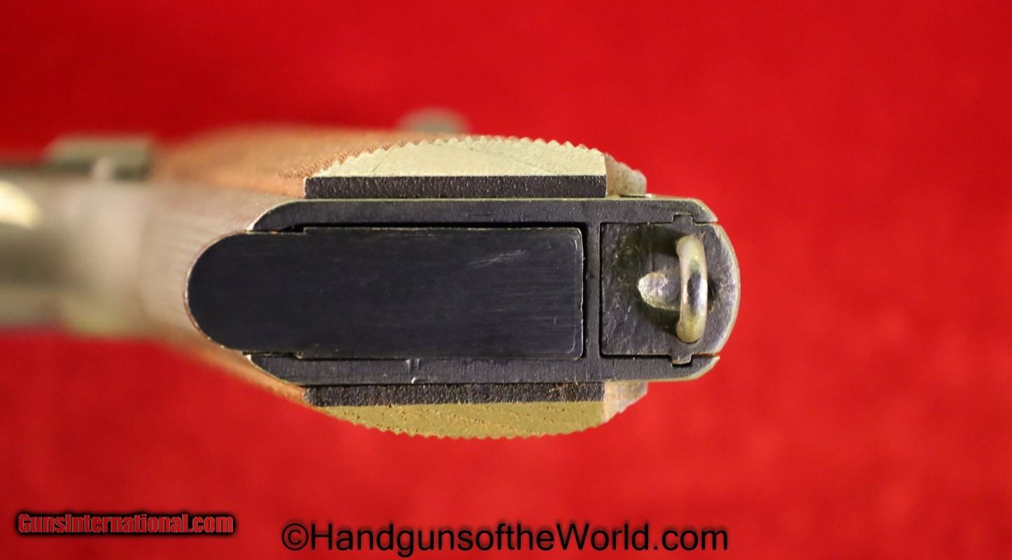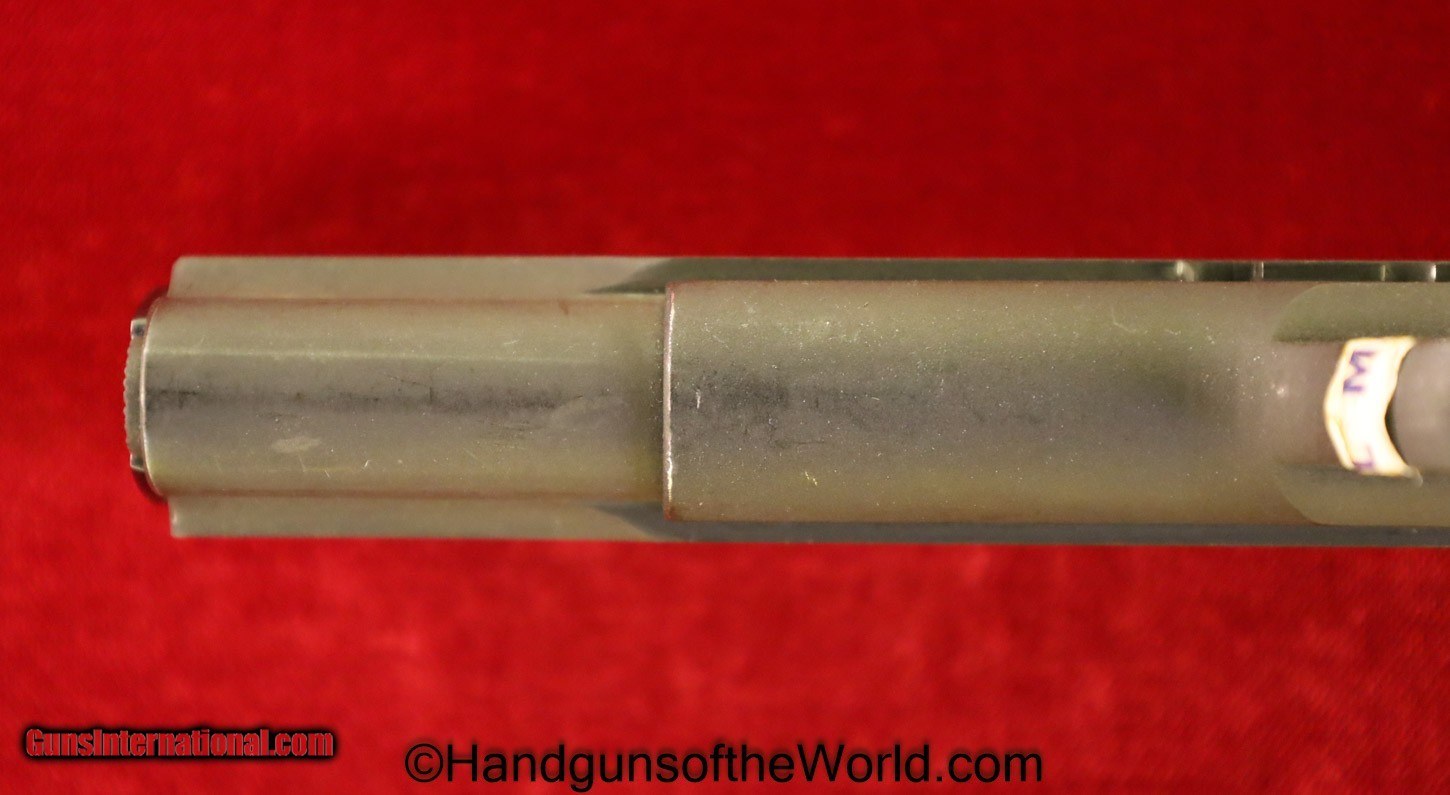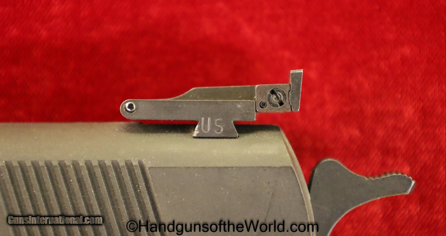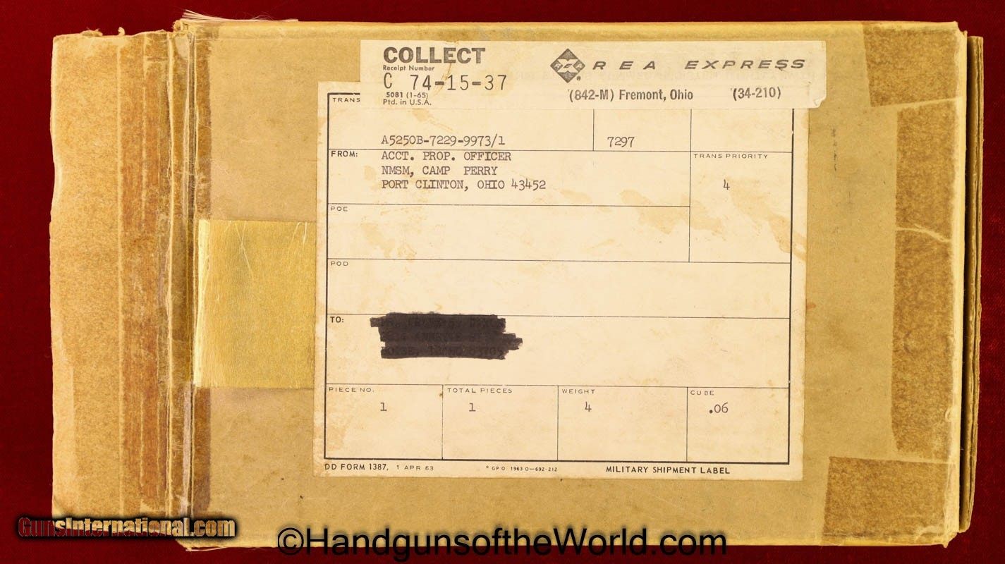 Description: Remington Rand 1911A1, .45acp. This reissued frame has been Rock Island Arsenal converted to a 1967 National Match. This is equipped with a Kensight rear sight and checkered walnut grips. The National Match hang tag is wrapped around the trigger guard. This is a textbook example in mint unissued condition in the original cardboard shipping box with an unopened cleaning rod packet. Only 580 were sold through the DCM. Fantastic. Handgun Caliber: .45 ACP (.45 Auto) Manufacturer: Remington Rand Model: 1911A1 Price: $5,375.00 Shipping: $35.00 Contact Seller |