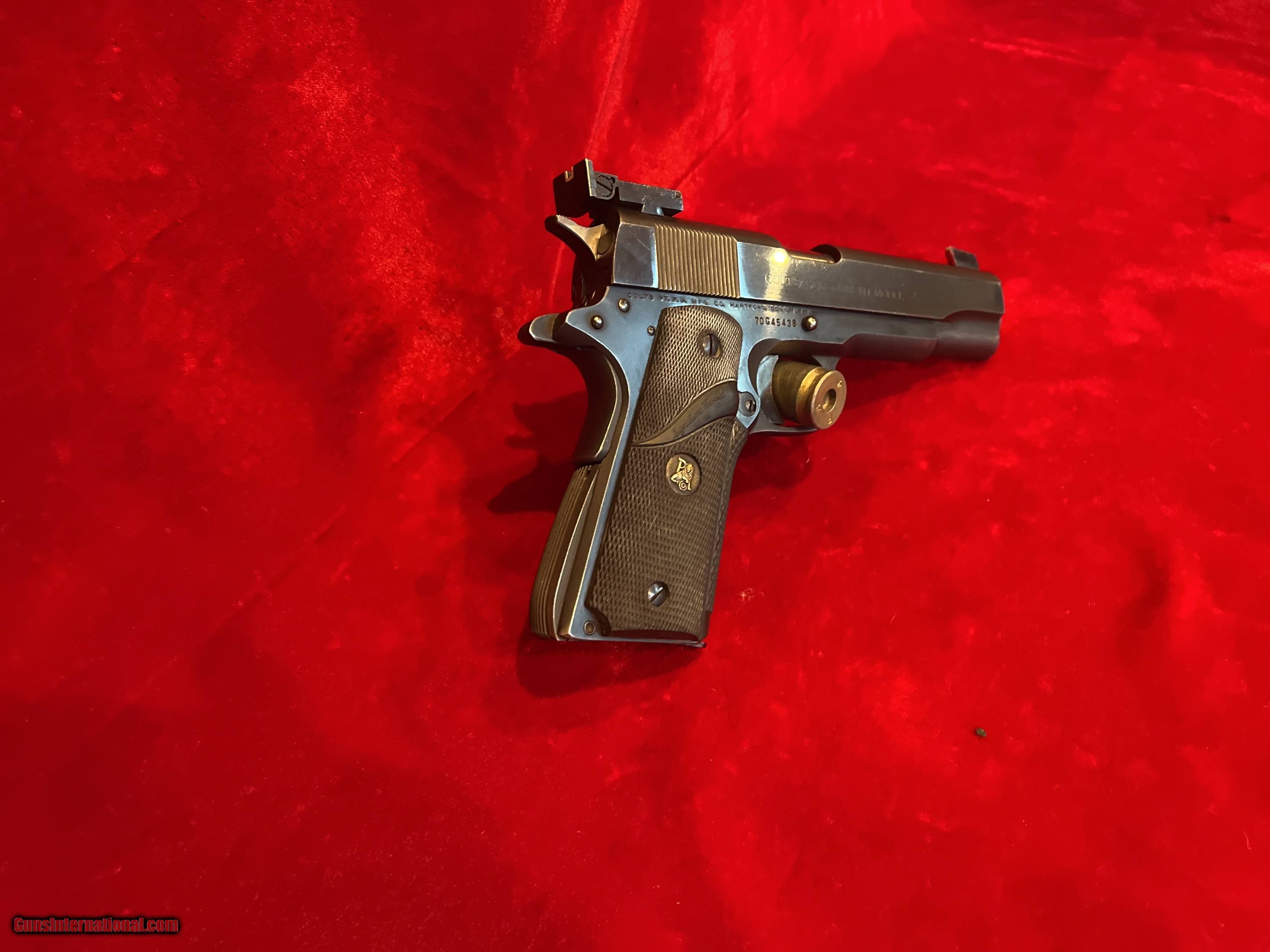 Description: Up for sale we have a Colt 1911 Series 70 Mk IV .45 ACP Semi-Automatic Pistol which was produced in 1973 based on Colt data. This gun is in good condition with some finish loss from use however its free from any large scratches or damage. The action is smooth and functions as it should. Original Colt barrel and bushing. Sights have been changed to high- target sights, some visible marking from where the sights were installed, however they work well but could be easily replaced if desired. Grips are Pachmyer. Slide and Lower are matching original Colt. The barrel is original with a mint bore. Theres a slight "dummy" scratch from the takedown pin, however very minor. SHIPPING 40$ To purchase this firearm simply send me a message via GI with your contact info. I will respond via e-mail with all the information required to complete the purchase. If you must contact me via phone, please text. Keep in mind I am on the West coast and if you call me at 5AM before I've had my coffee we will be off to a rough start. I am an FFL. I will provide my FFL with the shipped item. Total price is sales price plus shipping price. SOLD Handgun Caliber: .45 ACP (.45 Auto) |