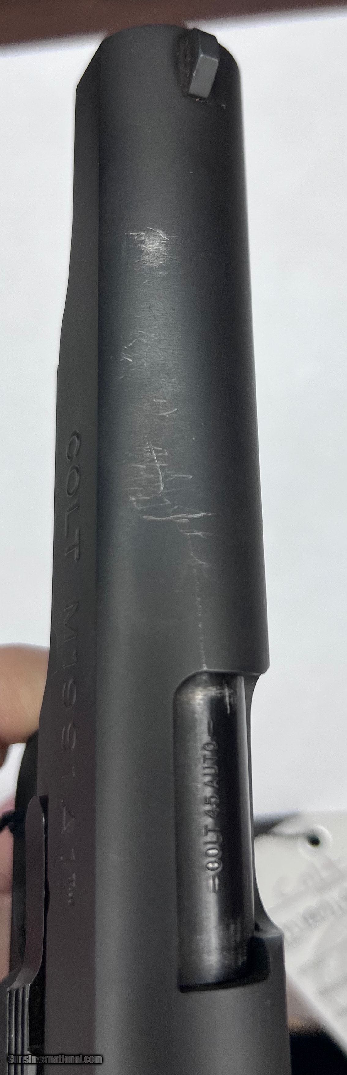 Description: Guns Listing ID: 438742 LOCAL TRADE. Scratches on top of slide. Great piece to add to your collection SOLD Manufacturer: COLT Model: 1991 GOVERNMENT Caliber Info: 45 ACP Condition: Used - Non-Certified Barrels: 5 barrel Finish: BLUED |