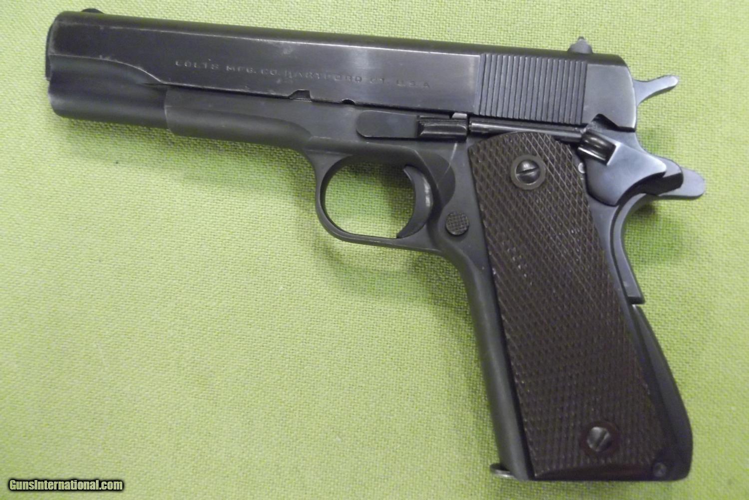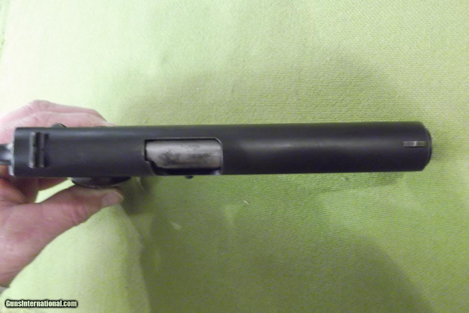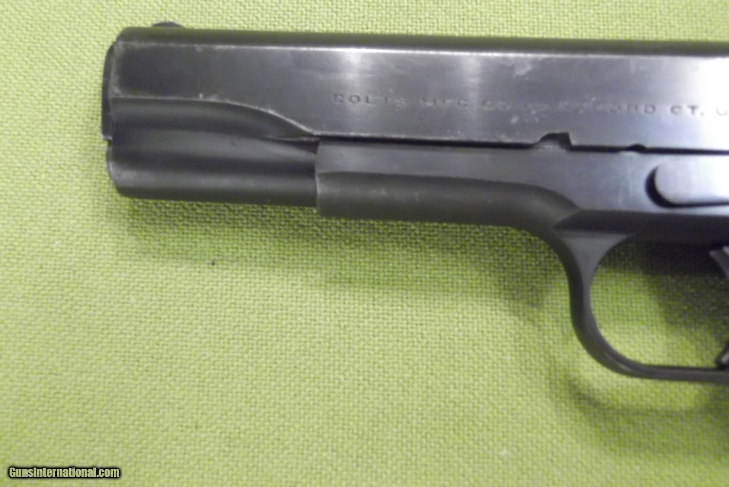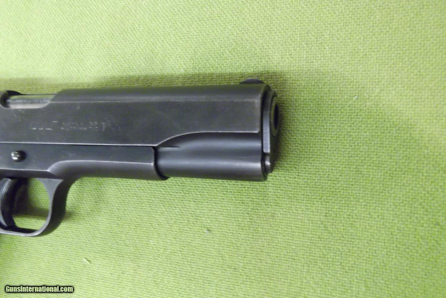 Description: Up for sale is a nice Colt 38 super made just after the war. It has the fat barrel with the brown service grips. The condition is around 93% , a used gun in great condition.The bore is nice the action and trigger pull is smooth. The gun functions flawless. I have even shot 9 mm ammo through it. A great find.Sorry about the quallity of the pictures, some have reflection. SOLD |
