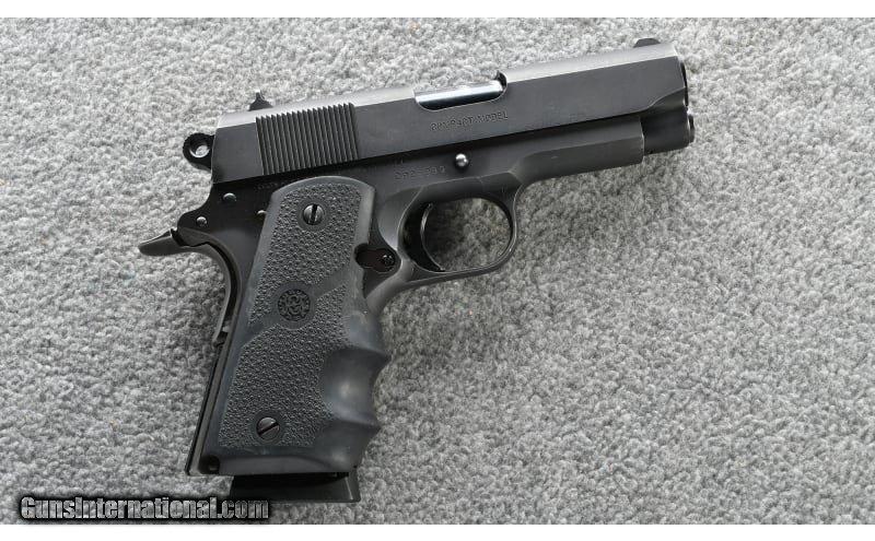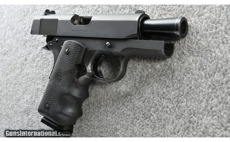 Description: Made in 1991 .45 ACP SOLD Chambers: .45 Automatic Colt Pistol in a seven round detachable magazine semiautomatic pistol Metal Condition: "Good, showing normal carry and use finish wear Wood Condition: Hogue gripper style grips Bore Condition: "Good, could use a thorough cleaning Barrels: 3 1/2" Bushingless Triggers: Single Action Weight: 34 oz. Sights: "Fixed blade front, drift adjustable notch rear, three dot system Item Location: Grand Junction, CO |