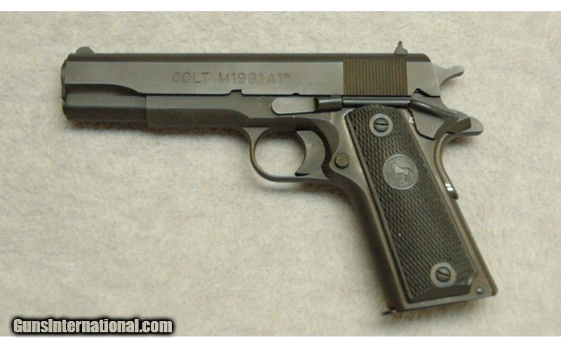 Description: ColtModel M1991A1Series 80 Pistol.45 Auto. Excellent condition with one mag and hard case. Basic 1911 type handgun - a good choice for target practice or home defense. .45 ACP SOLD Chambers: Semi auto. Metal Condition: Excellent, light finish wear, few small nicks and scratches. Wood Condition: Grips are in excellent condition. Barrels: 5" Barrel. Triggers: Single action. Sights: Iron sights. Item Location: La Vista, NE |
